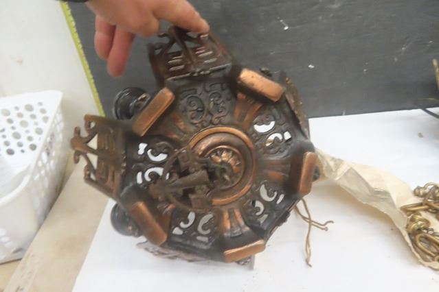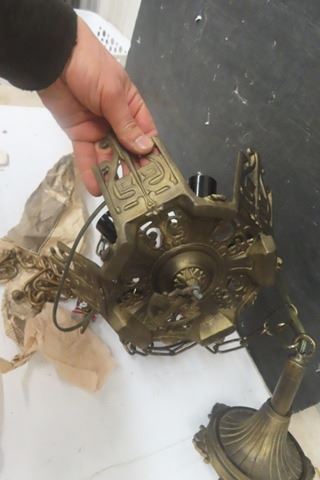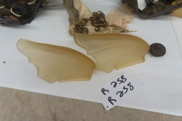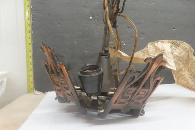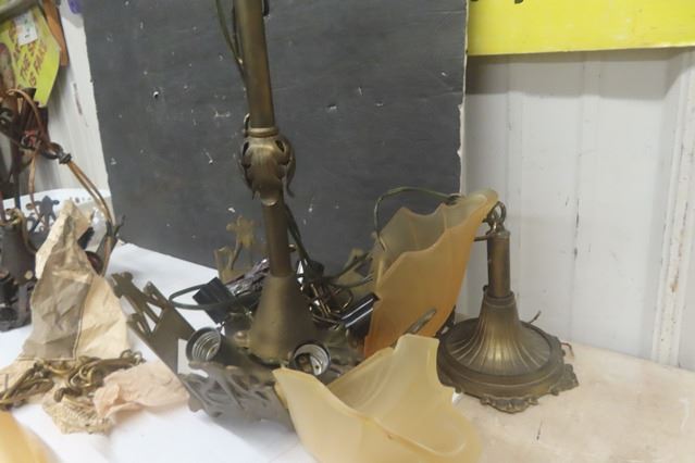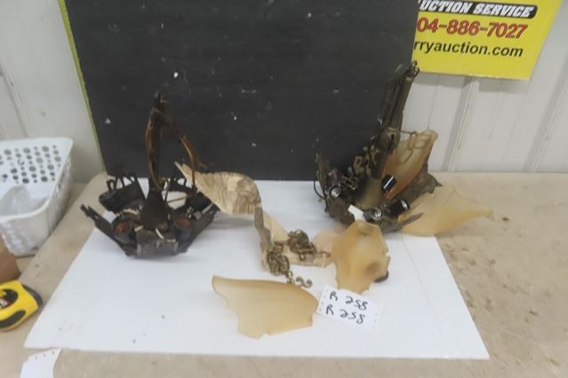 Vintage Cast + Glass Light Fixture, 2 Fixtures, 1 Set of Glasses