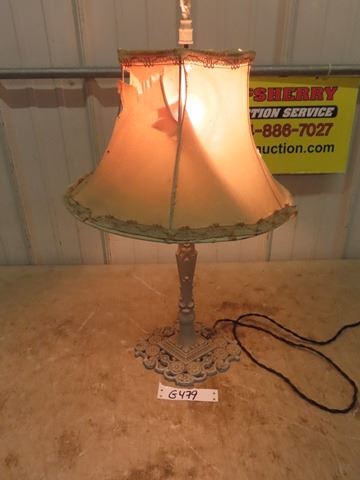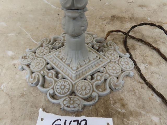 Vintage Cast Iron Table Lamp with Shade - Shade needs repair, has Fire Starter Cord - tested + works