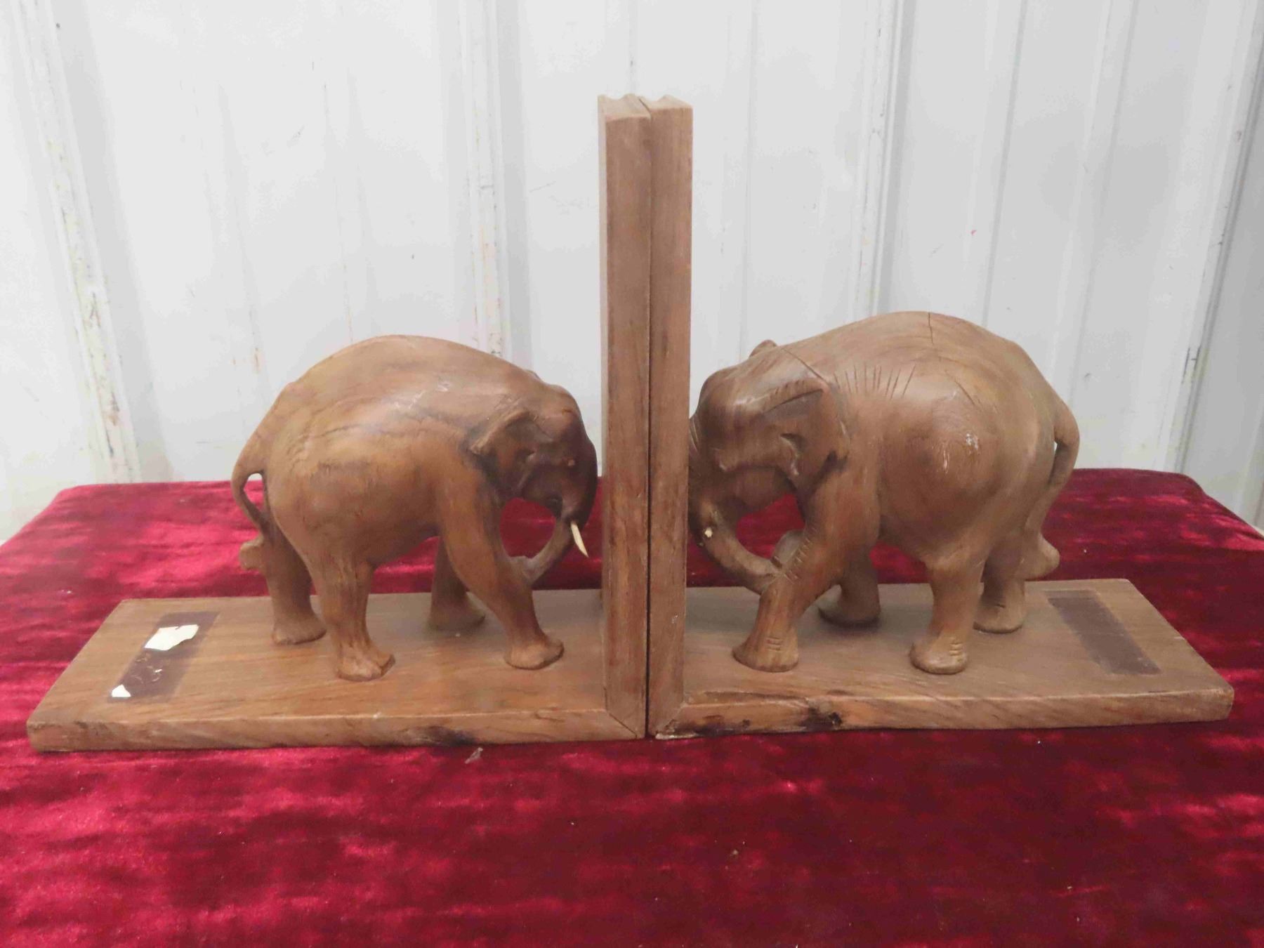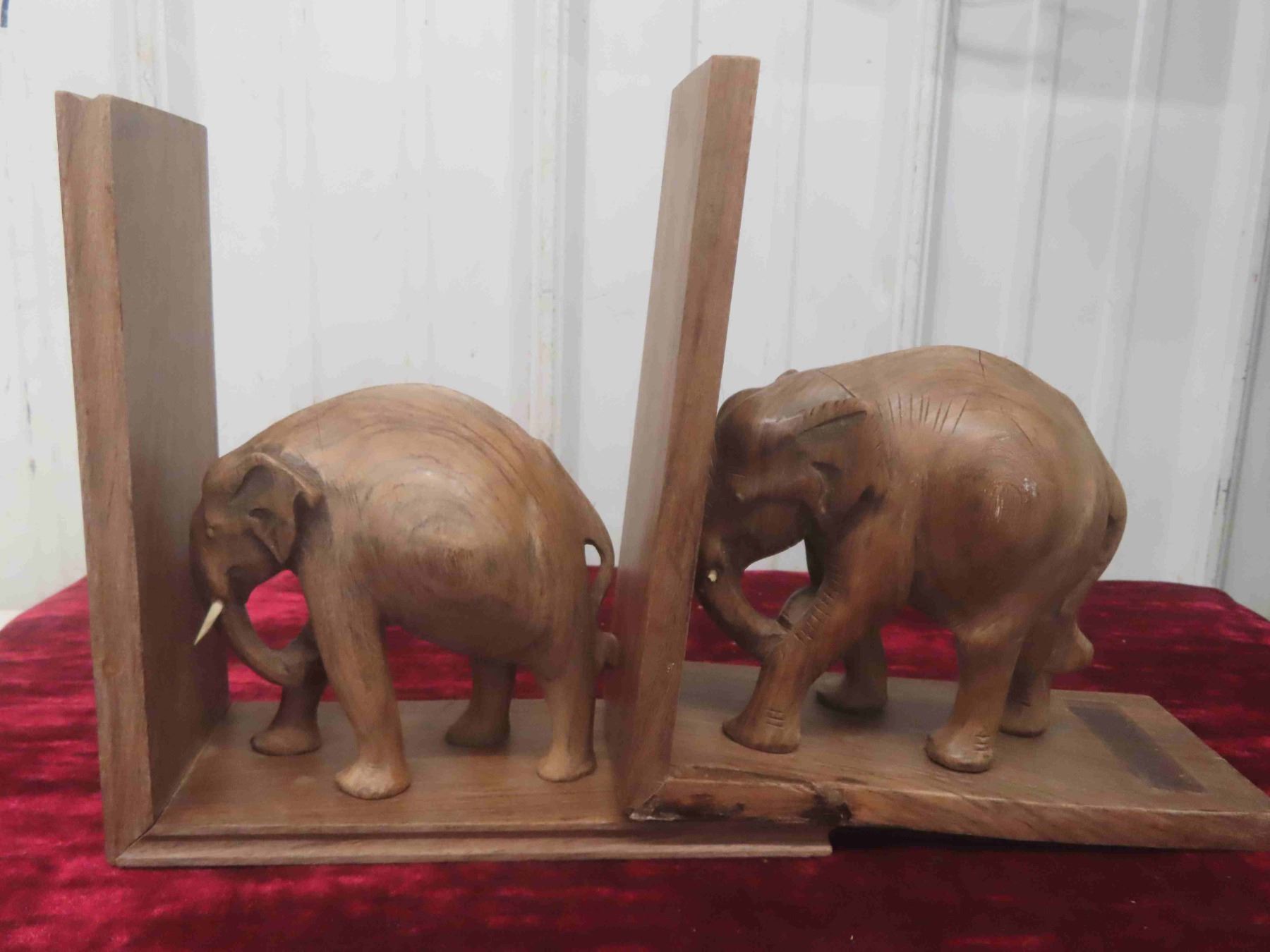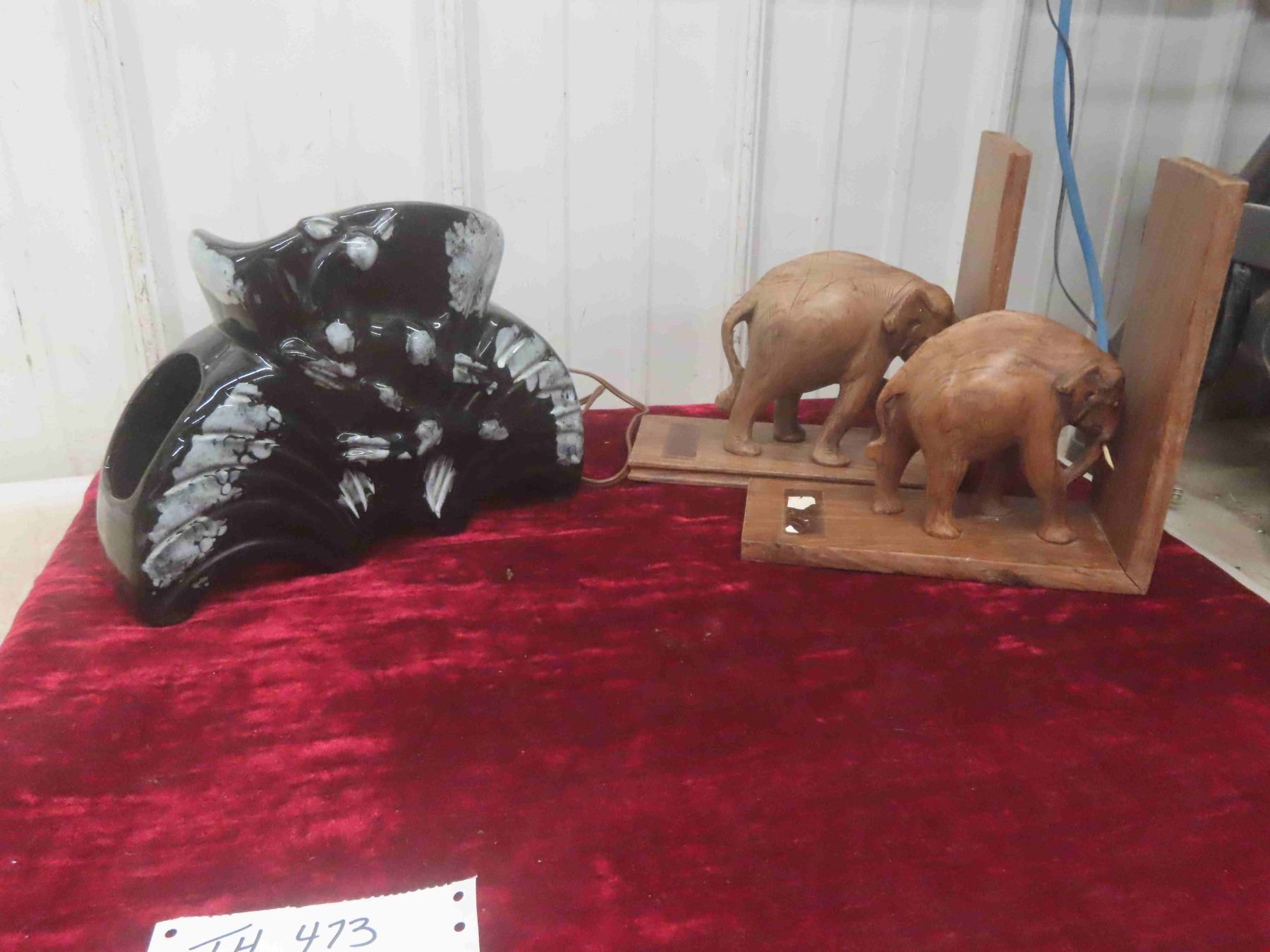 Vintage Ceramic Light 10 1/2'' x 3'' x 8'' Works , Wood Elephant Book Ends