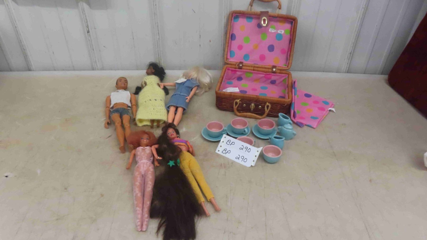 Vintage Childs Glass Tea Set 12pce with Case , 5 Barbies