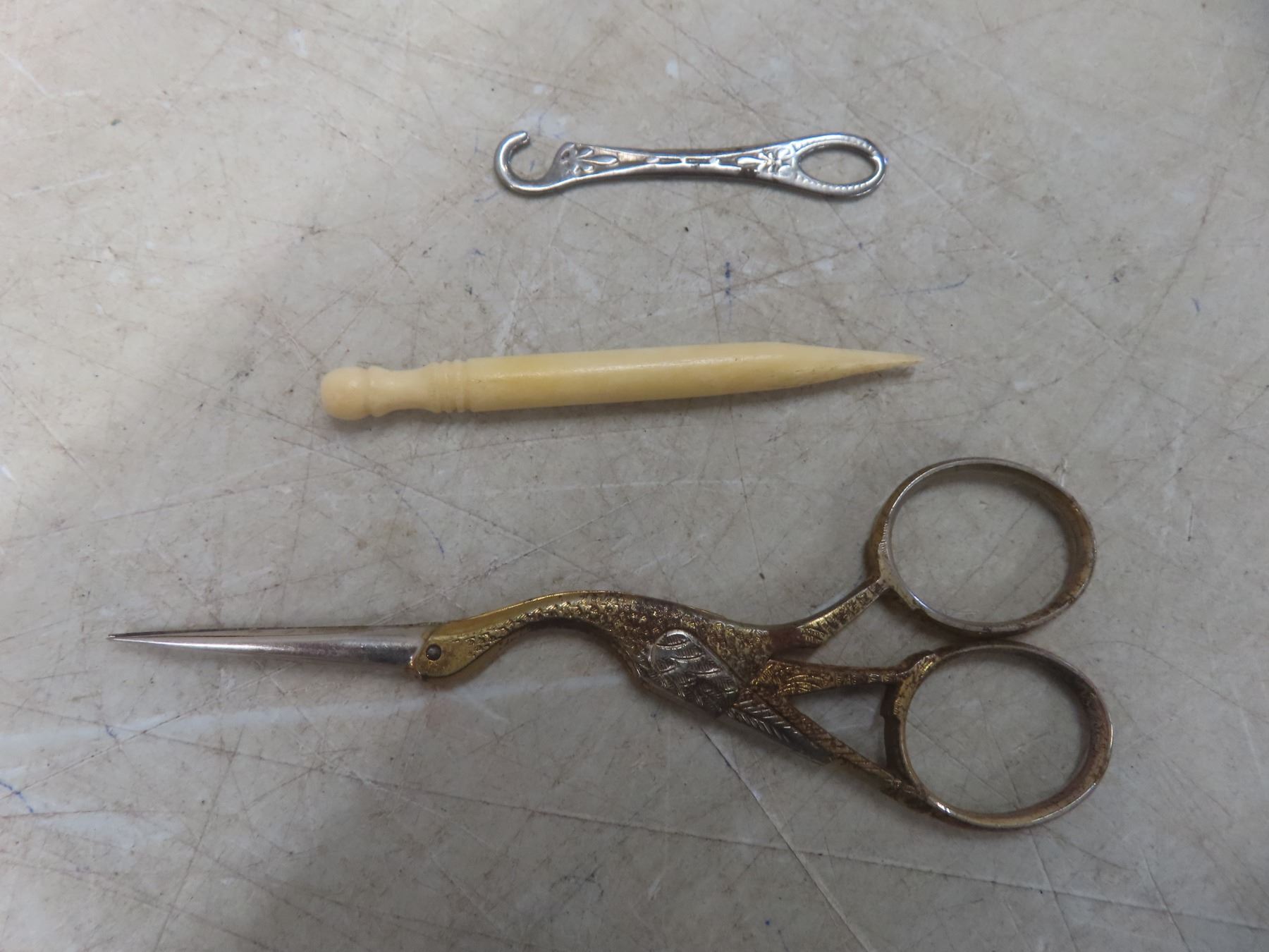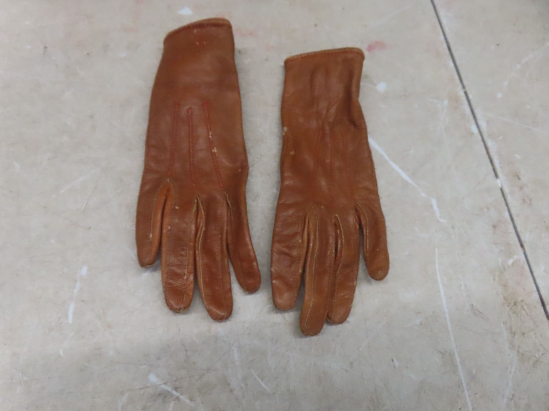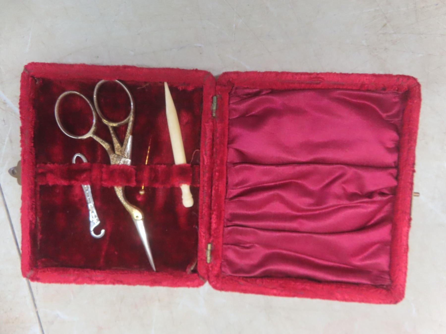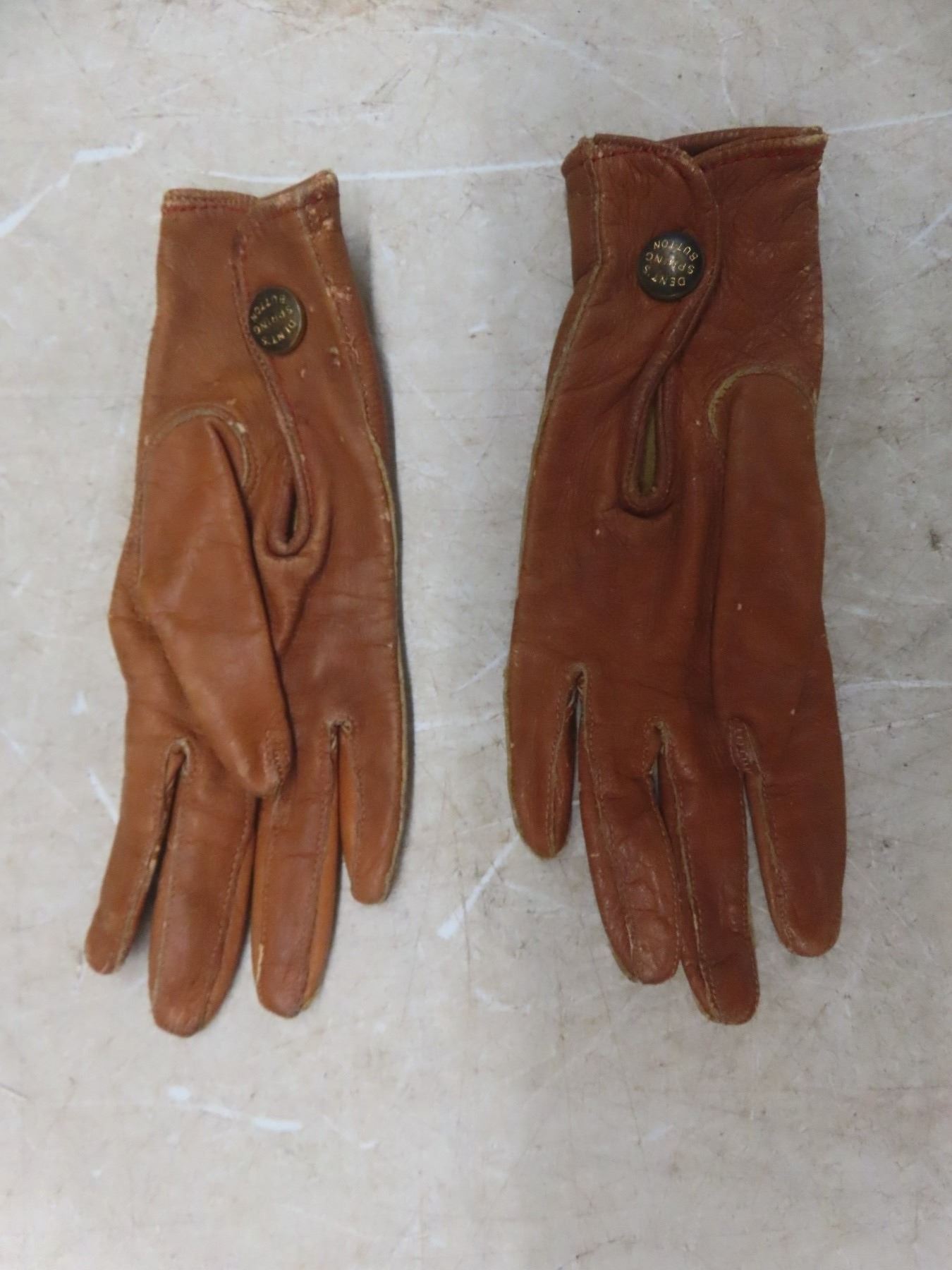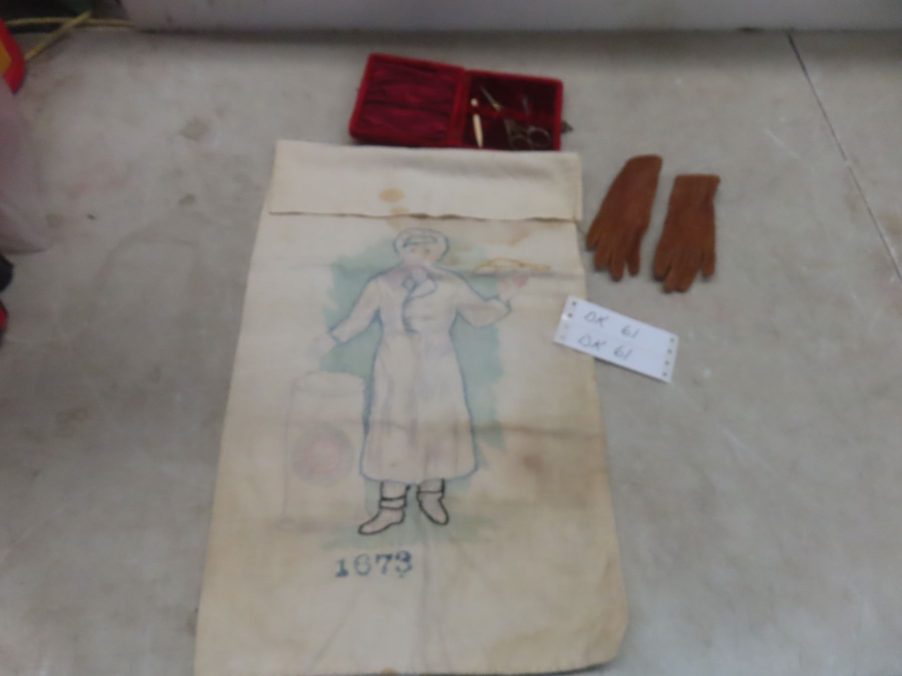 Vintage Childs Leather Gloves, Embroidary Scissor Set & Sewing Sampler