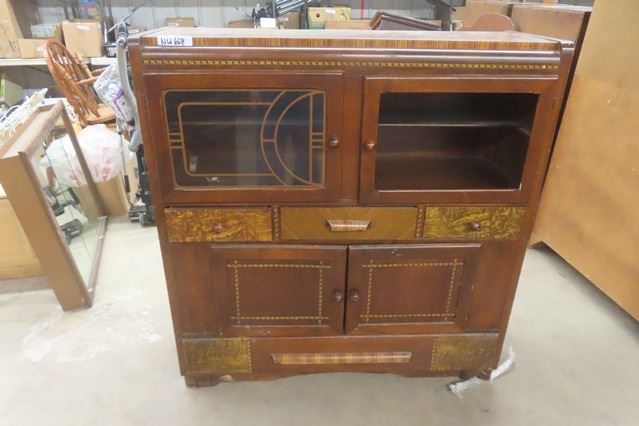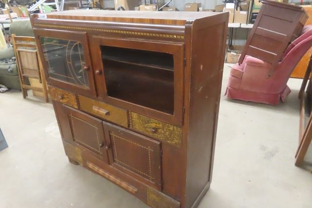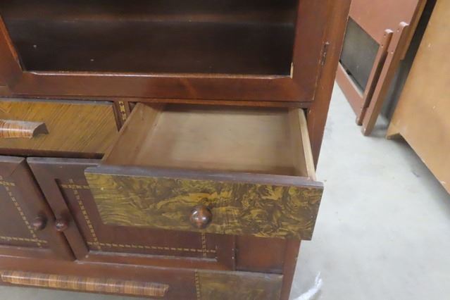 Vintage China Cabinet ,4 Door, Multi Drawer- 1 Piece of Glass Missing 17"×46"×47"