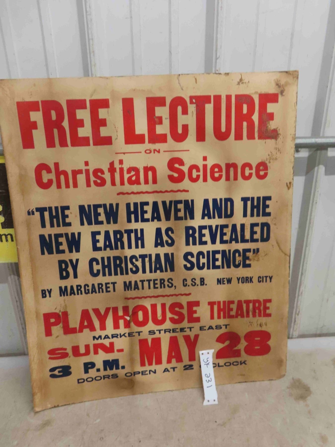 Vintage Christian Science Playhouse Theatre Street Car Poster 22'' x 26''