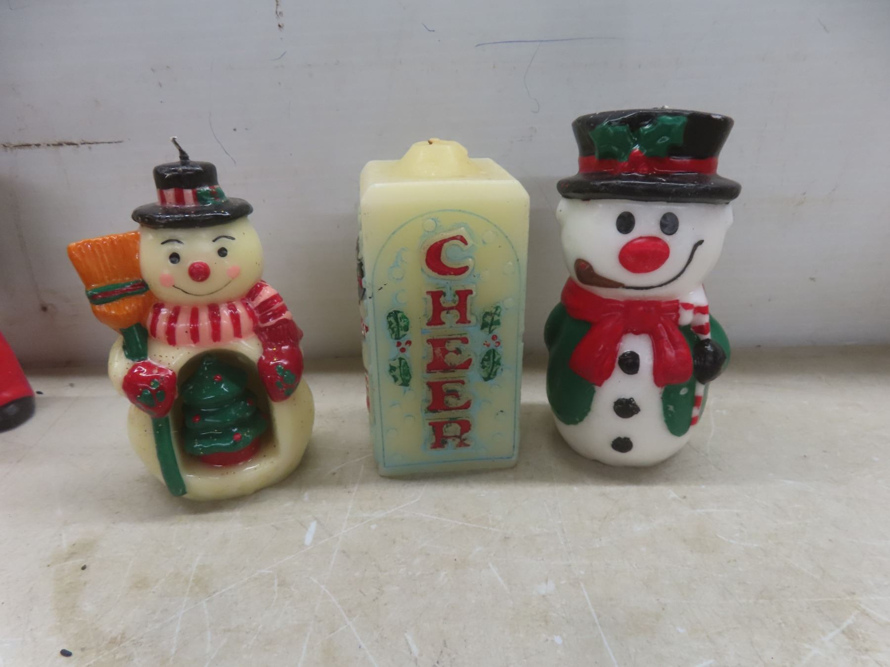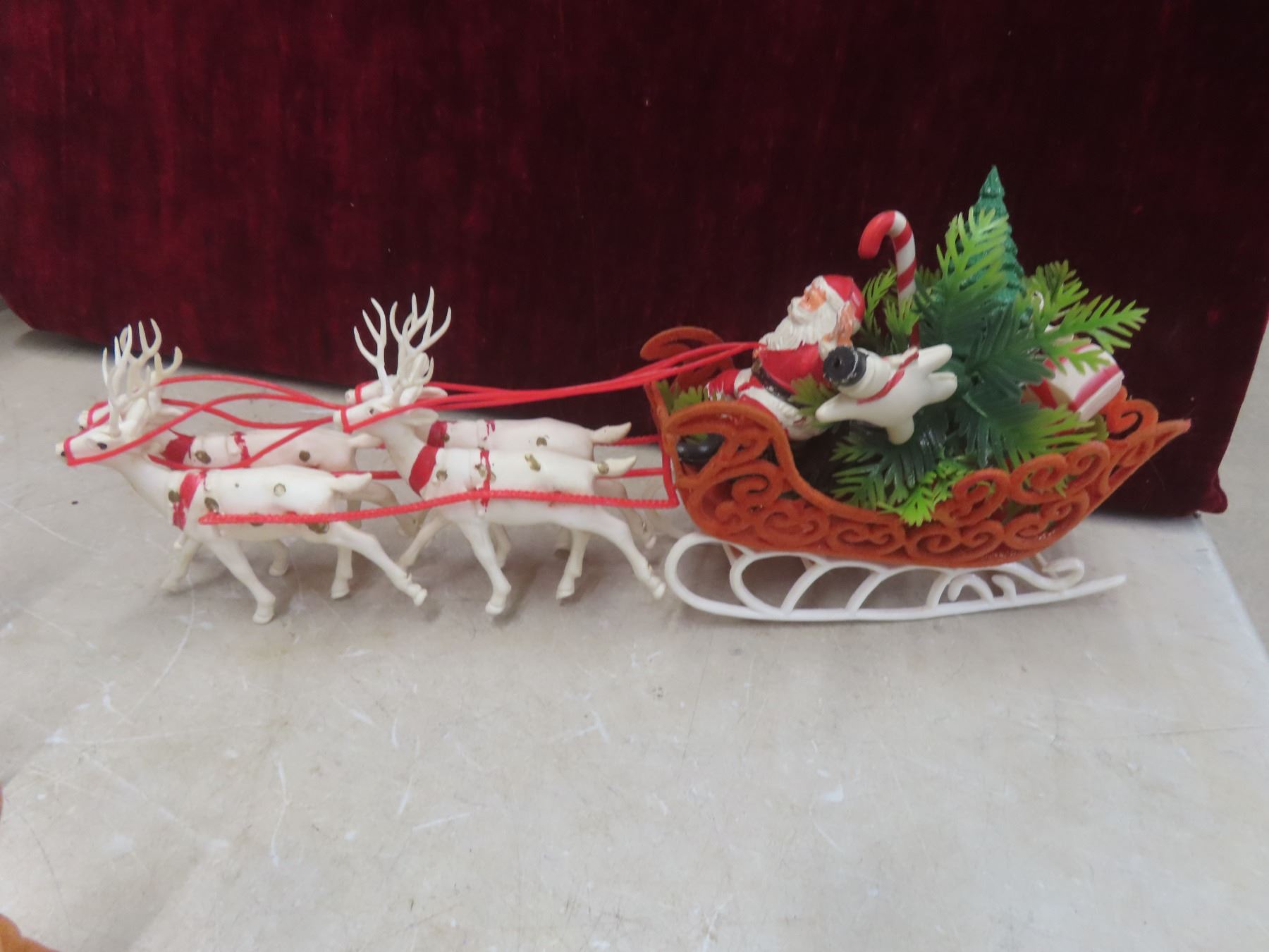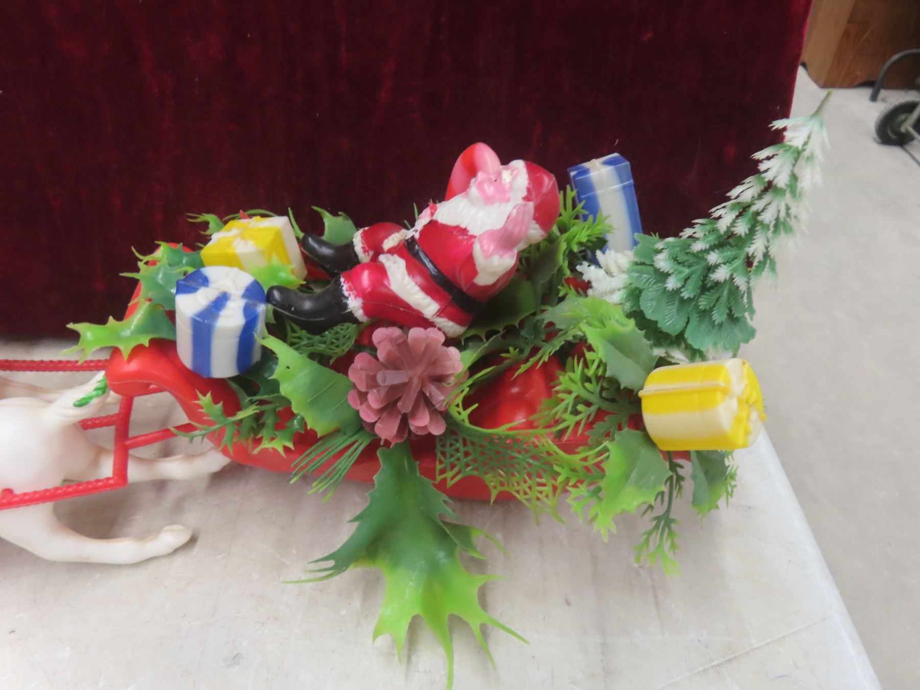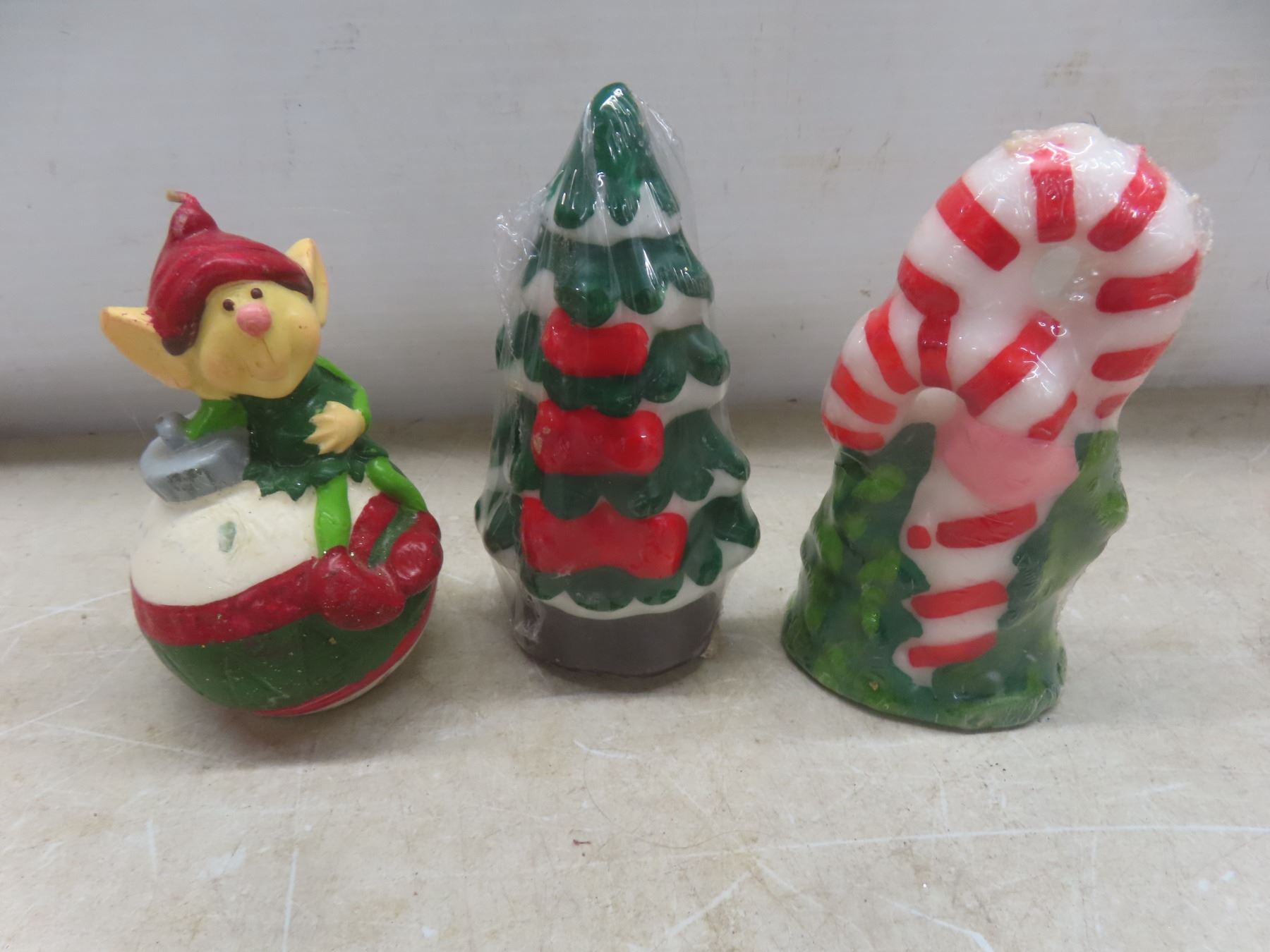 Vintage Christmas Décor Lot Including Santa and Reindeer Figures, Deer Family, and Unused Christmas Candles