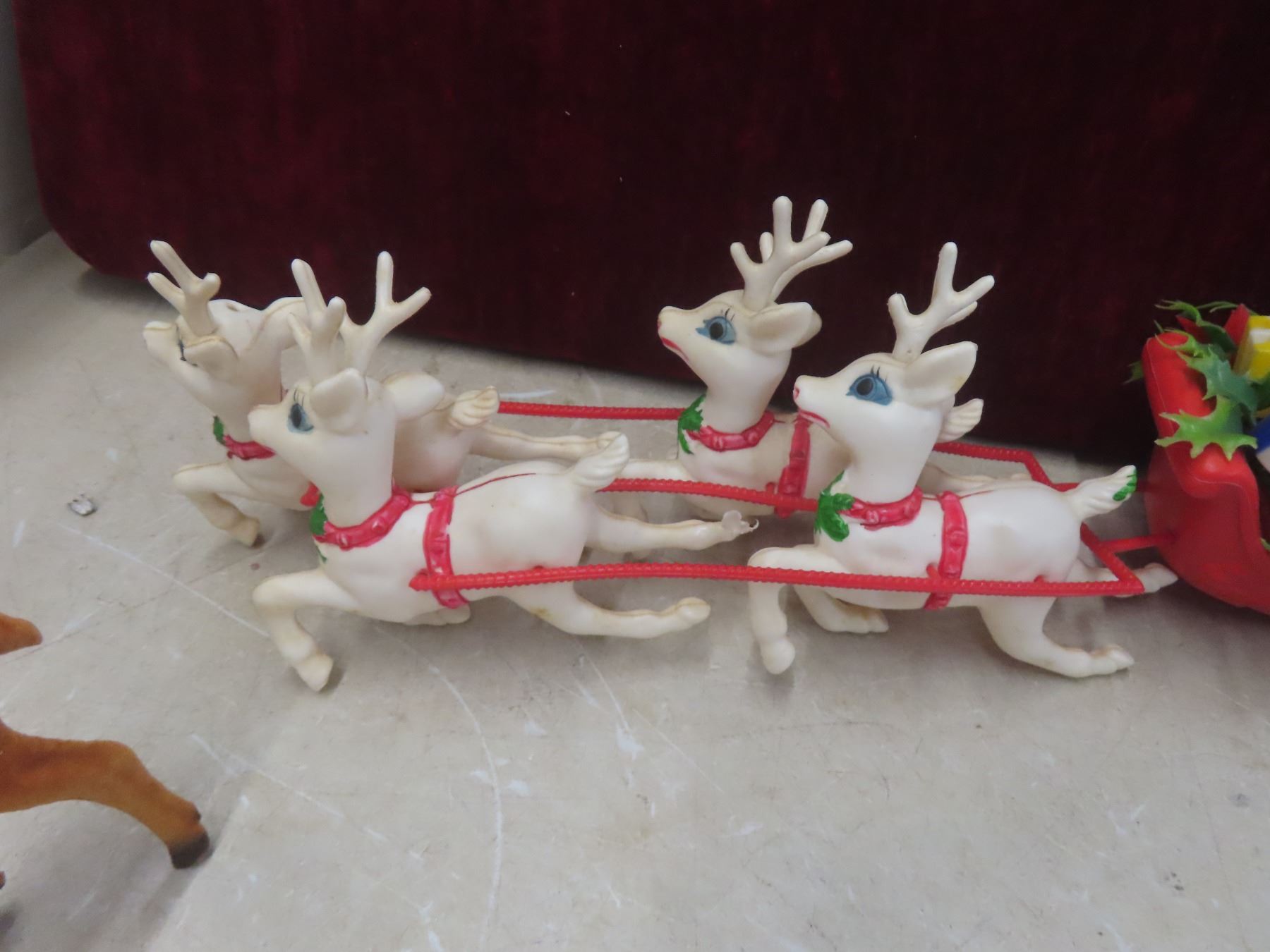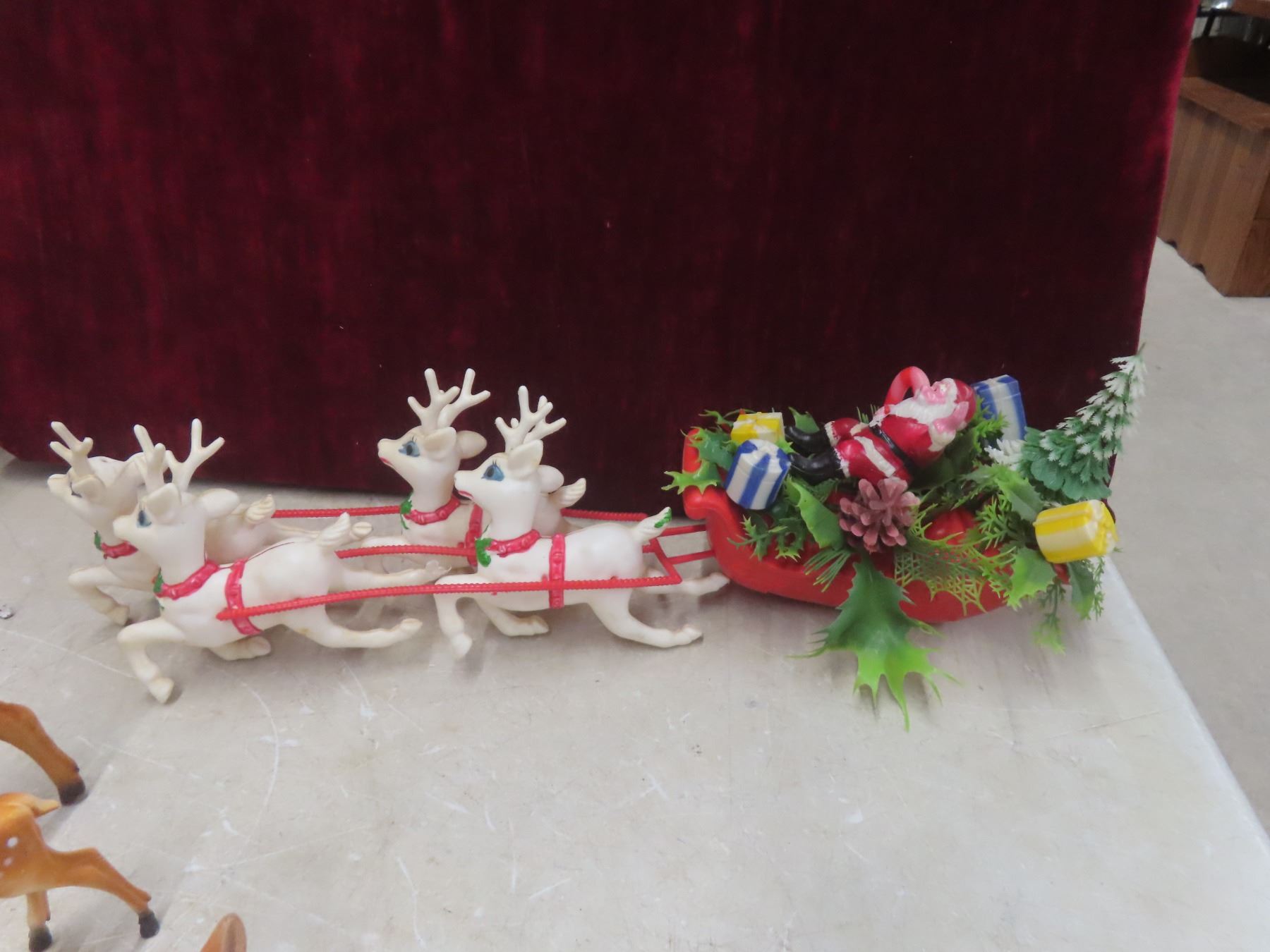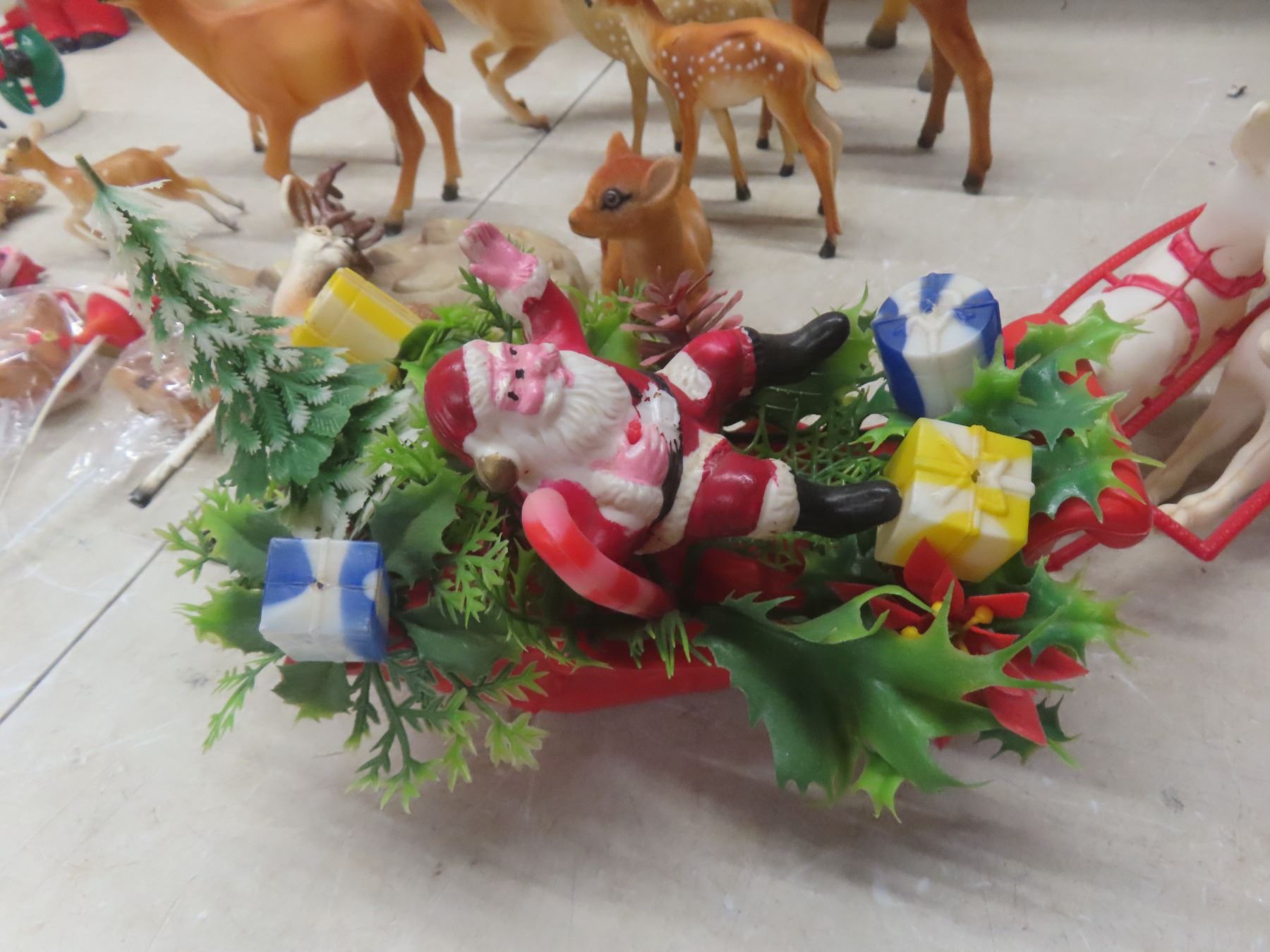 Vintage Christmas Décor Lot Including Santa and Reindeer Figures, Deer Family, and Unused Christmas
