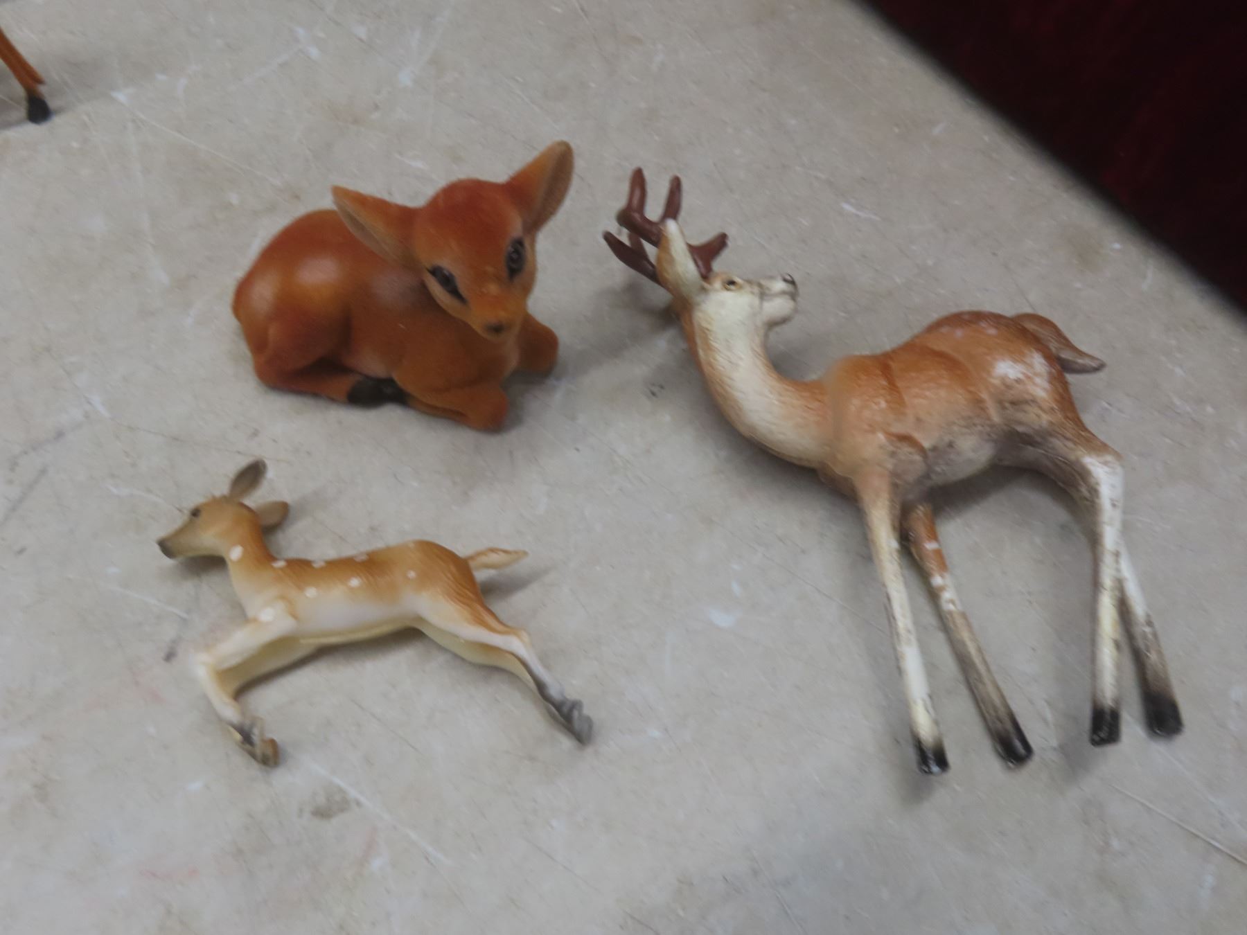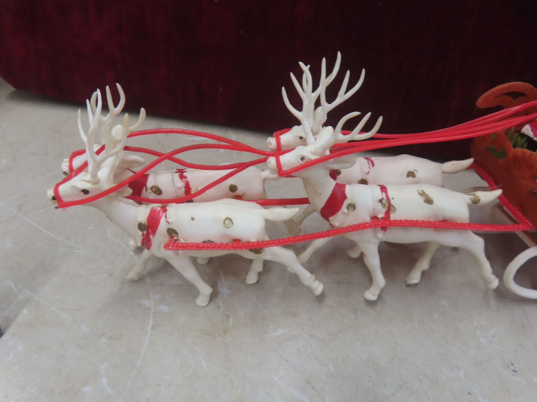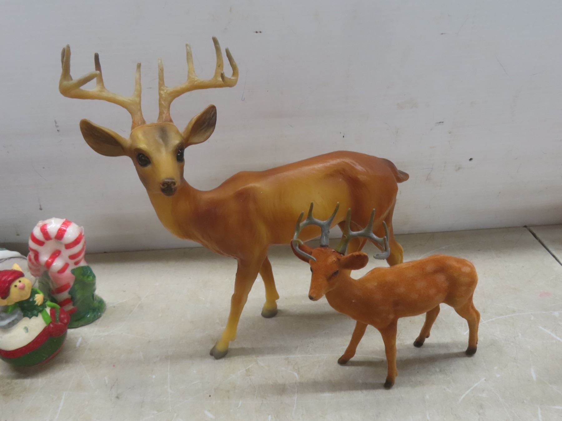 Vintage Christmas Décor Lot Including Santa and Reindeer Figures, Deer Family, and Unused Christmas