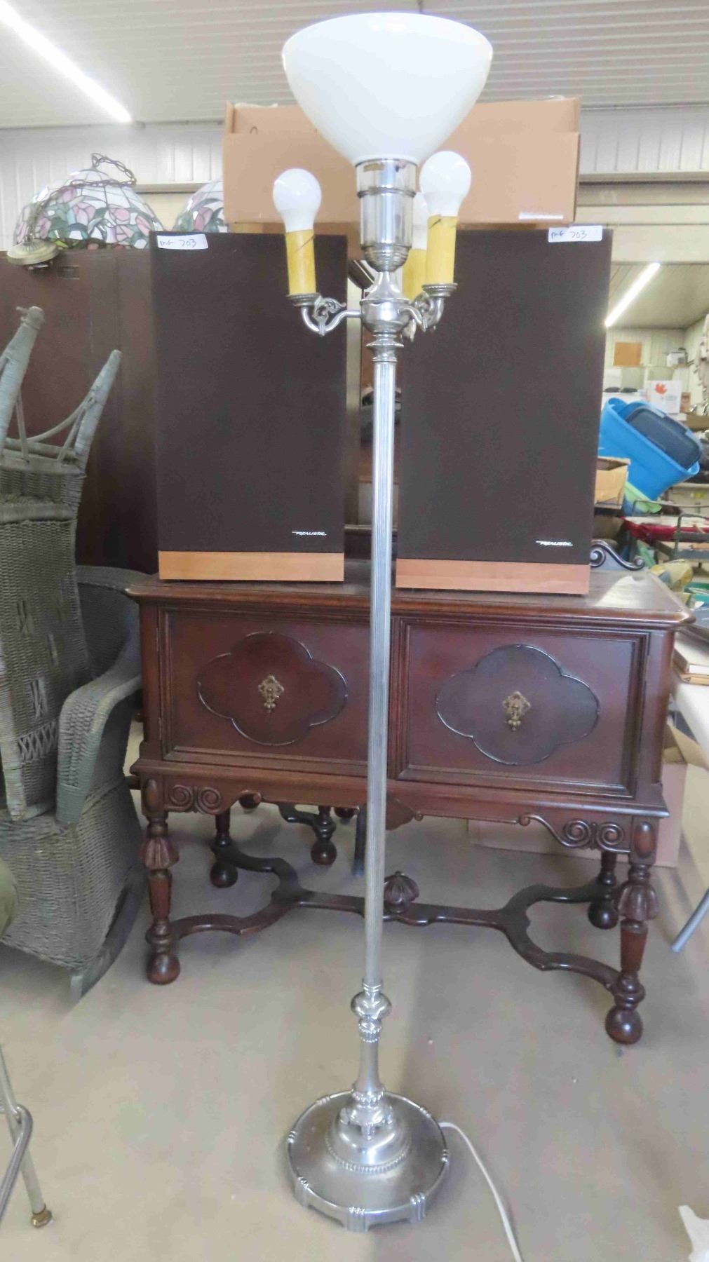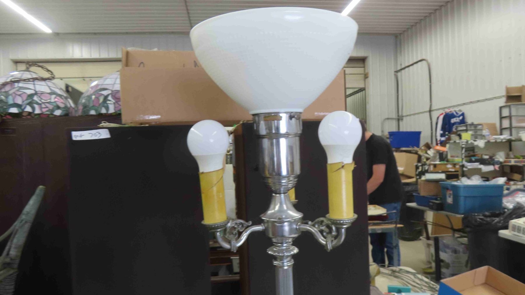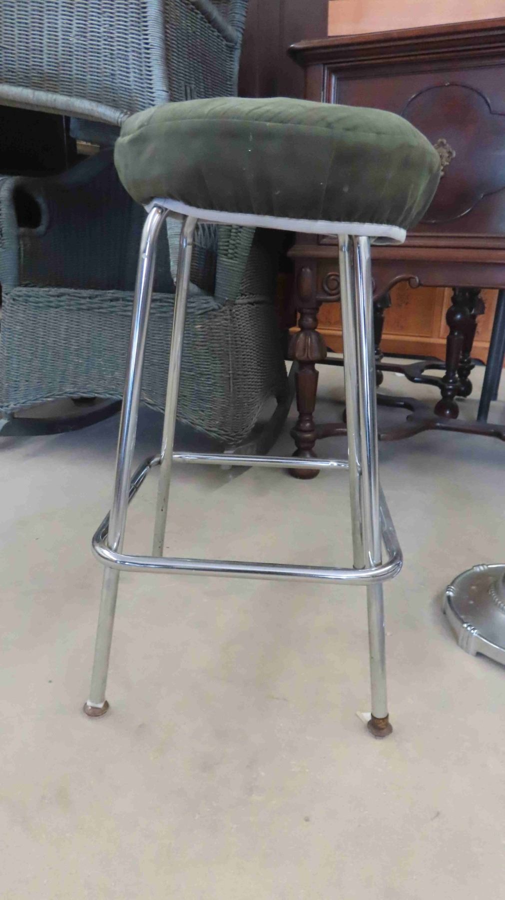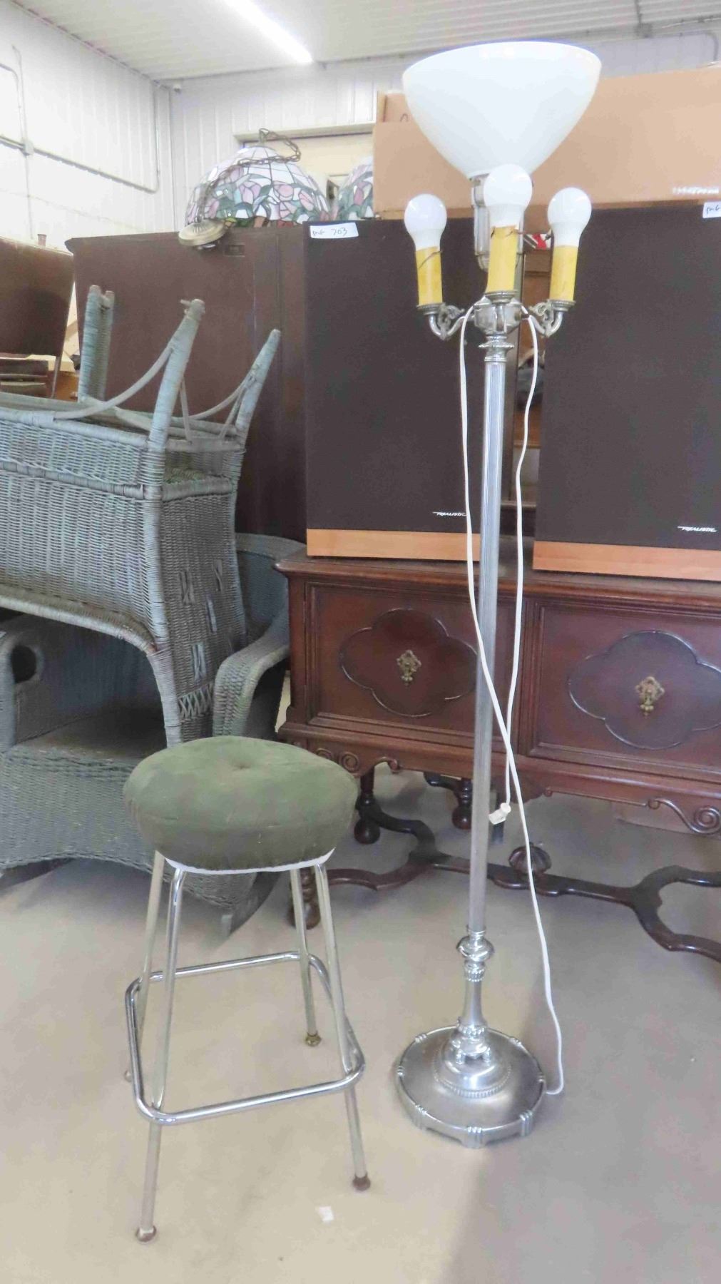 Vintage Chrome Floor Lamp with Glass Shade , Stool 25'' Seat Height