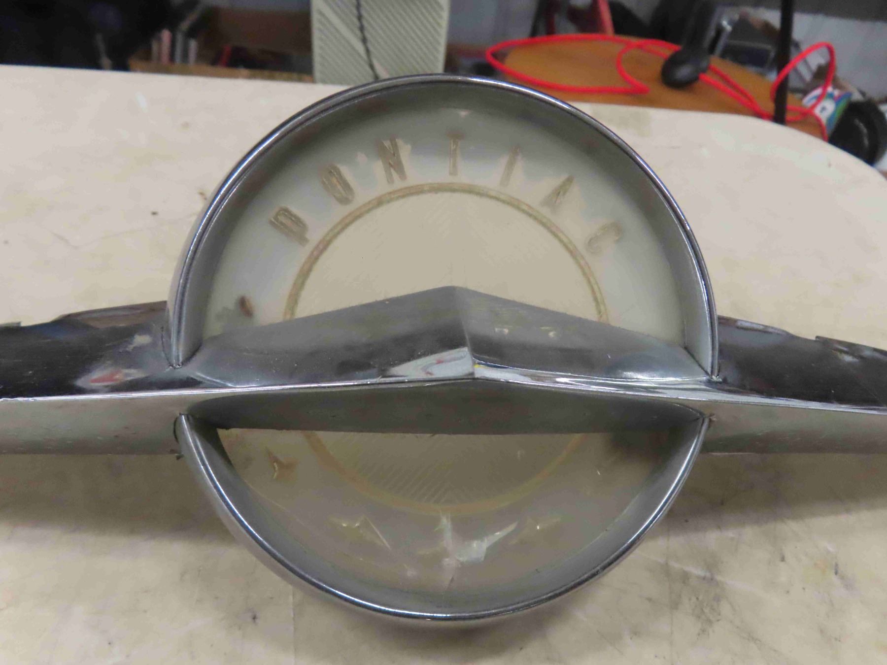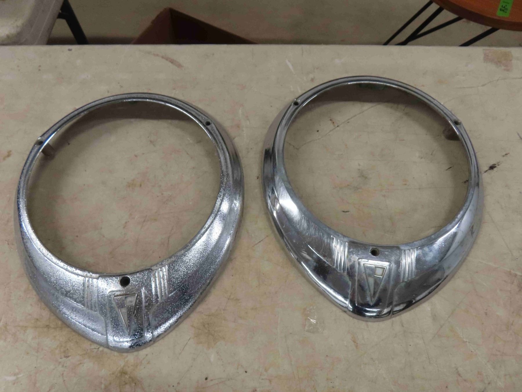 Vintage Chrome Headlight Trim , 1951 Pontiac Emblem, Chrome Marker Light Trim
