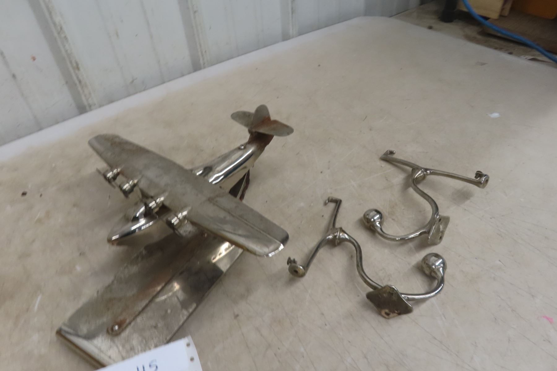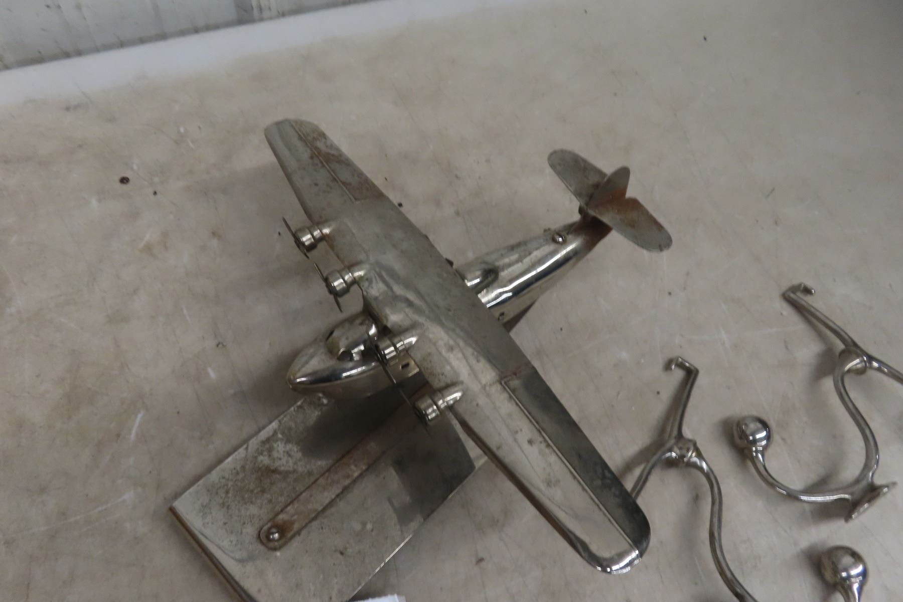 Vintage Chrome Plane with Hanger Hooks, Plane Size 9" X 13"