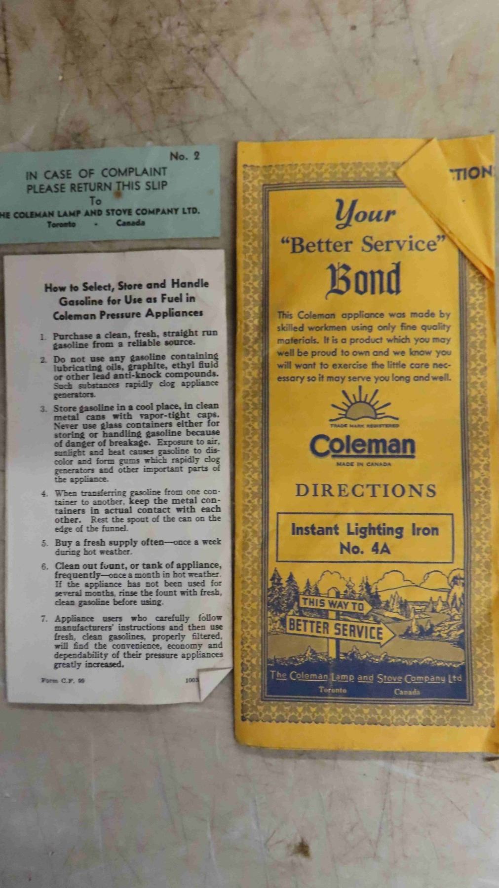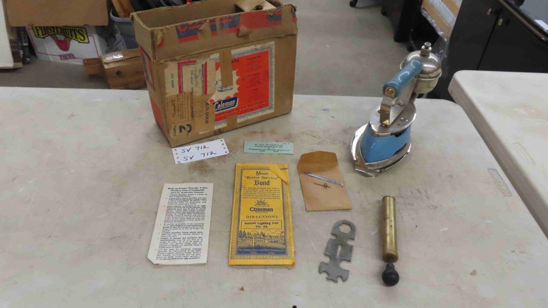 Vintage Coleman Instant Lighting Iron with Original Box, Directions, Pamphlets