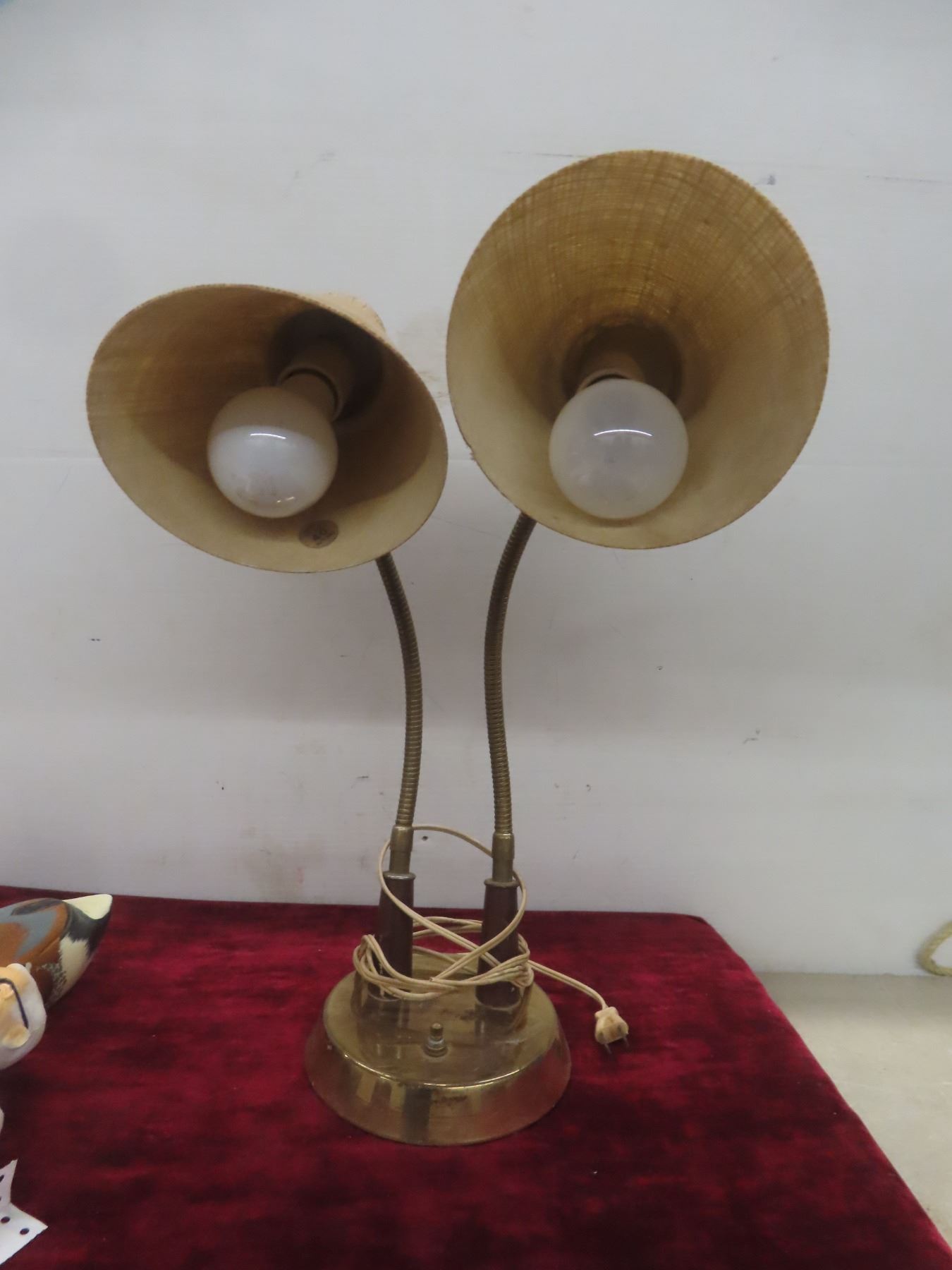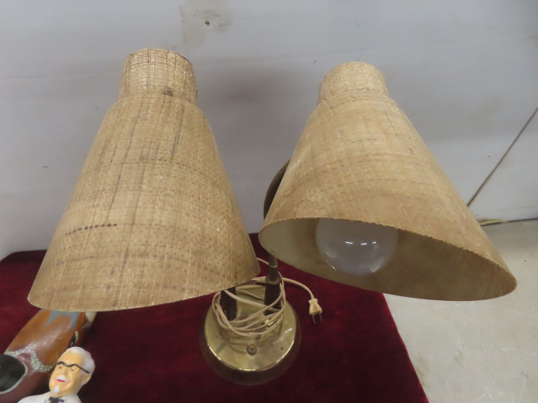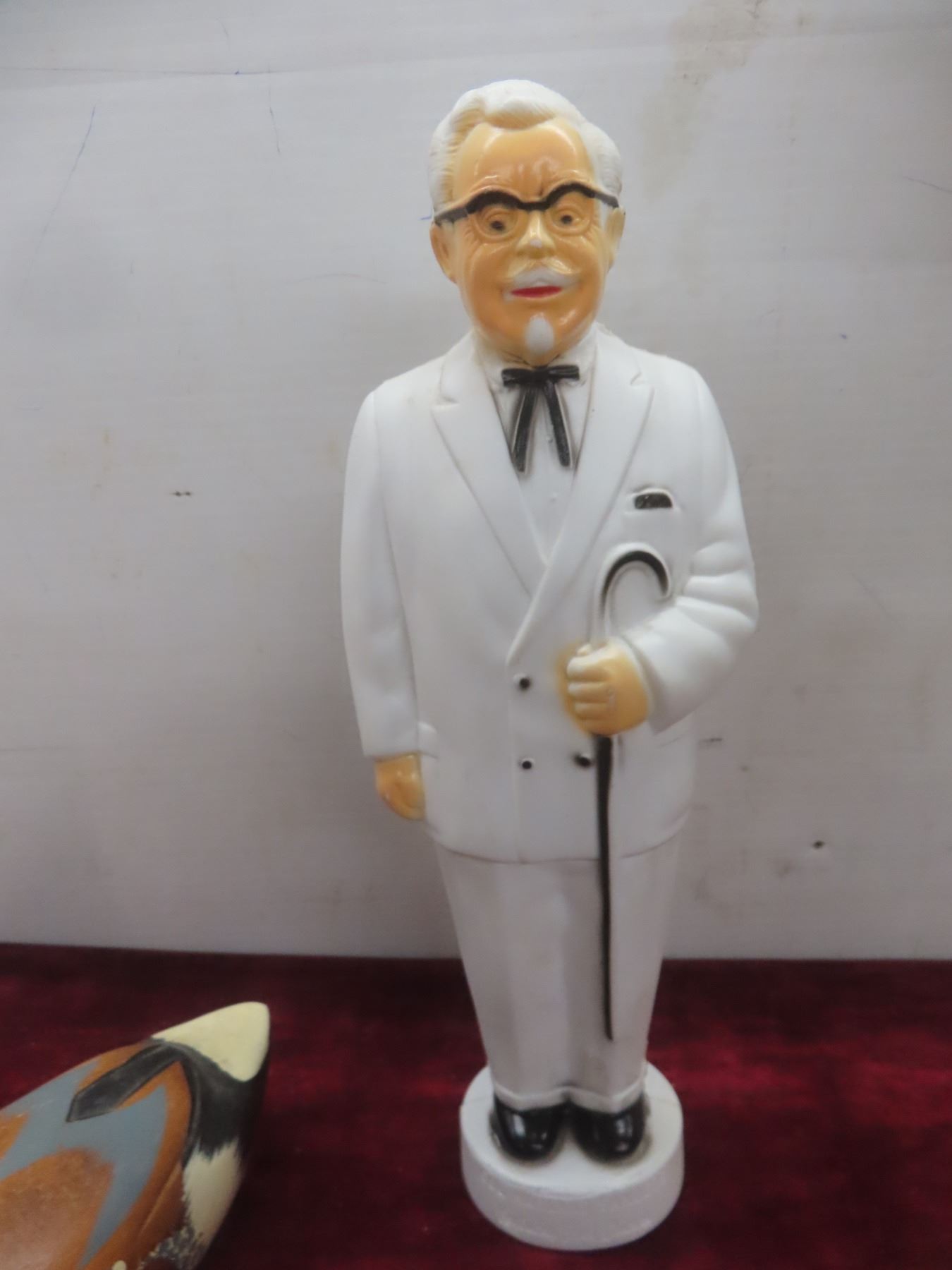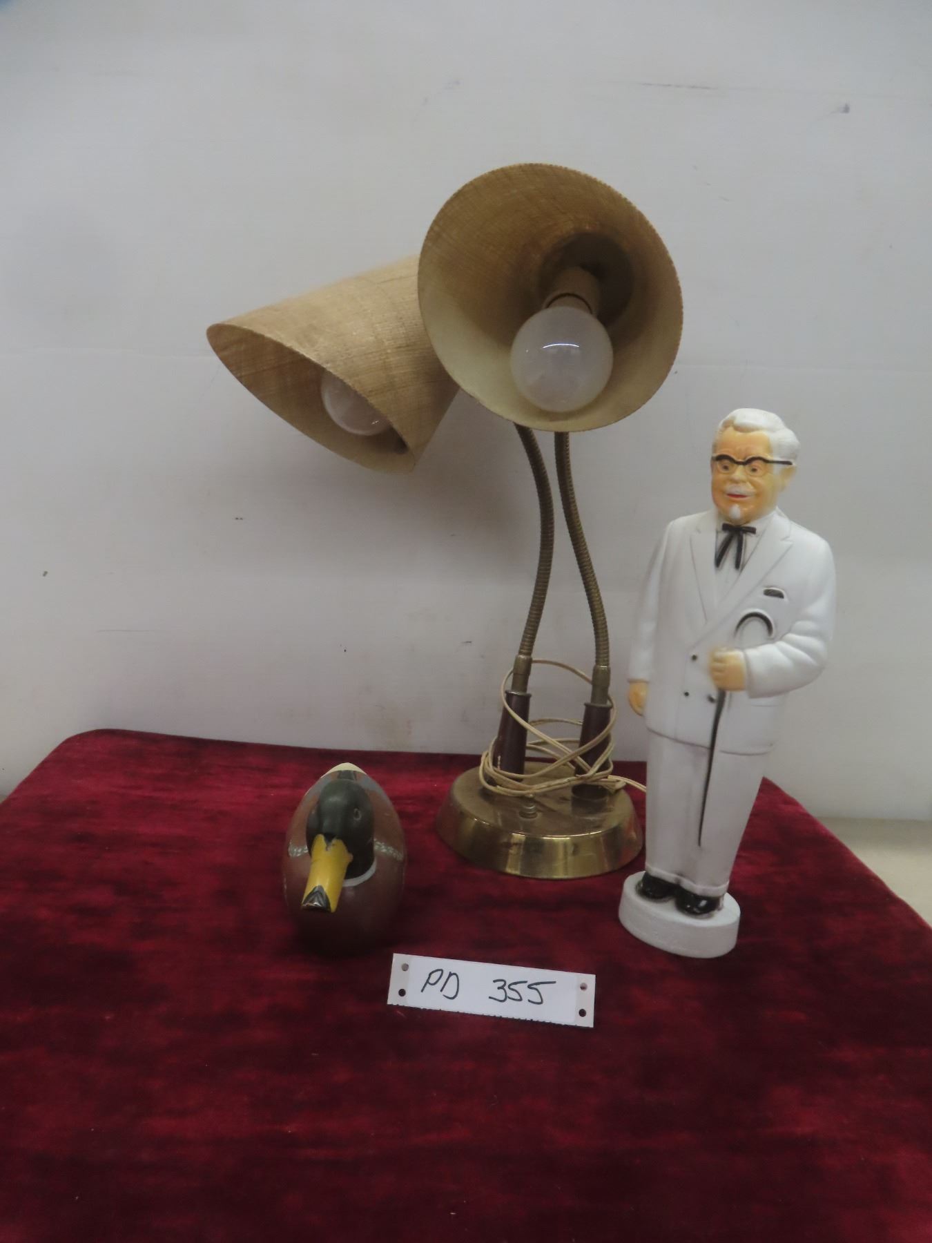 Vintage Desk Lamp; Wood Duck; And Colonel Sanders Plastic Bank.