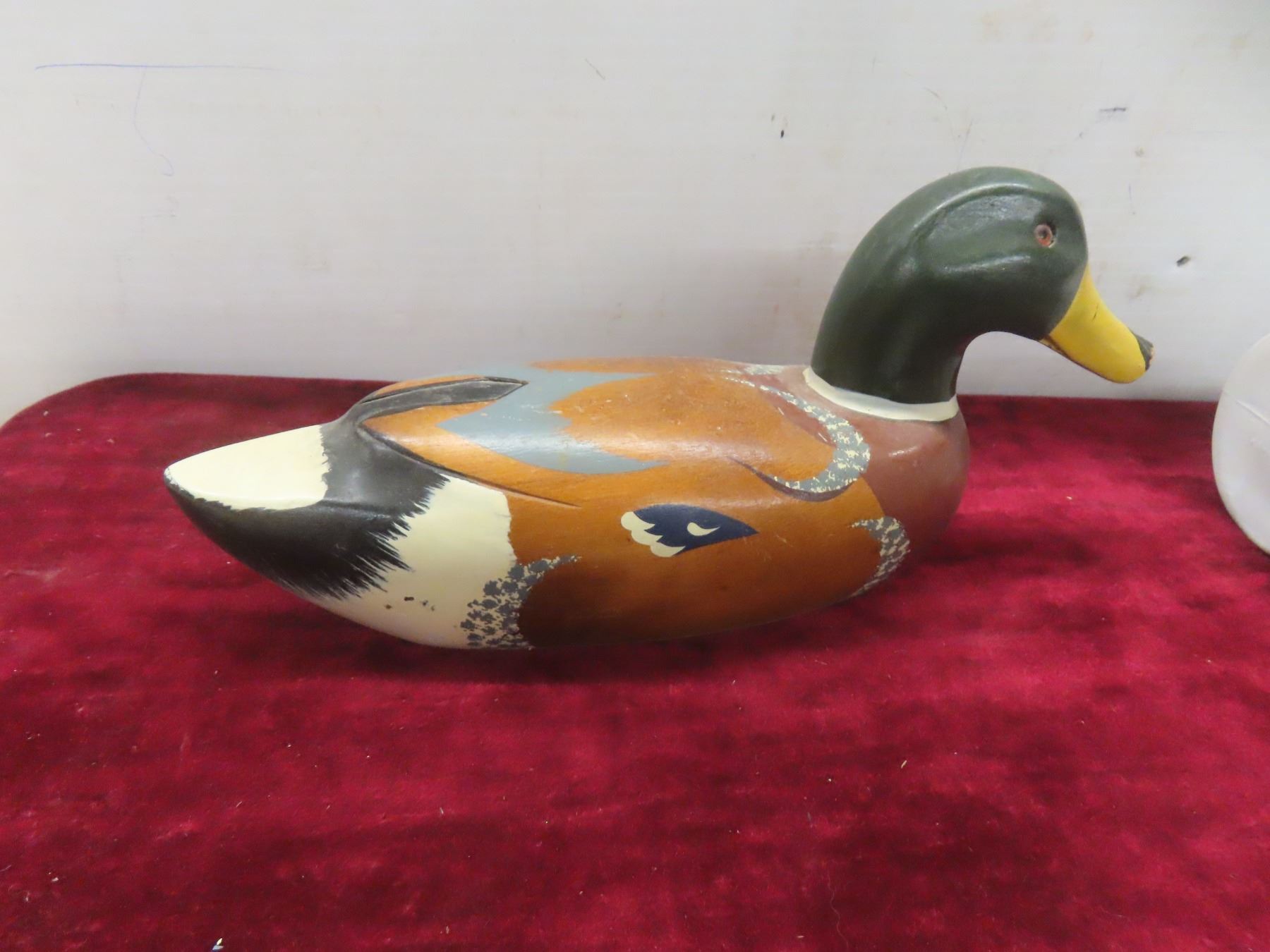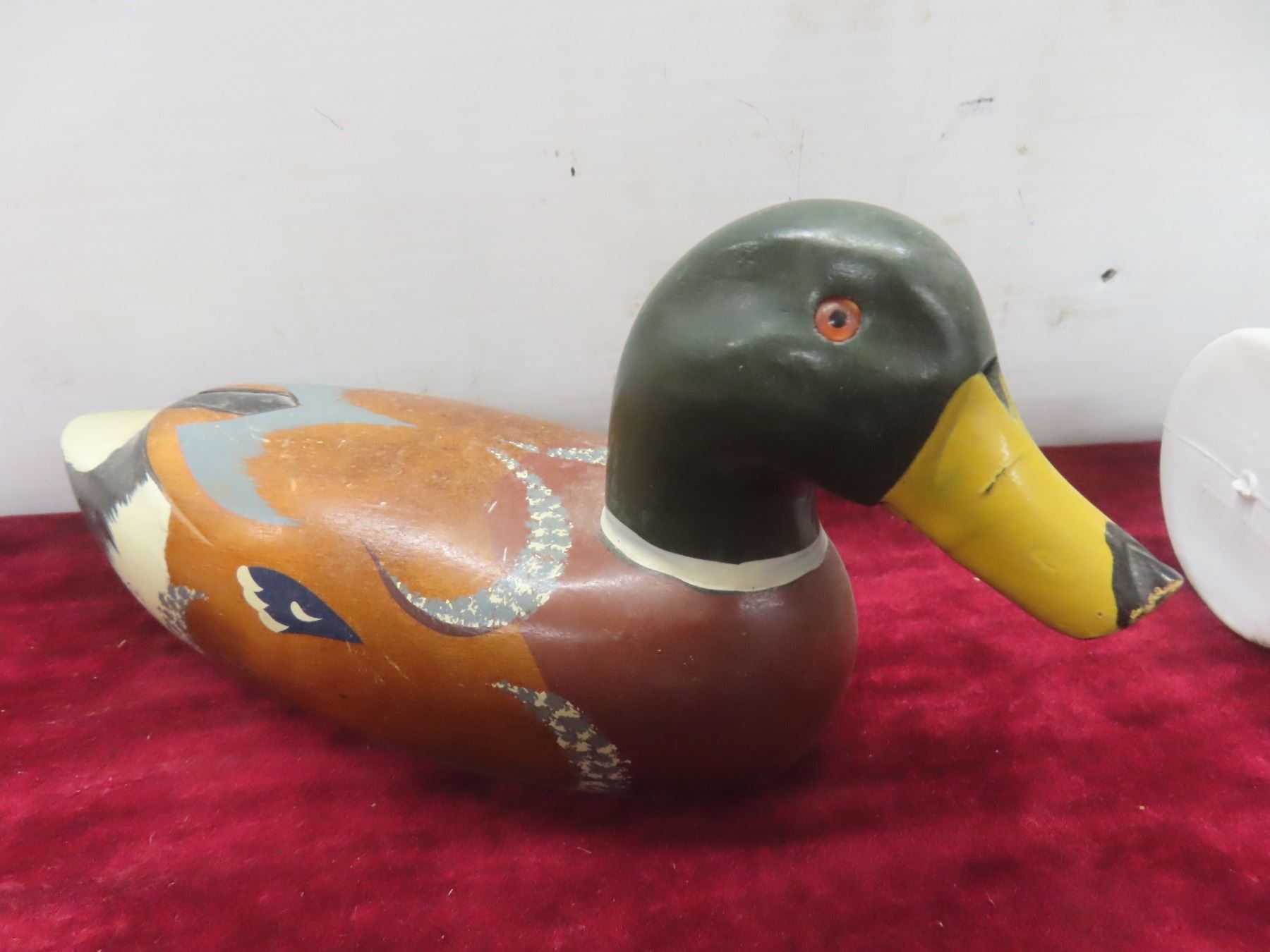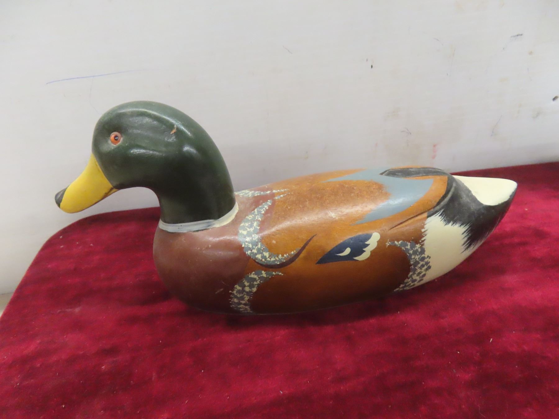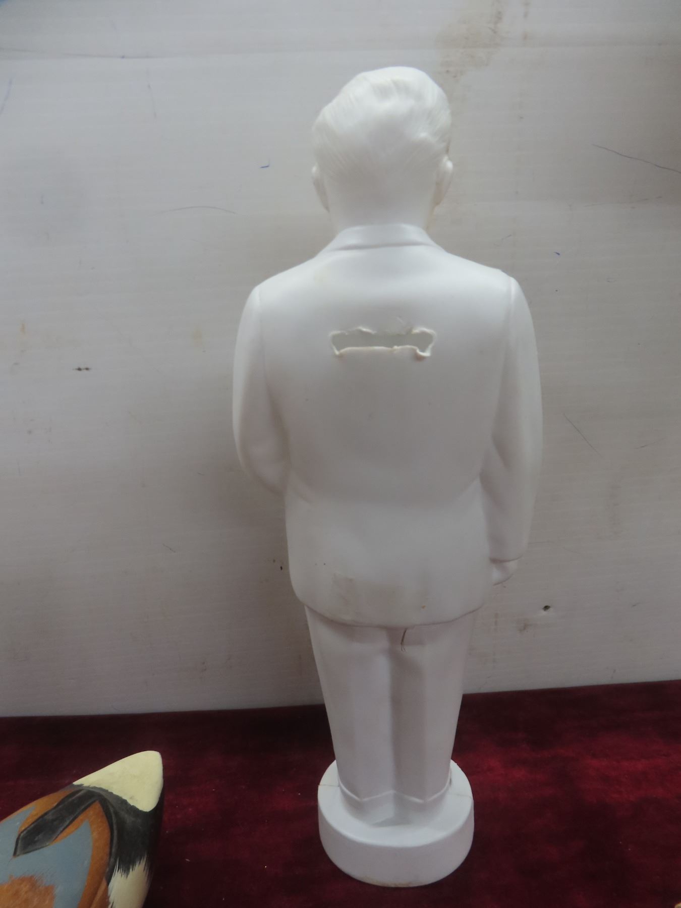 Vintage Desk Lamp; Wood Duck; And Colonel Sanders Plastic Bank.