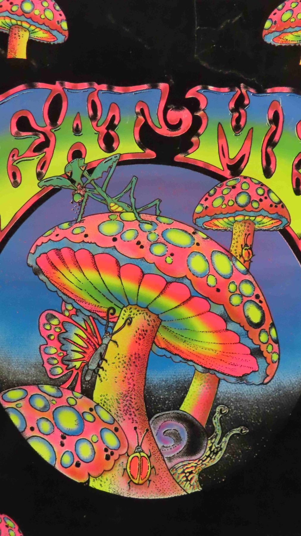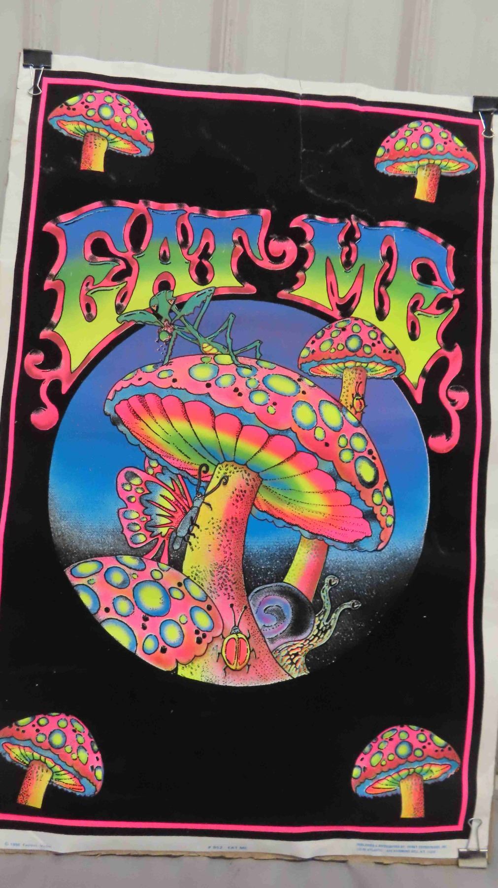 Vintage ' Eat Me' Mushroom Black Light Poster - Fuzzy ! 23" x 35"