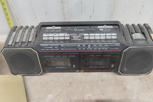 Vintage Electronics; Citizen Boom Box, Commodore C2N Datasette Unit, Touch Pad Phone, Clear TV Unit