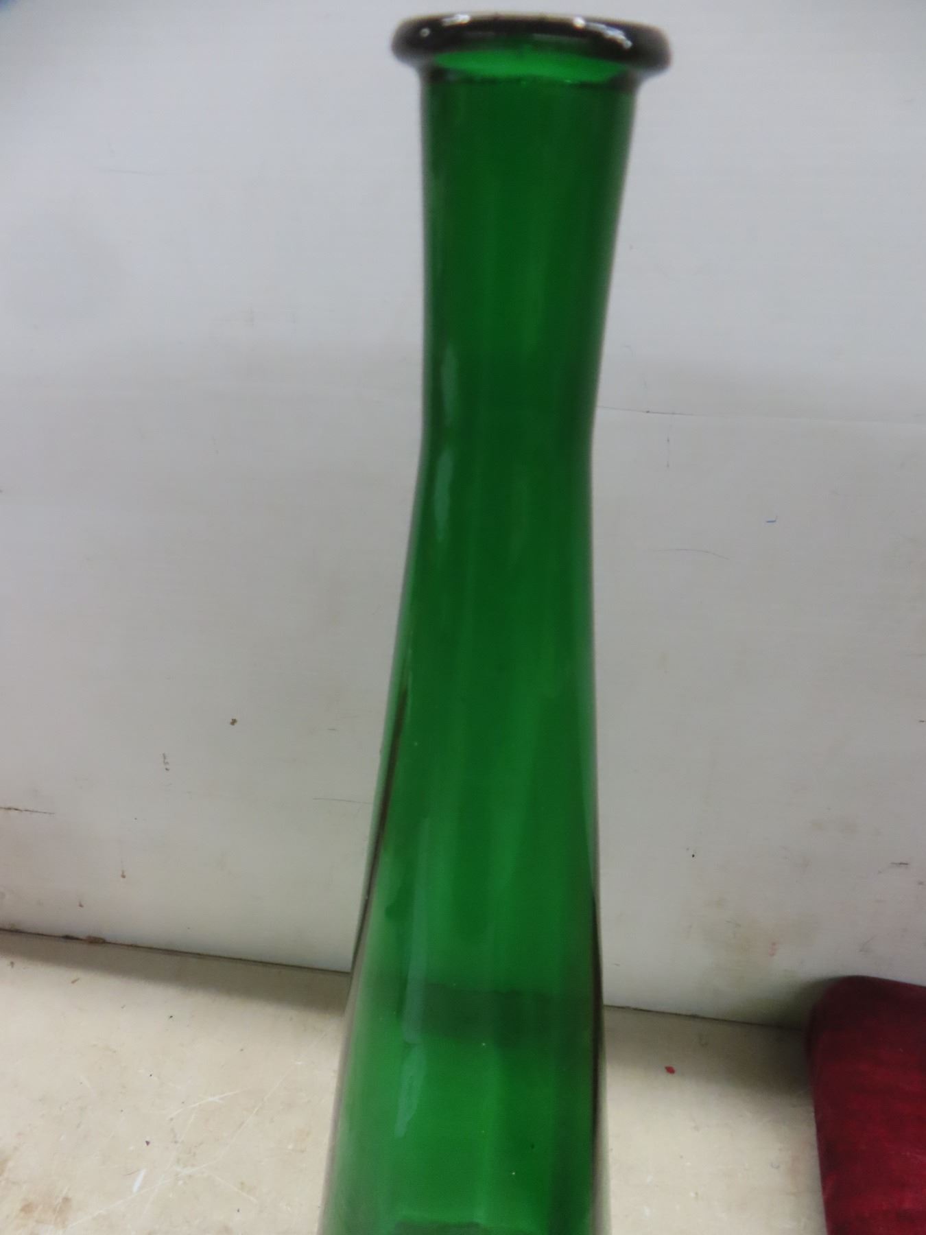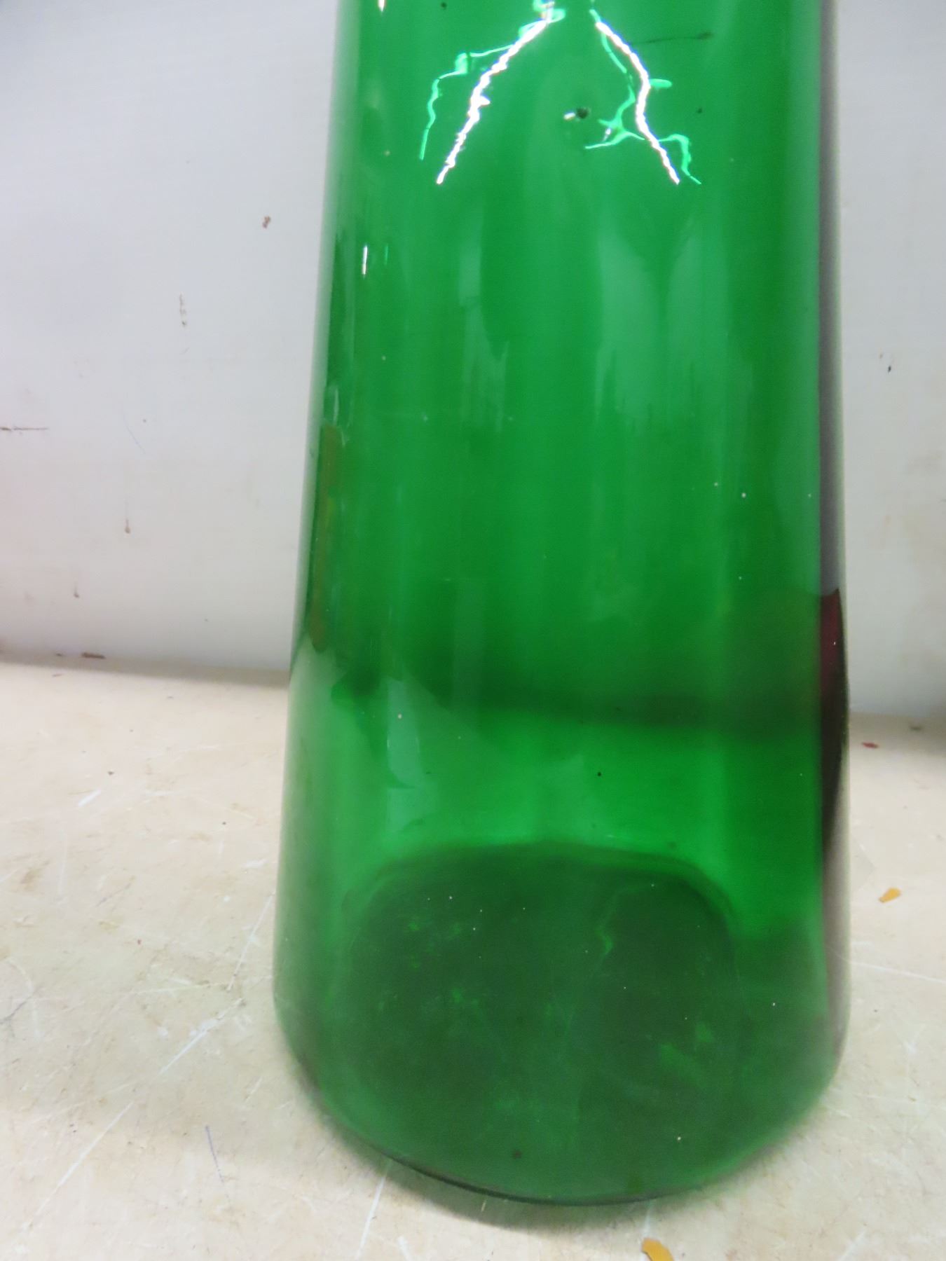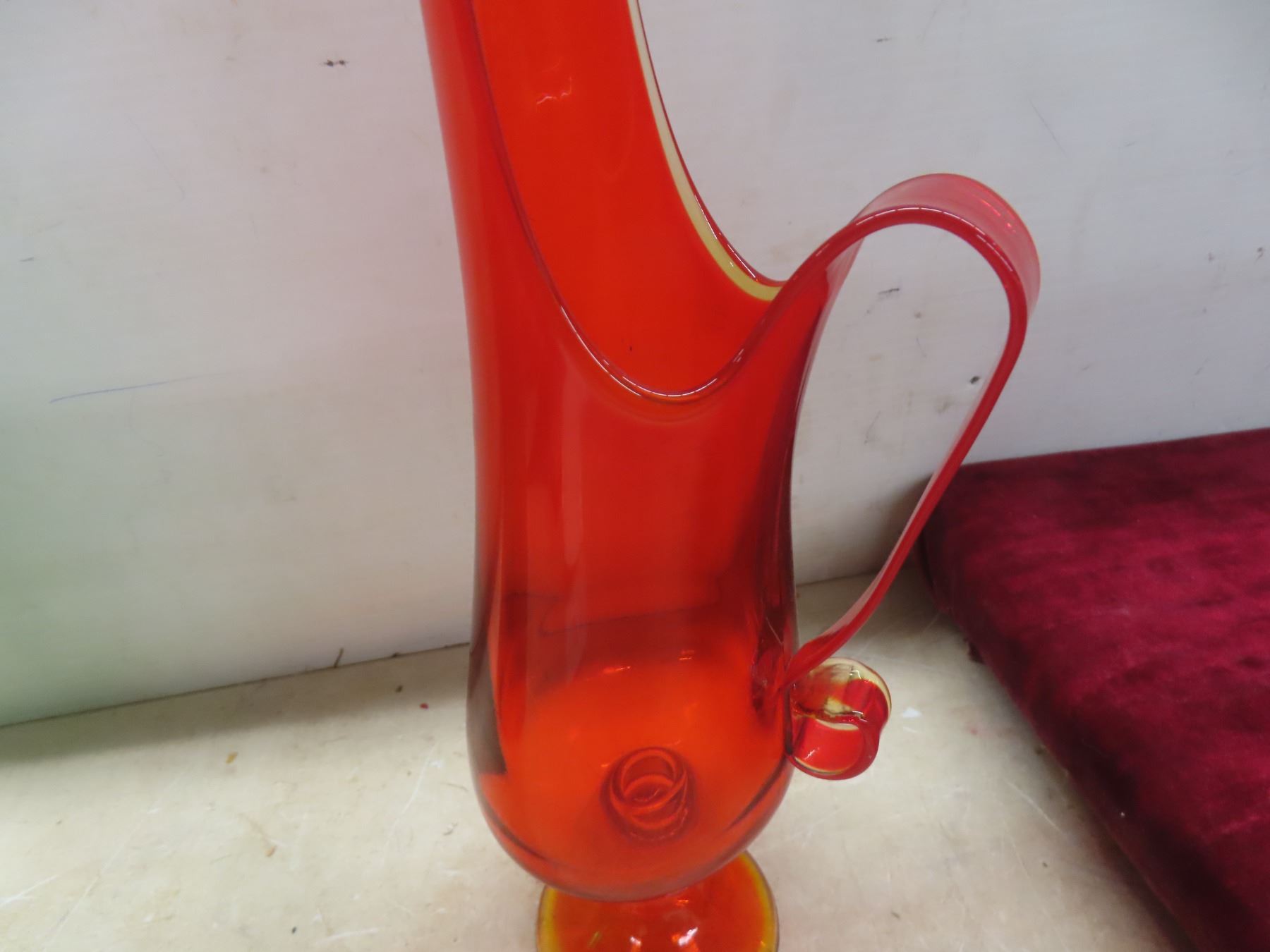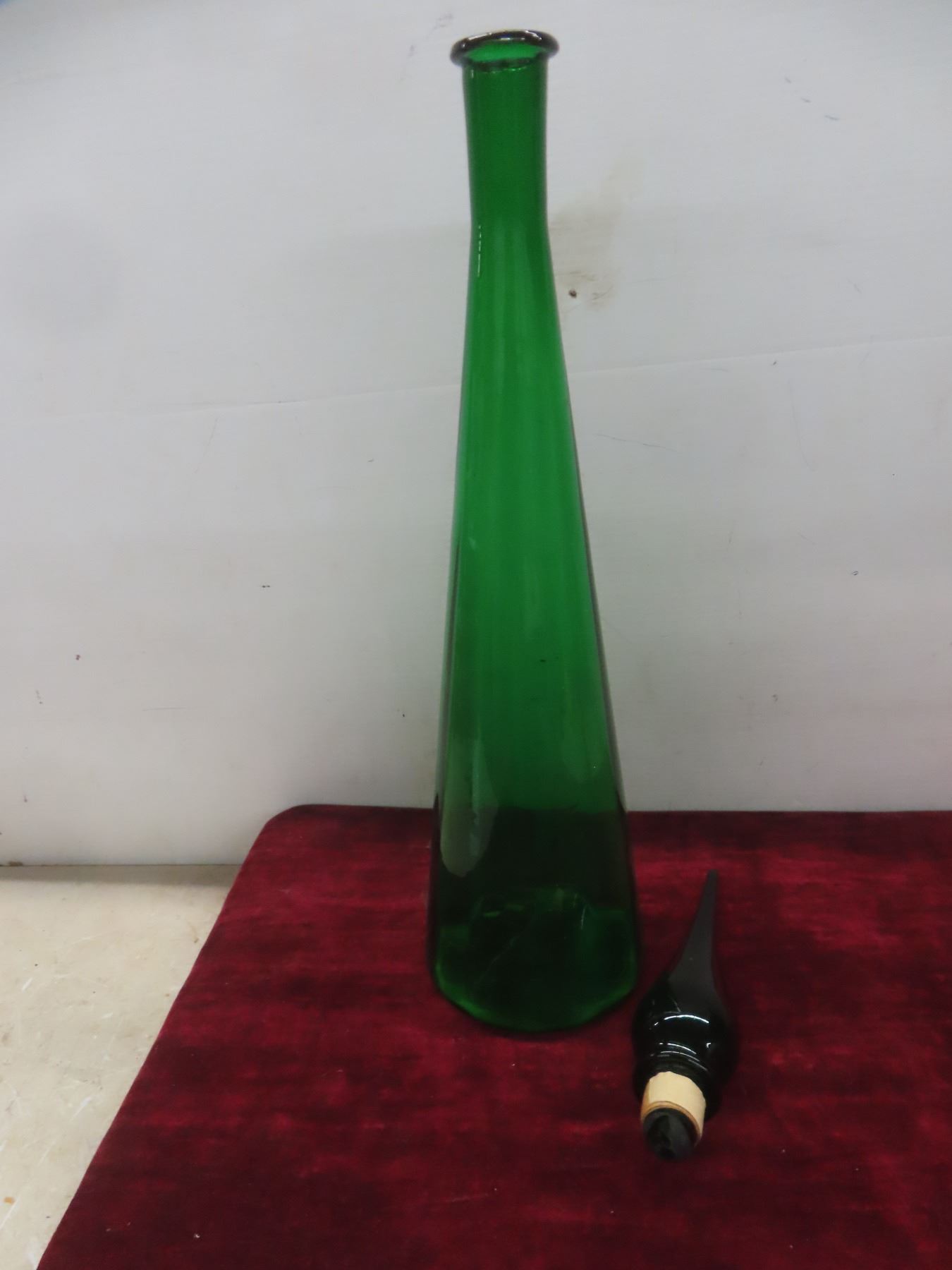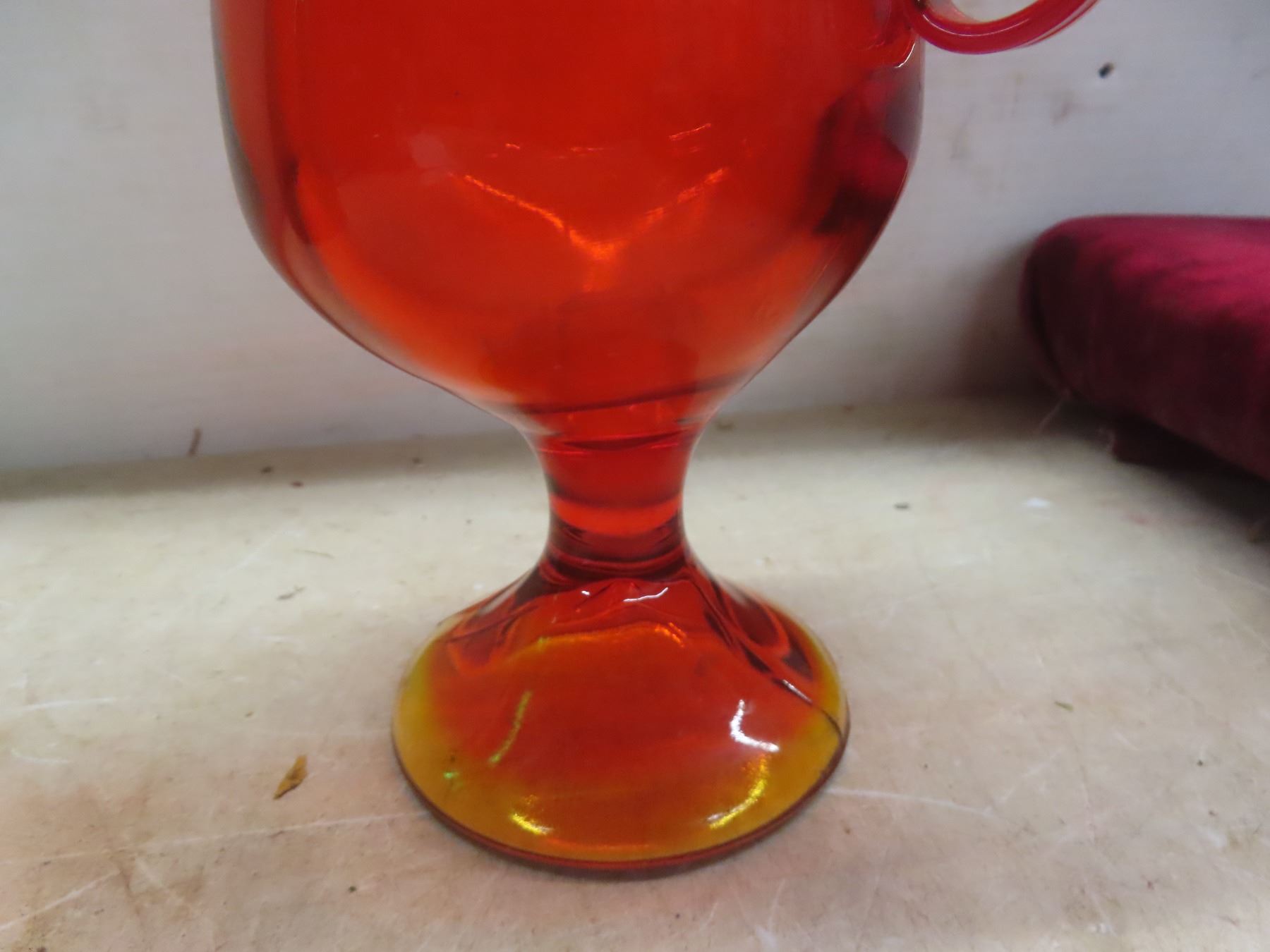 Vintage Emerald-Green Genie-Bottle Decanter And Amberina Stretch Art-Glass Pitcher.