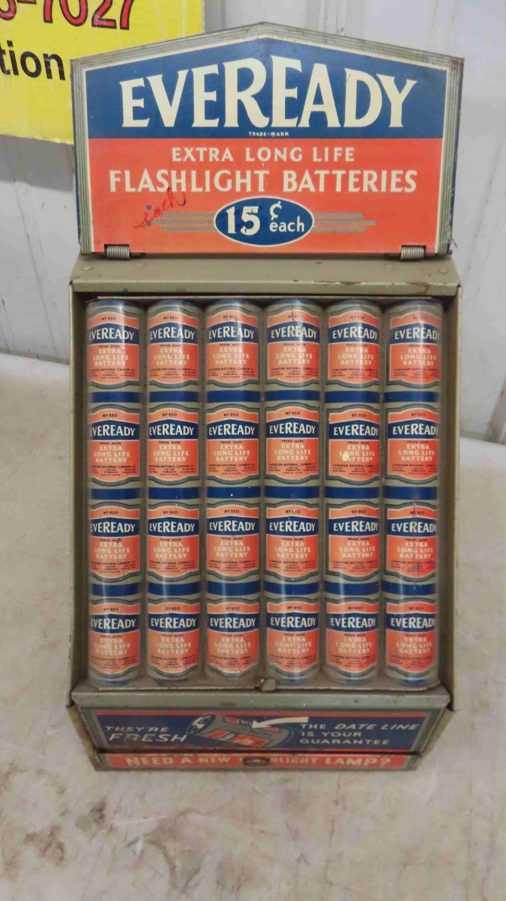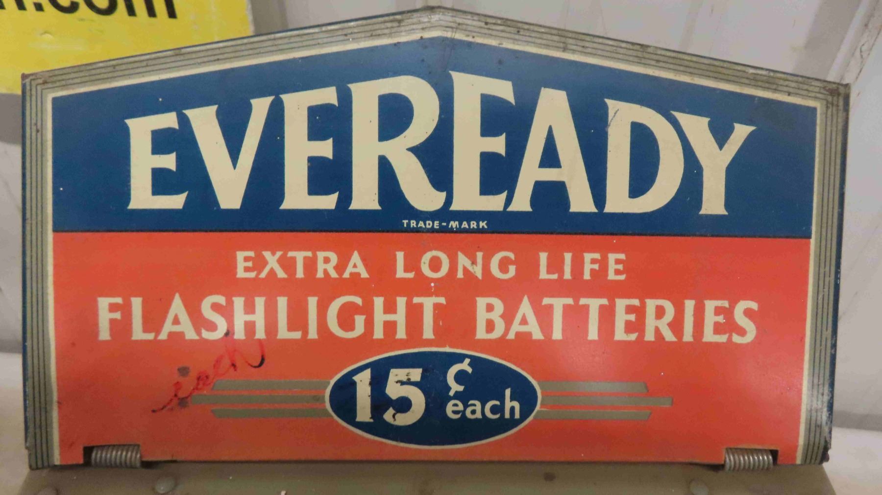 Vintage Eveready Battery Metal Display 11 1/4'' Tapers to 2 1/2'' x 15 1/2''