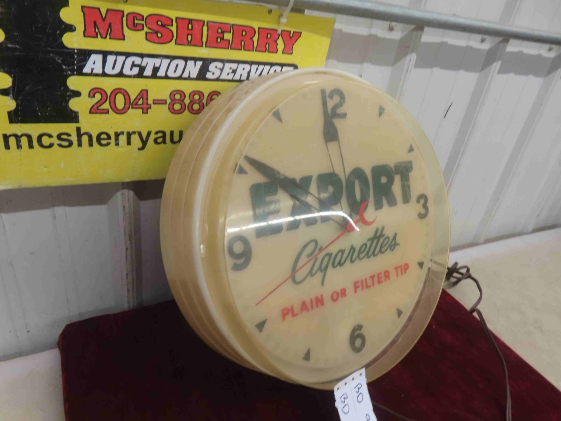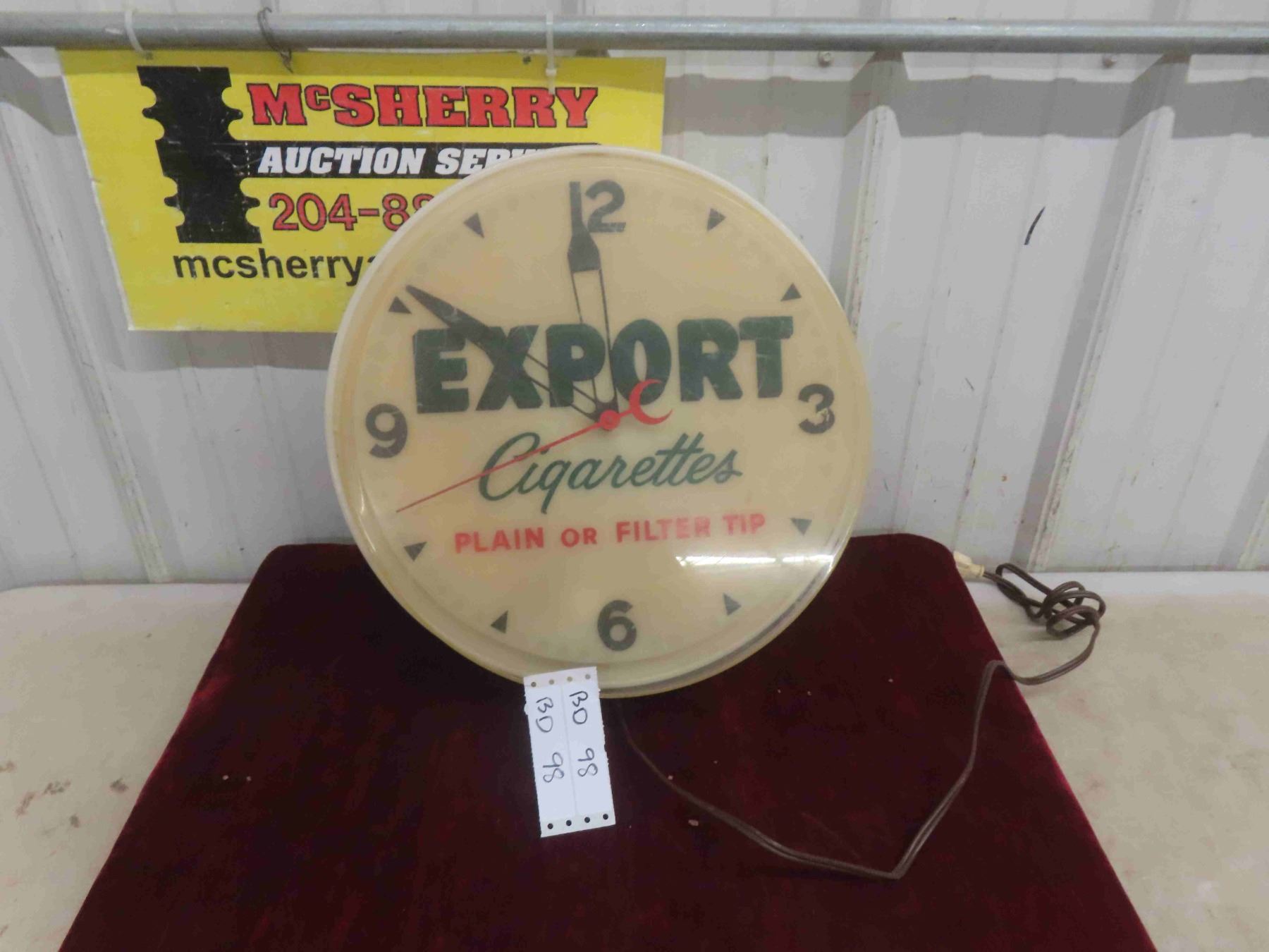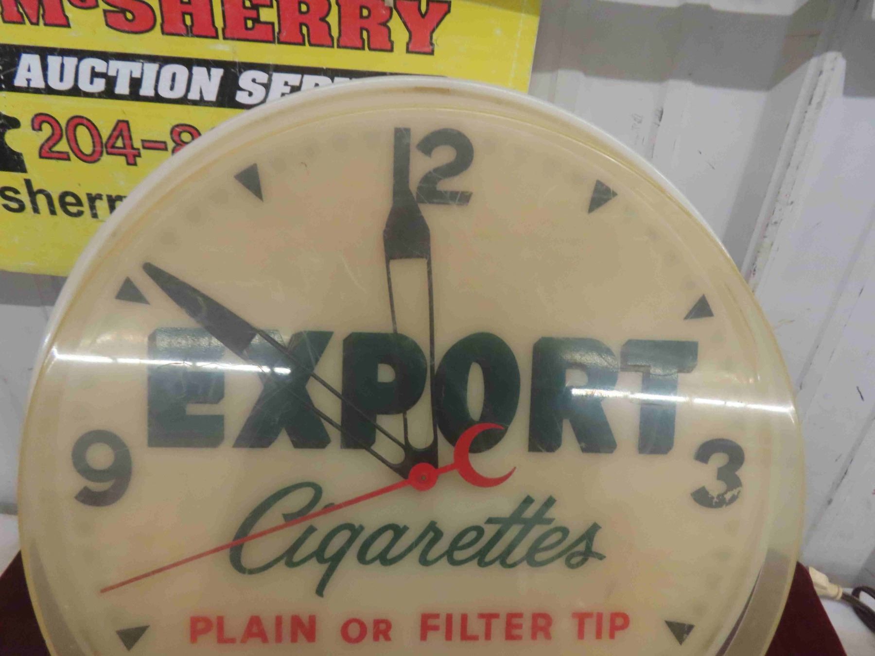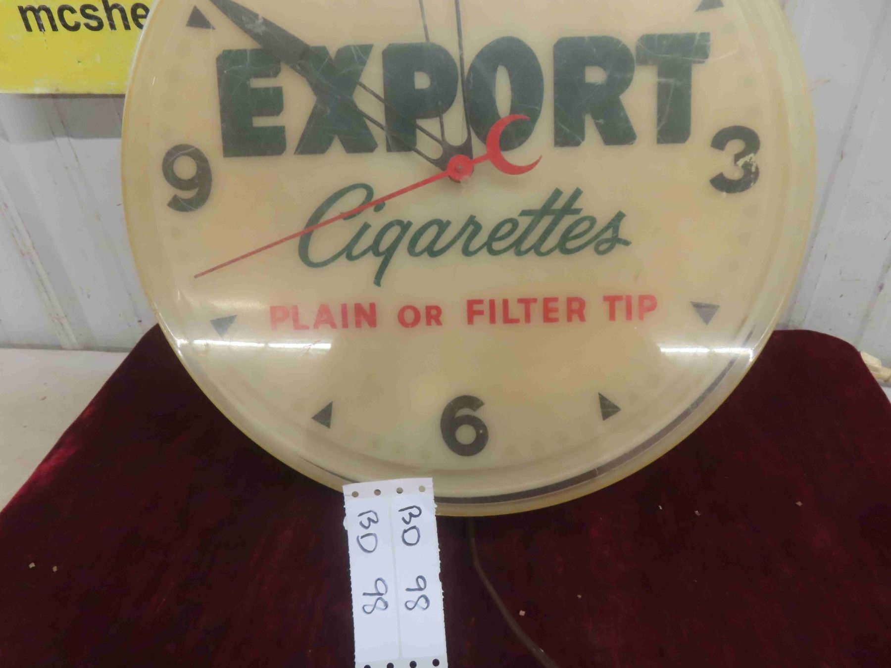 Vintage Export Cigarettes Advertising Wall Clock 15'' Diameter, Works!