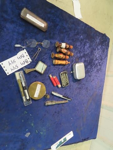Vintage Eye Glasses w Chain & Button Hook , Compact, Perfume, Fountain Pens, Thimble Plus More!