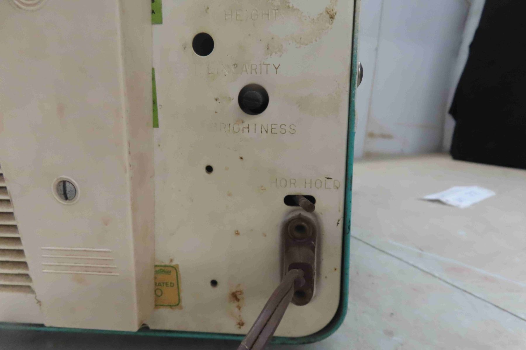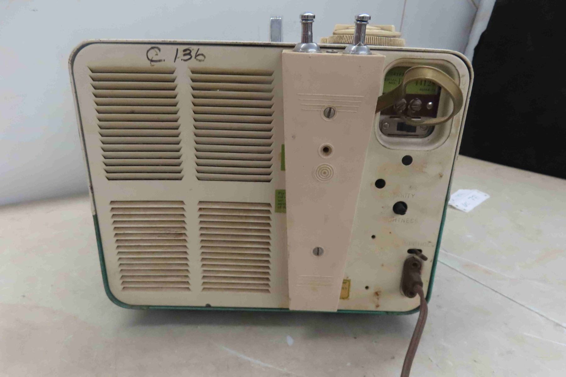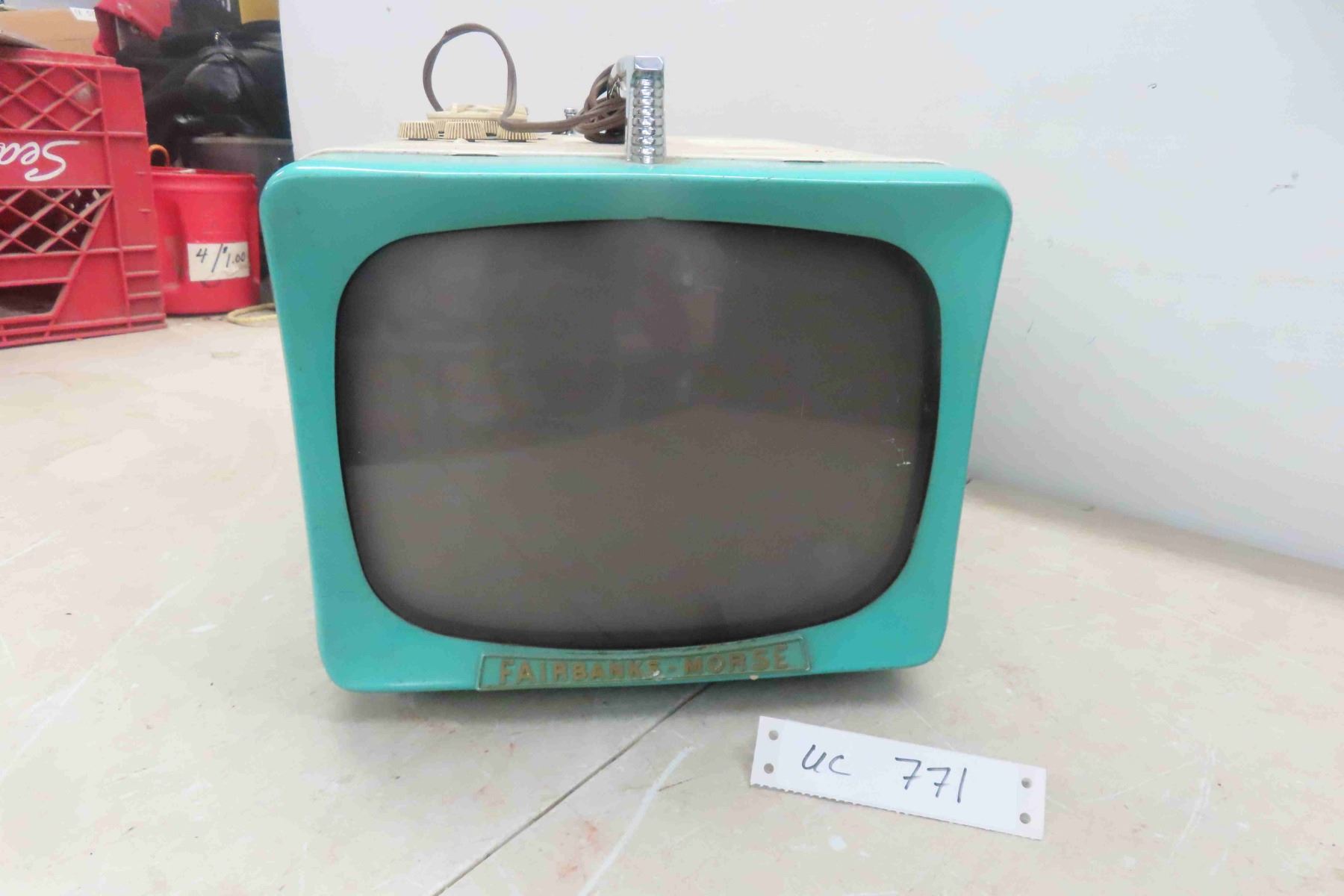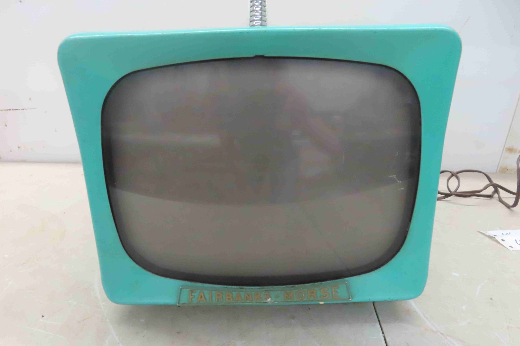 Vintage Fairbanks- Morse Portable TV Aqua + Metal Case Cord Needs Repair