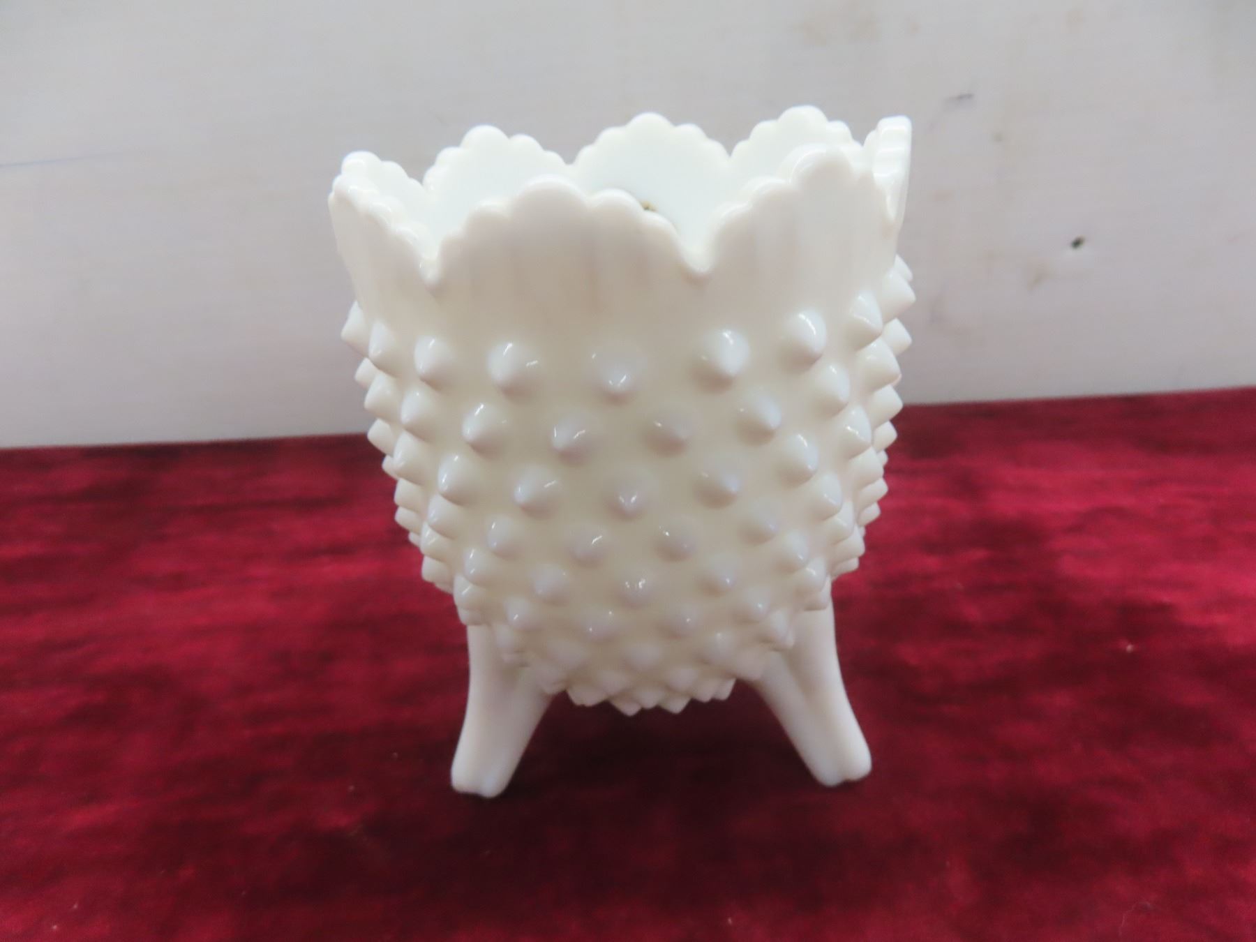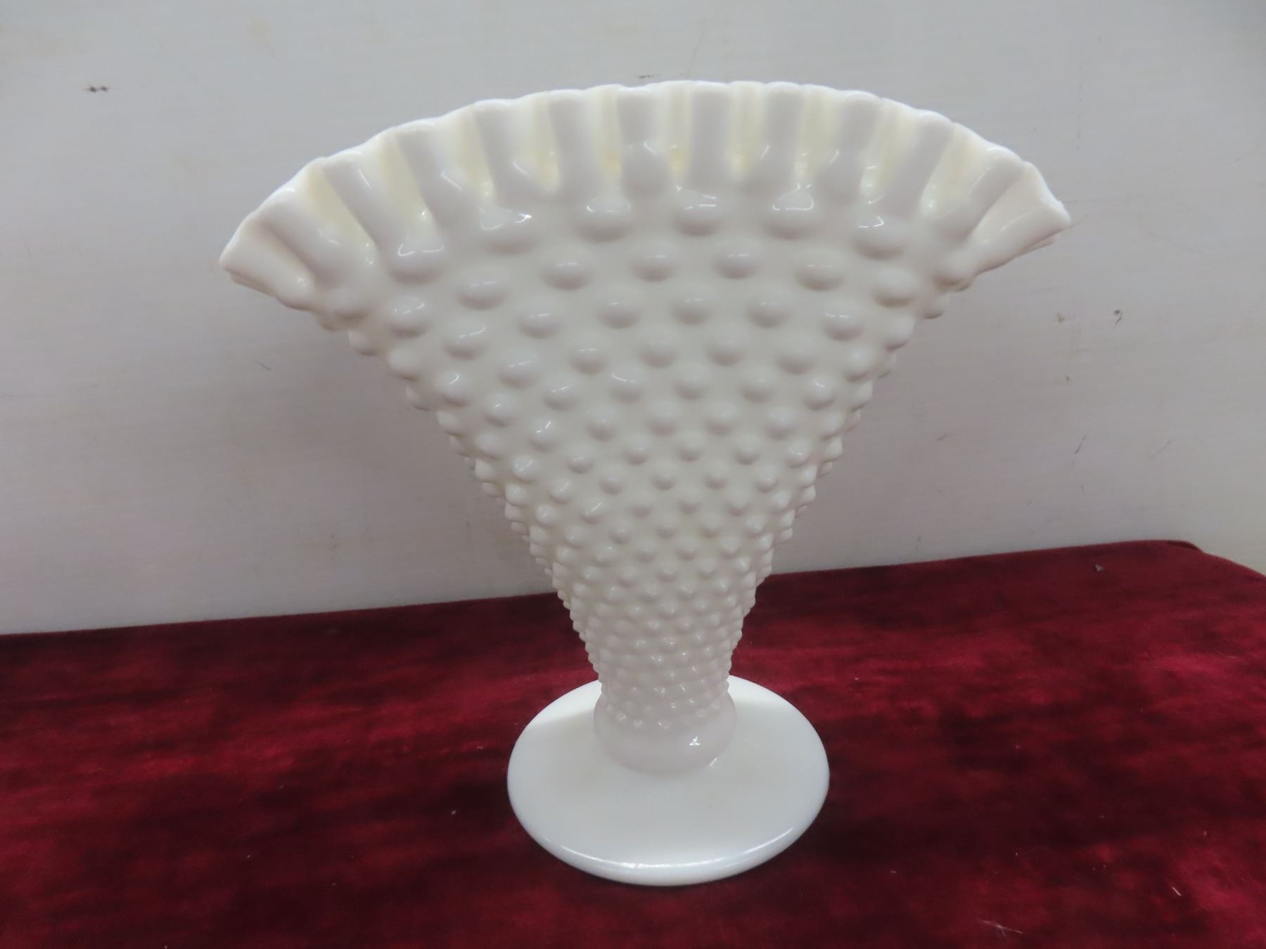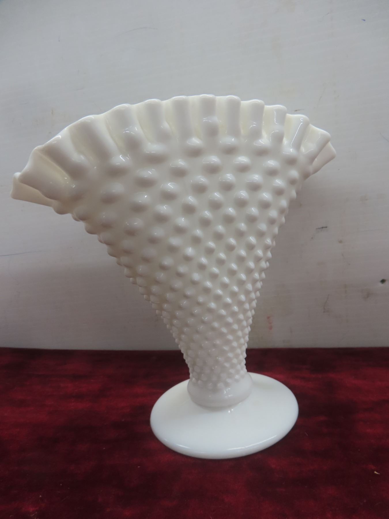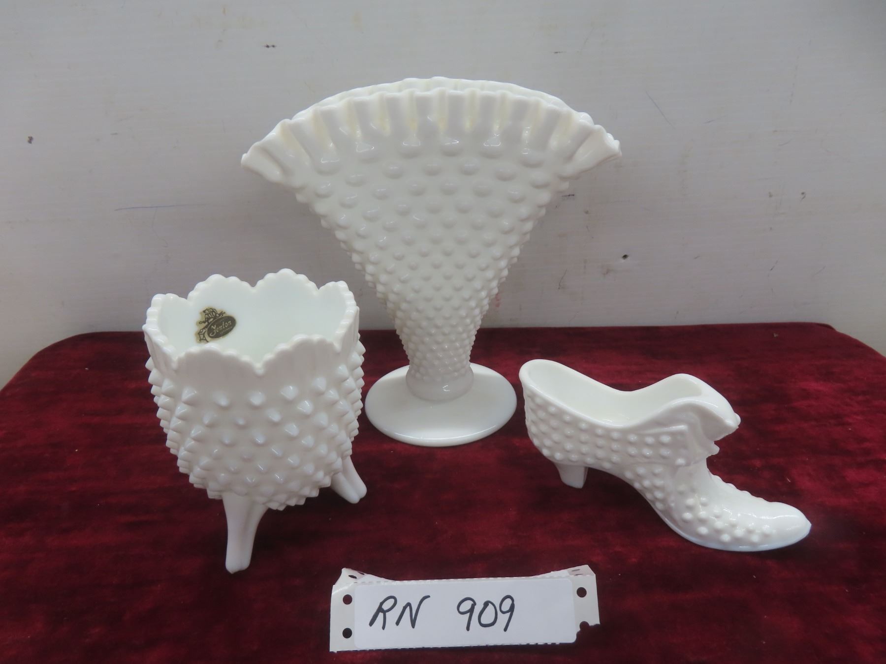 Vintage Fenton Hobnail Milk Glass, Fan Vase, Egg Shaped Footed Vase & Shoe