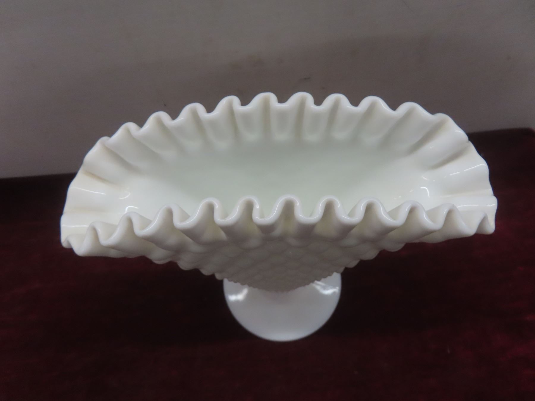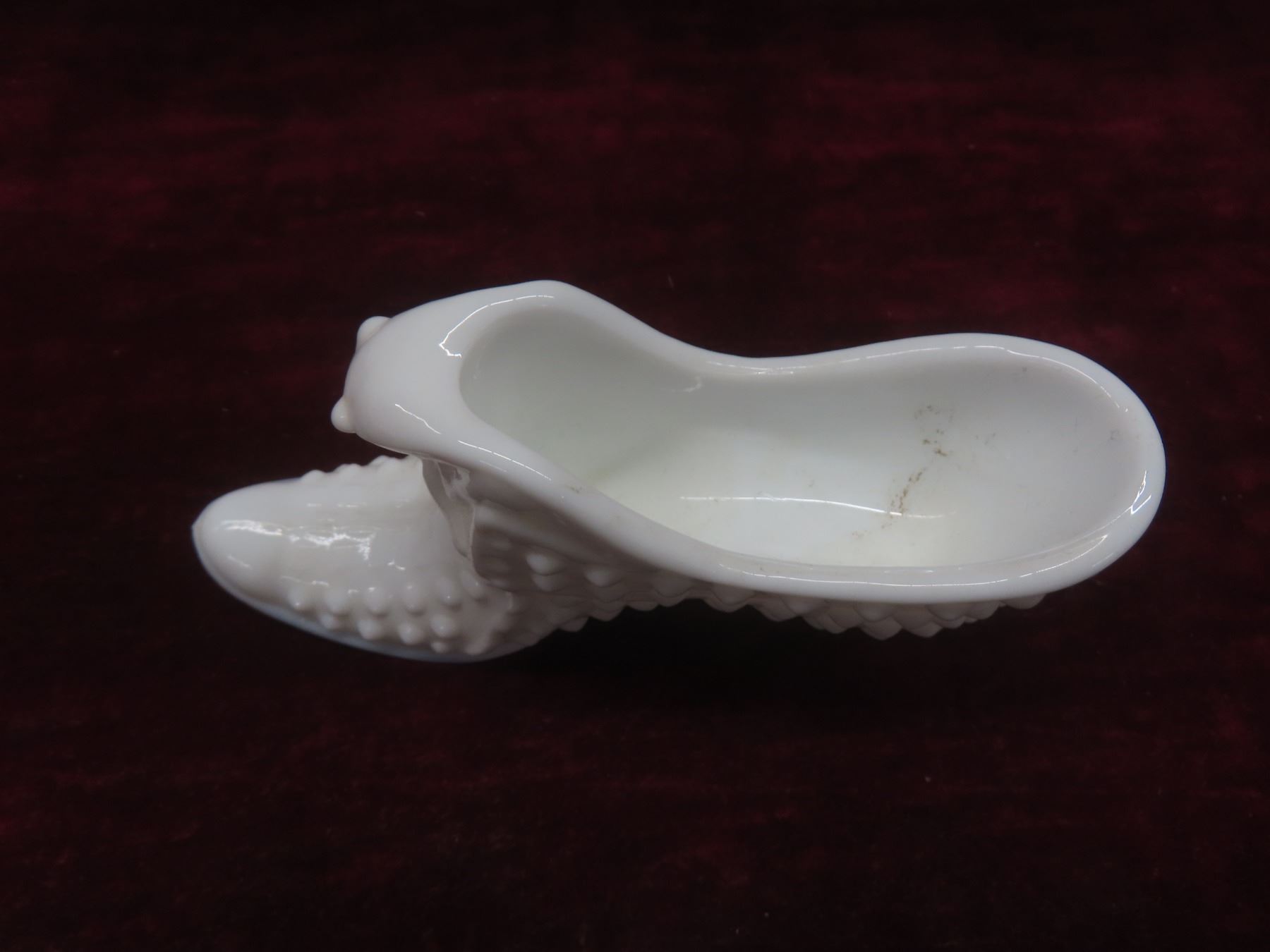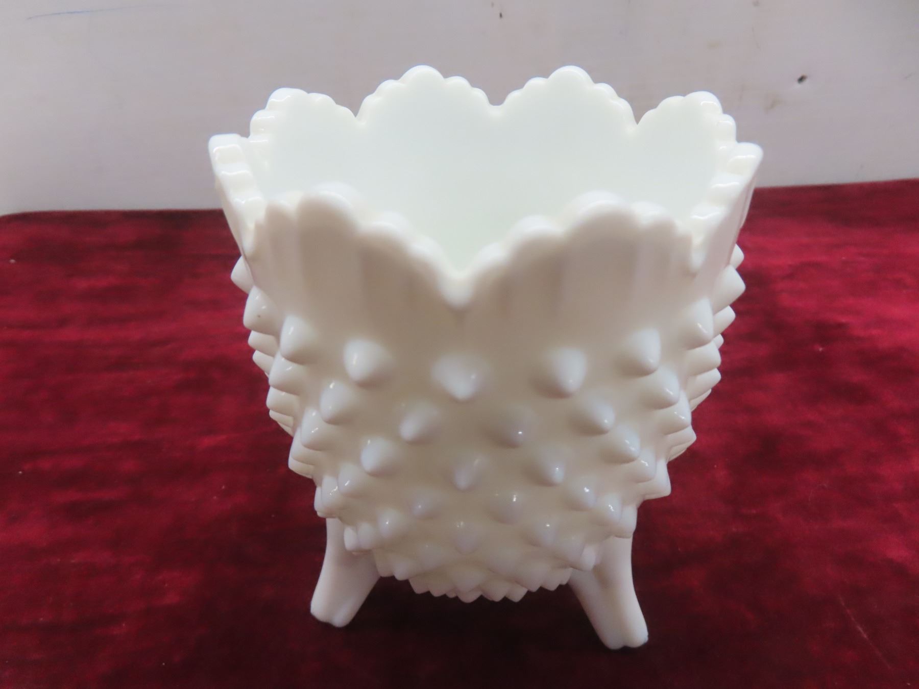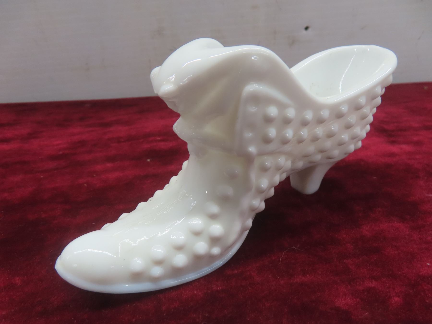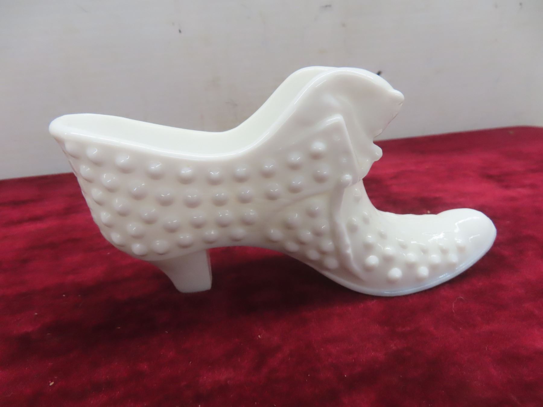 Vintage Fenton Hobnail Milk Glass, Fan Vase, Egg Shaped Footed Vase & Shoe