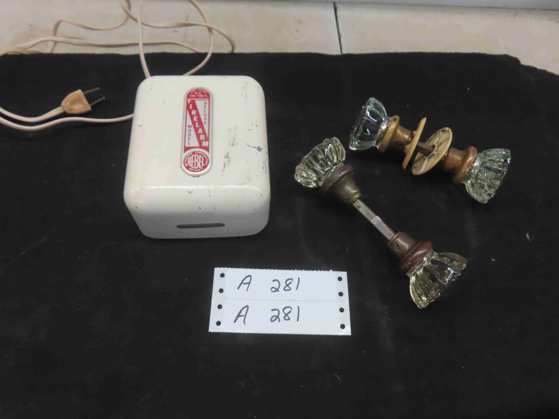 Vintage Fire Alarm, 2 Glass Door Knobs
