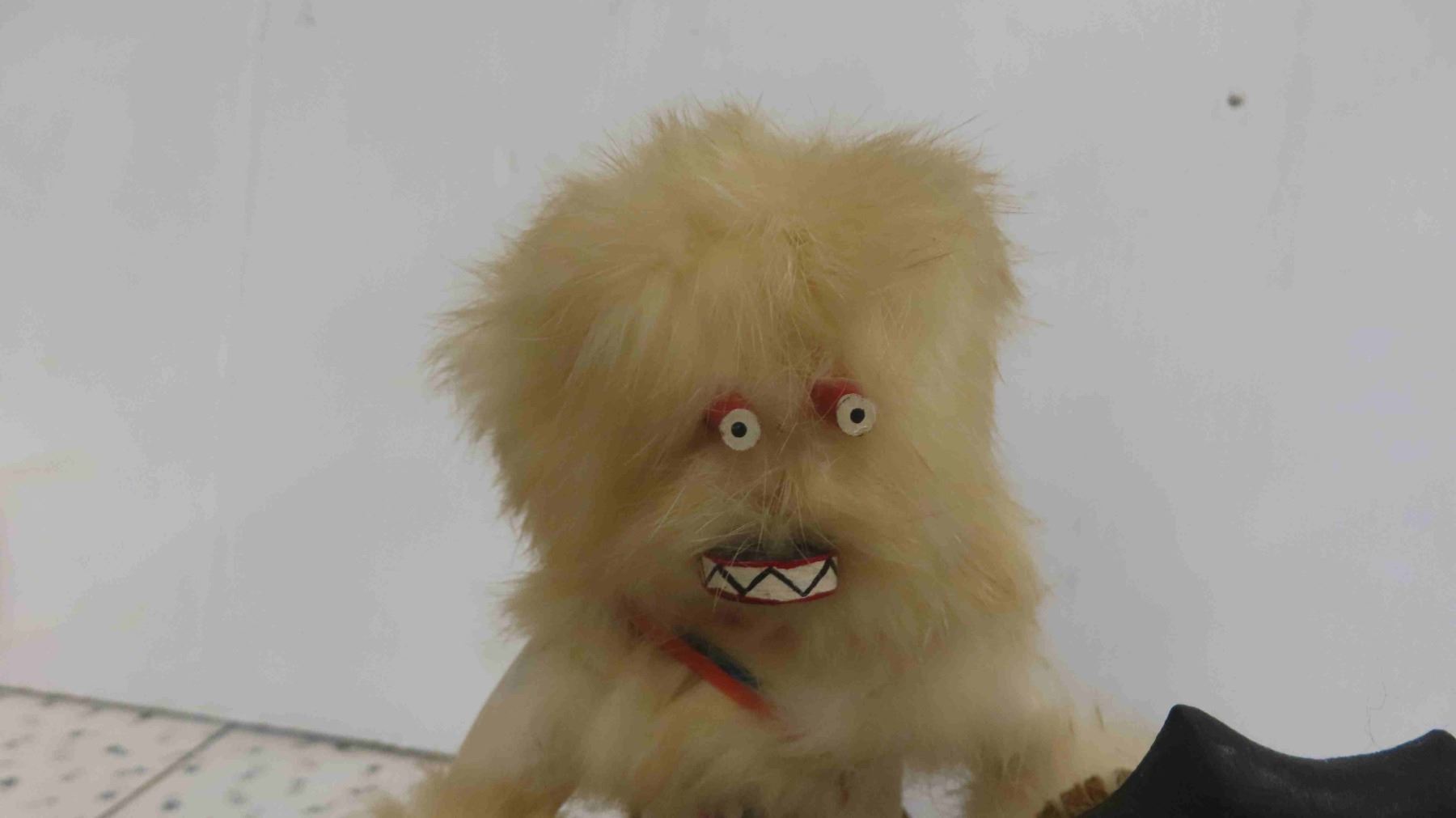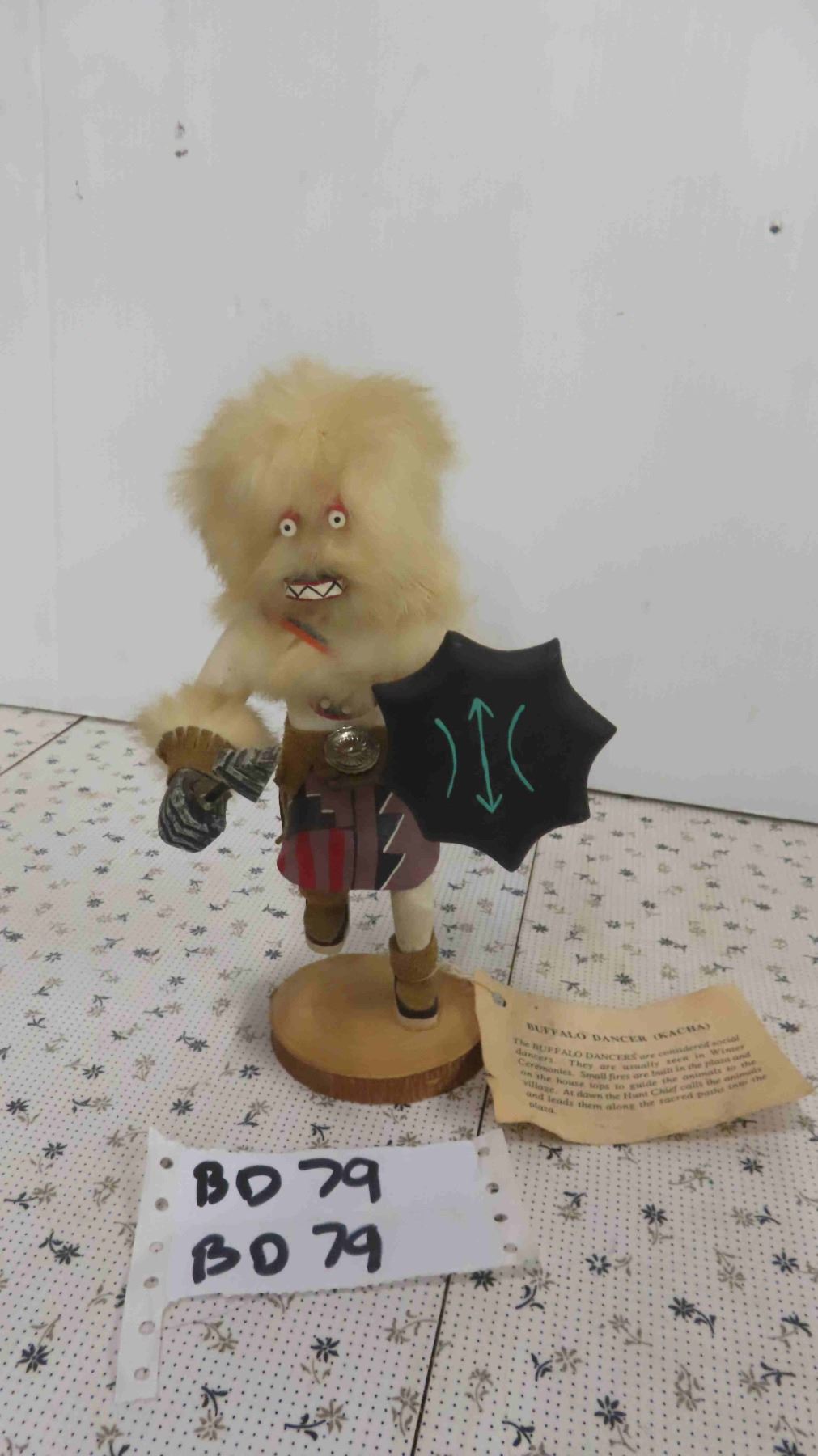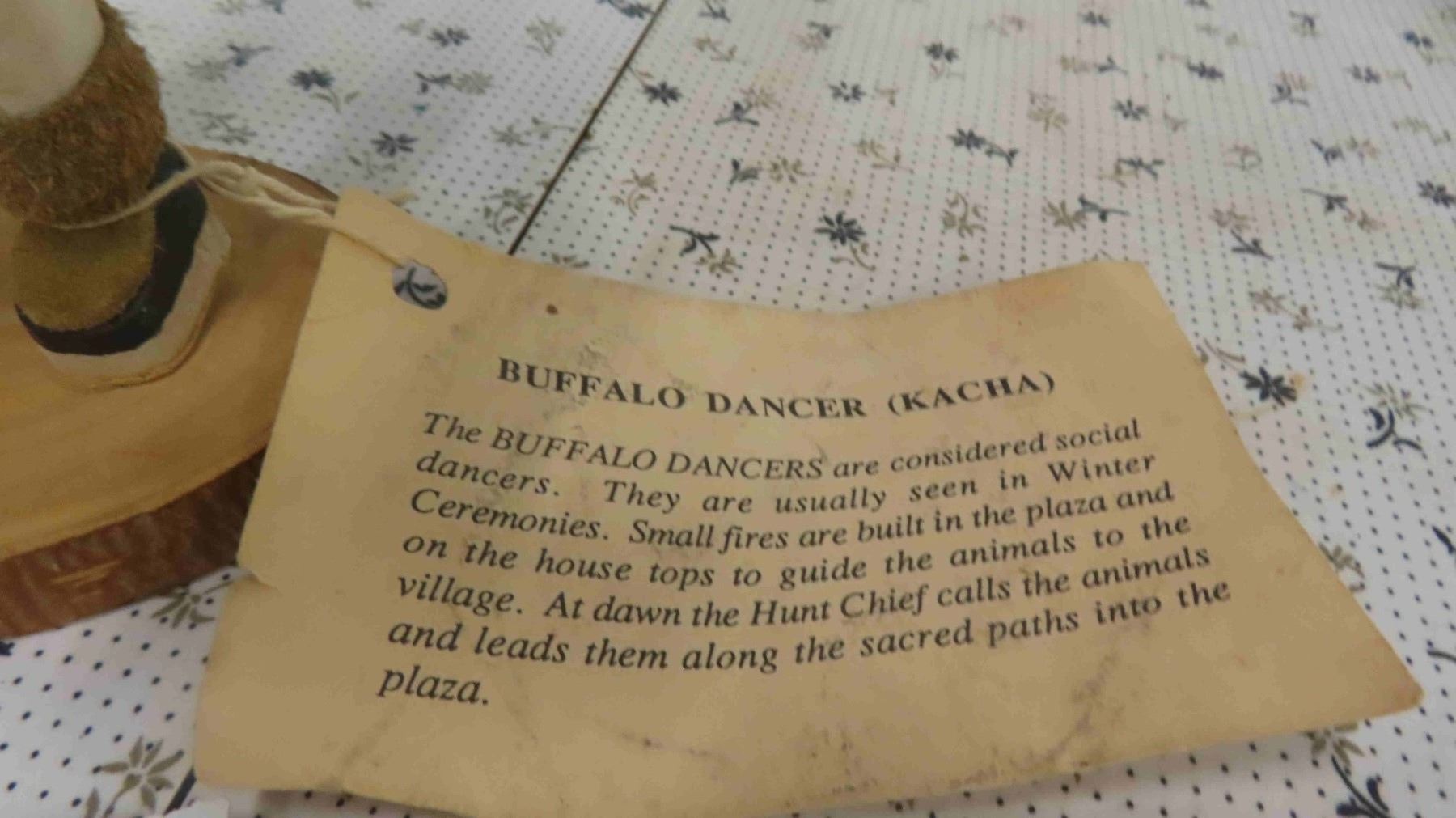 Vintage First Nations Carved Wood Buffalo Dancer Figure 9'' Tall with Weapons - Fur, Leather & Wood Construction, Has Original Tag