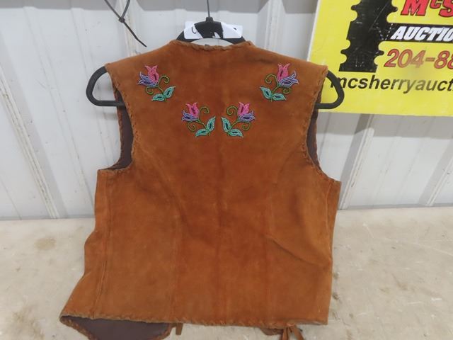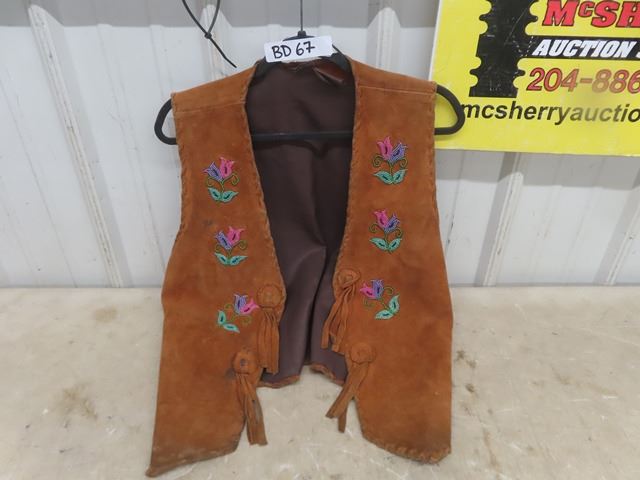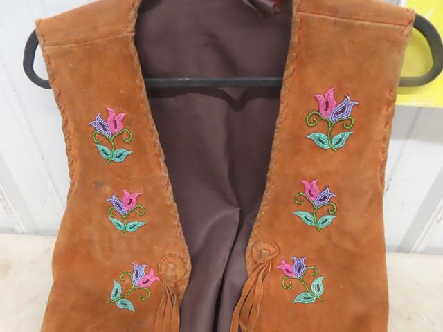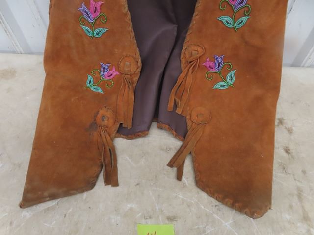 Vintage First Nations Cree Beaded Leather Vet - Seems to be Sz Med - Edges are Nicely Laced - Very good Condition