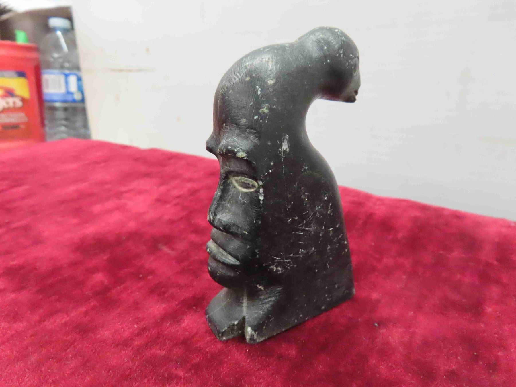 Vintage First Nations Inuit Spirit Soapstone Carving Signed in Inuit Script 4'' Tall