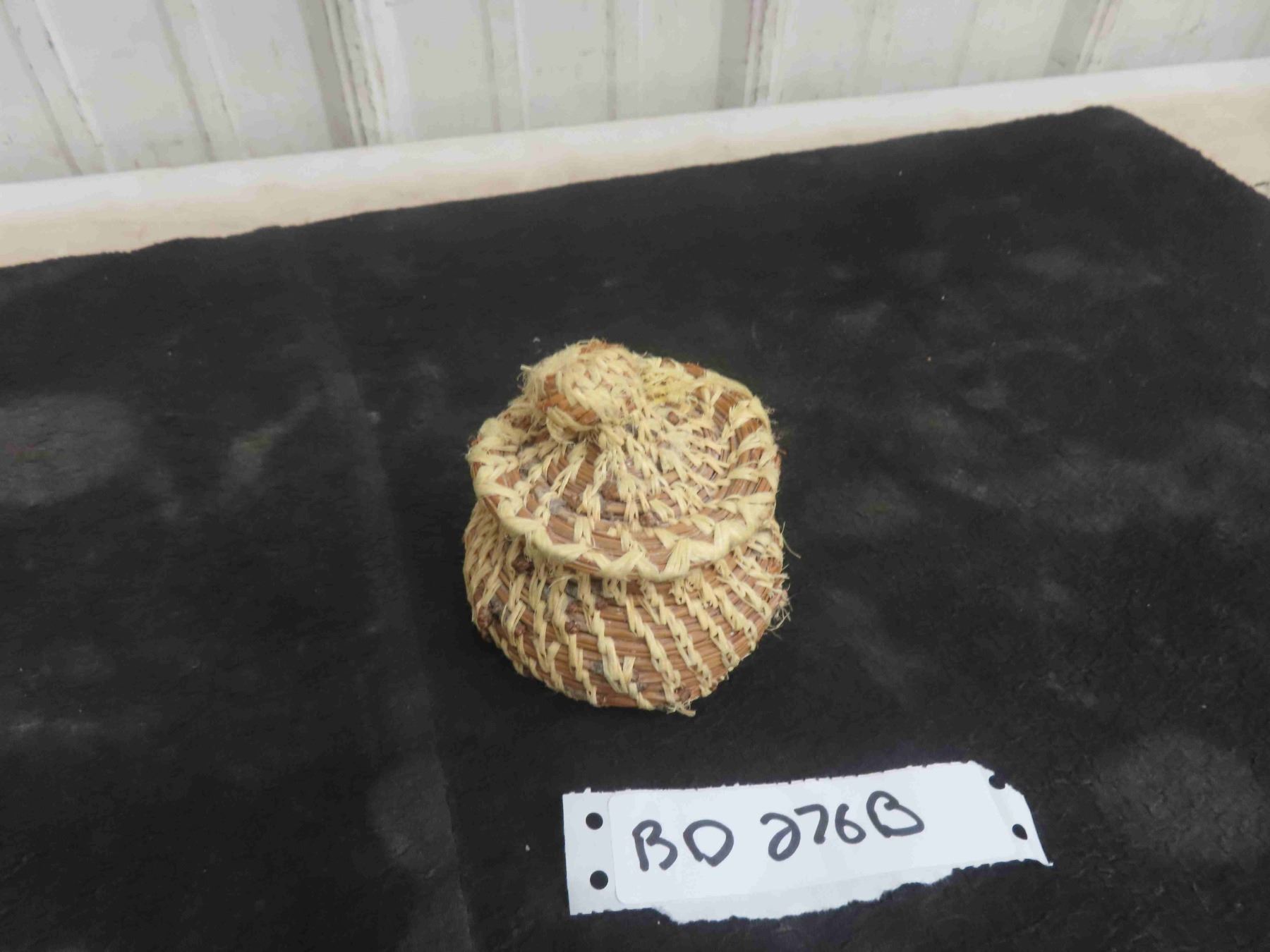 Vintage First Nations Native Woven Pine Needle Lidded Basket. Small