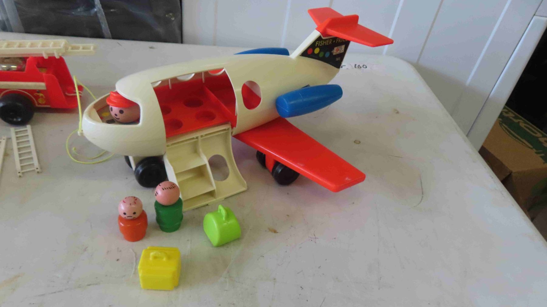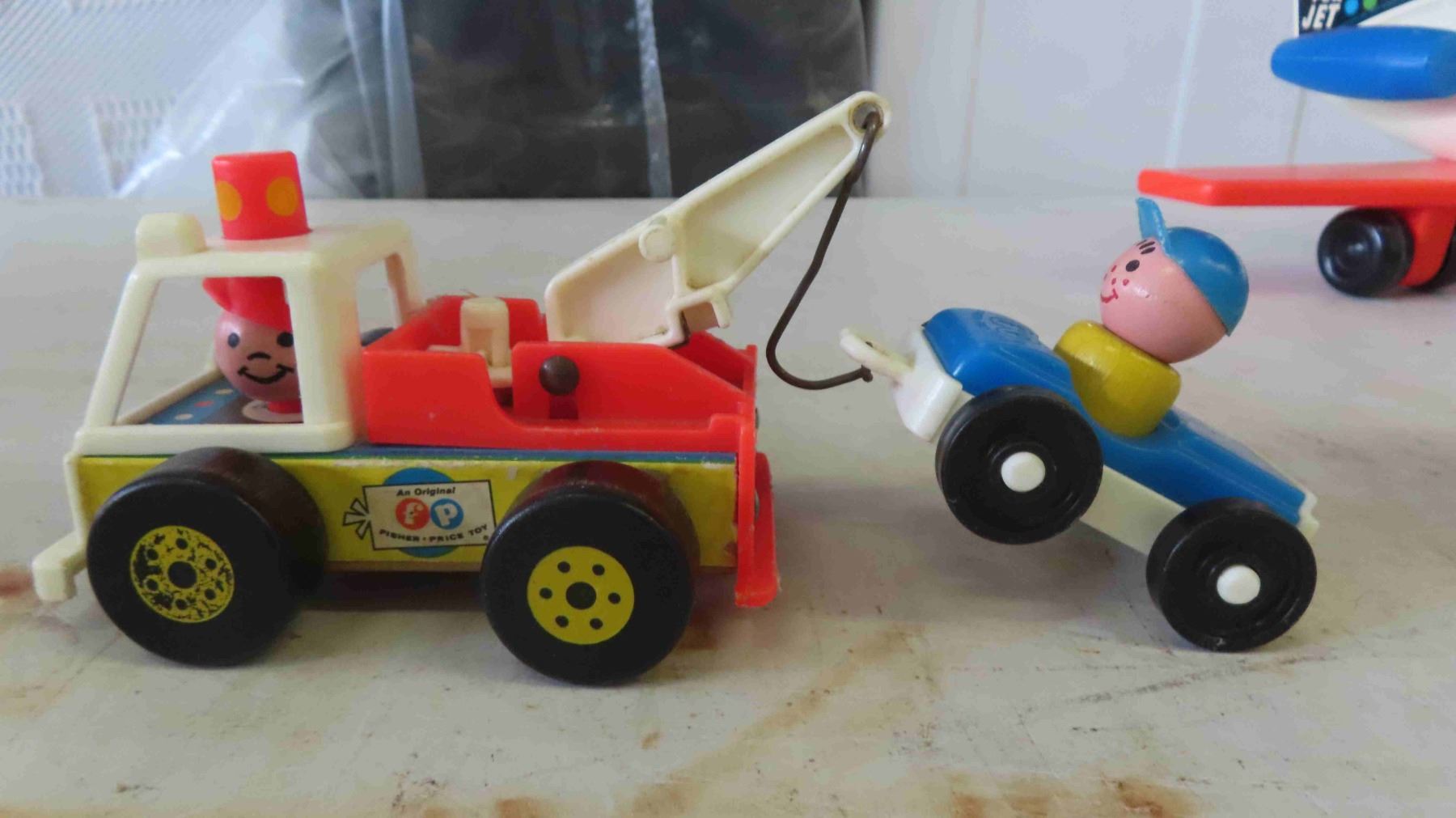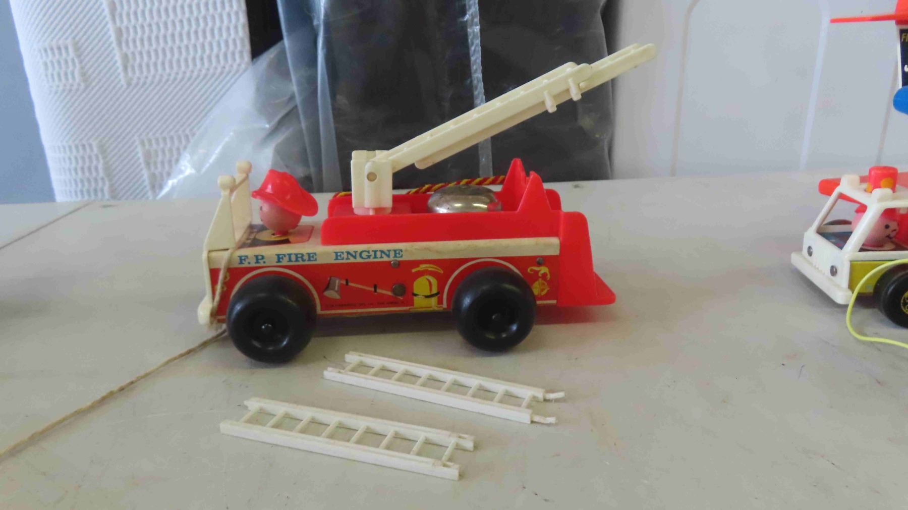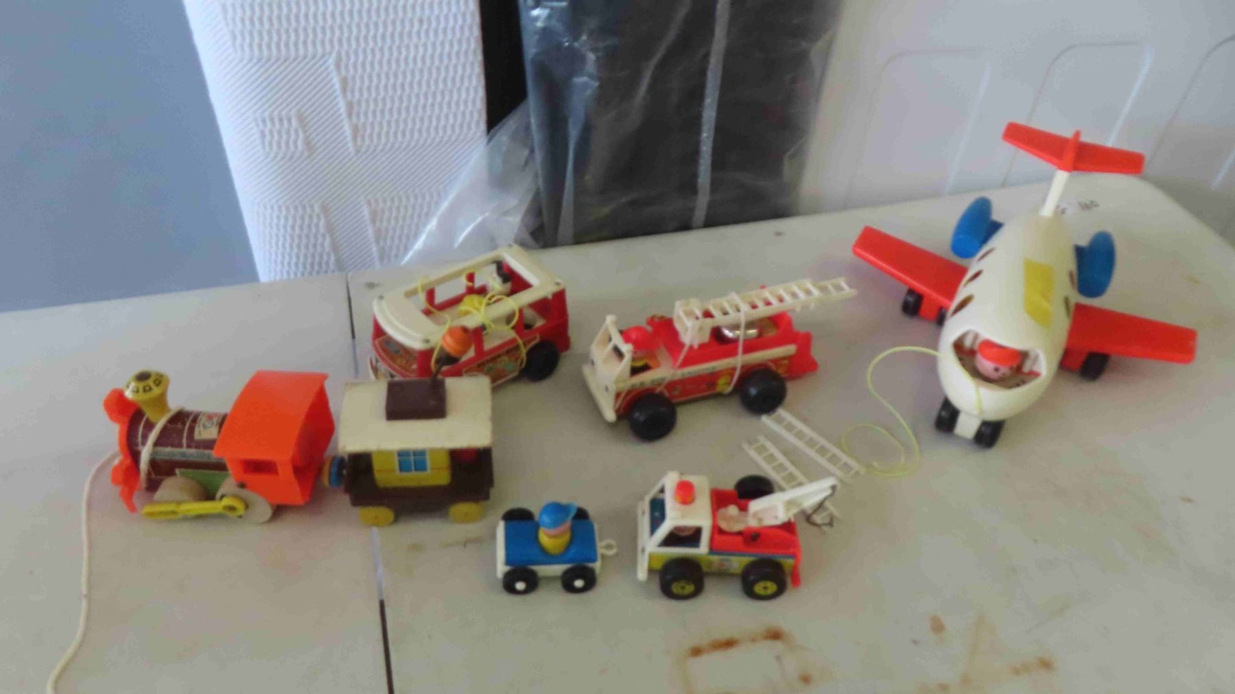 Vintage Fisher Price Toys : Train with Car, Mini Bus, Firetruck, Airplane, Tow Truck