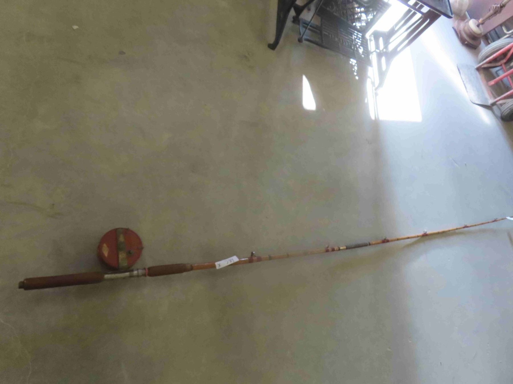 Vintage Fishing Rod 100" Long, Pertz + Sam Reel