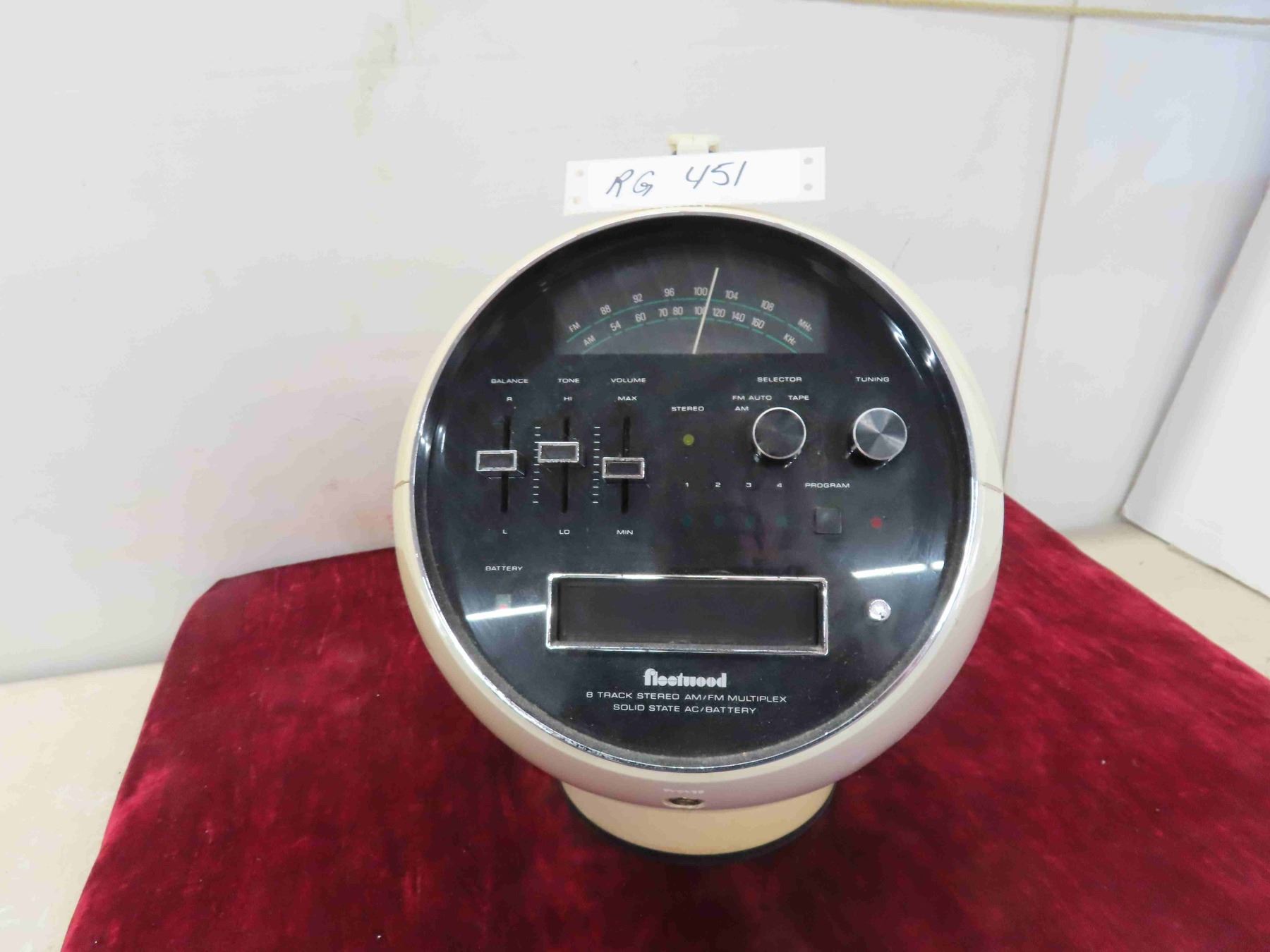 Vintage Fleetwood Space-Ball 8 Track Stereo. AM/FM Multiplex Solid State Stereo.
