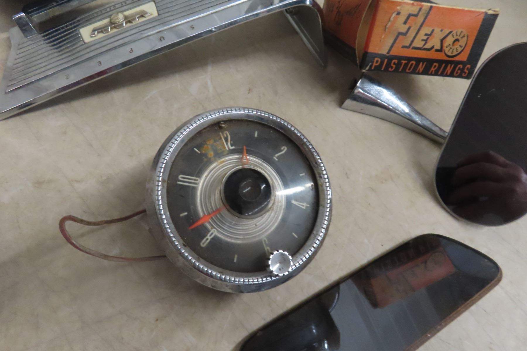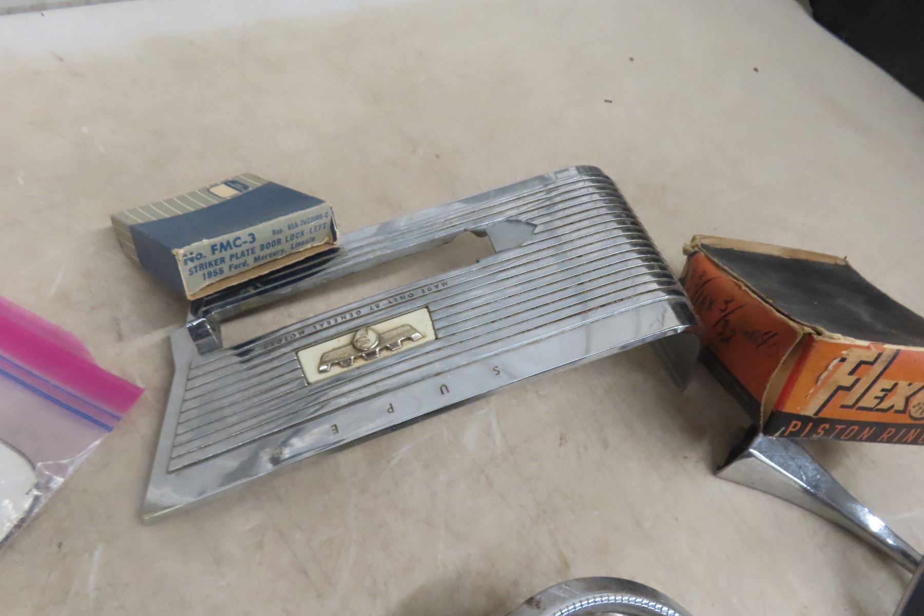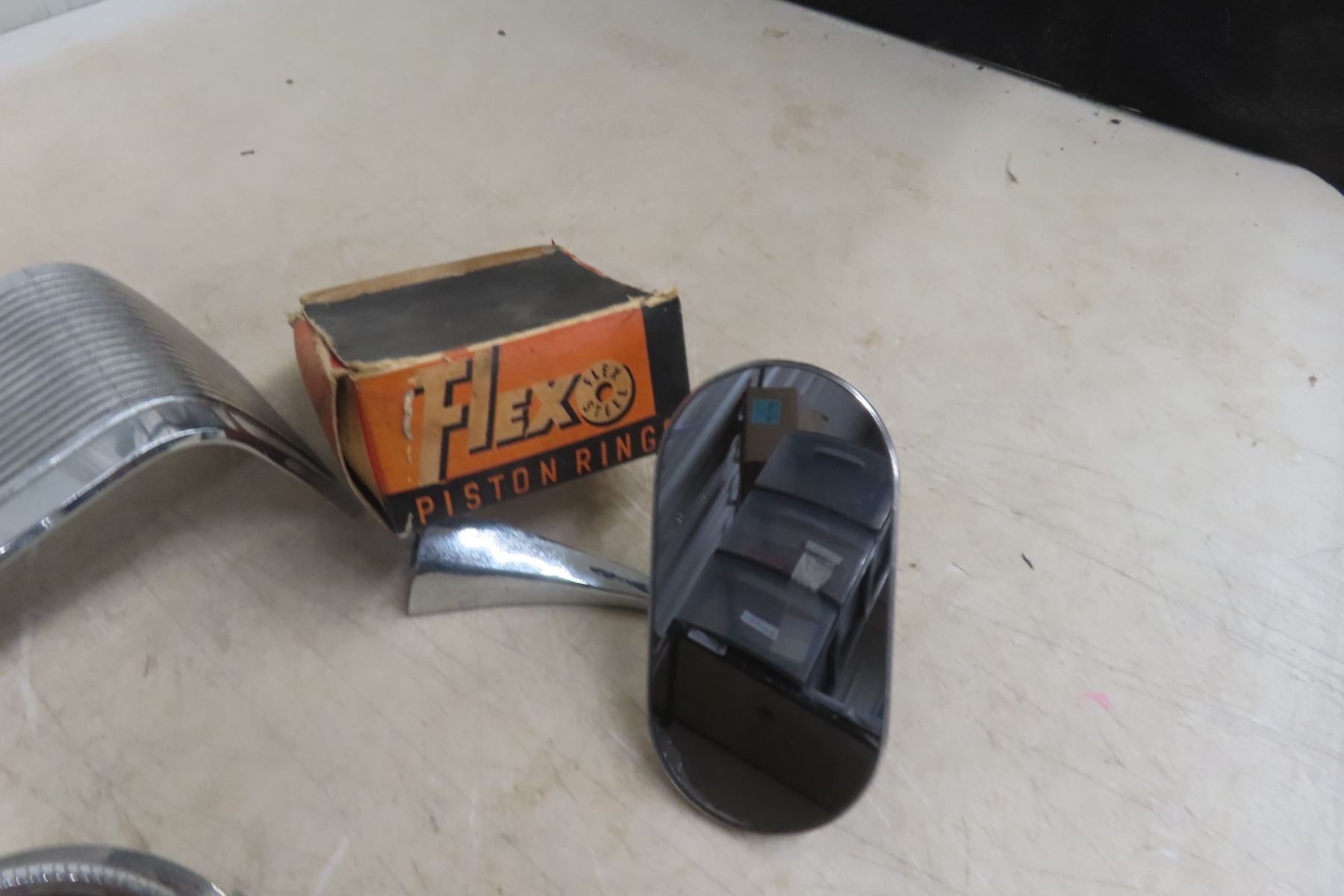 Vintage Flex Piston Rings, New Old Stock, Auto Dash Chrome Trim, Two Pontiac Mirrors and More