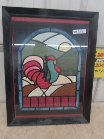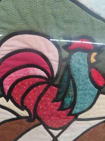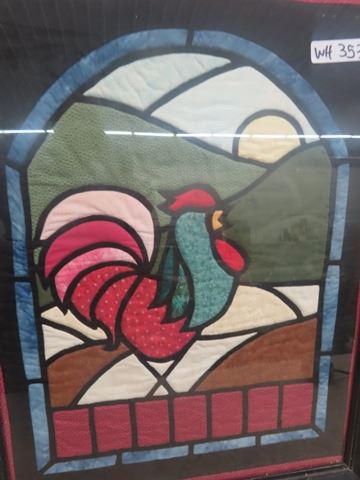 Vintage Framed Quilted Rooster Picture 11" x 30"