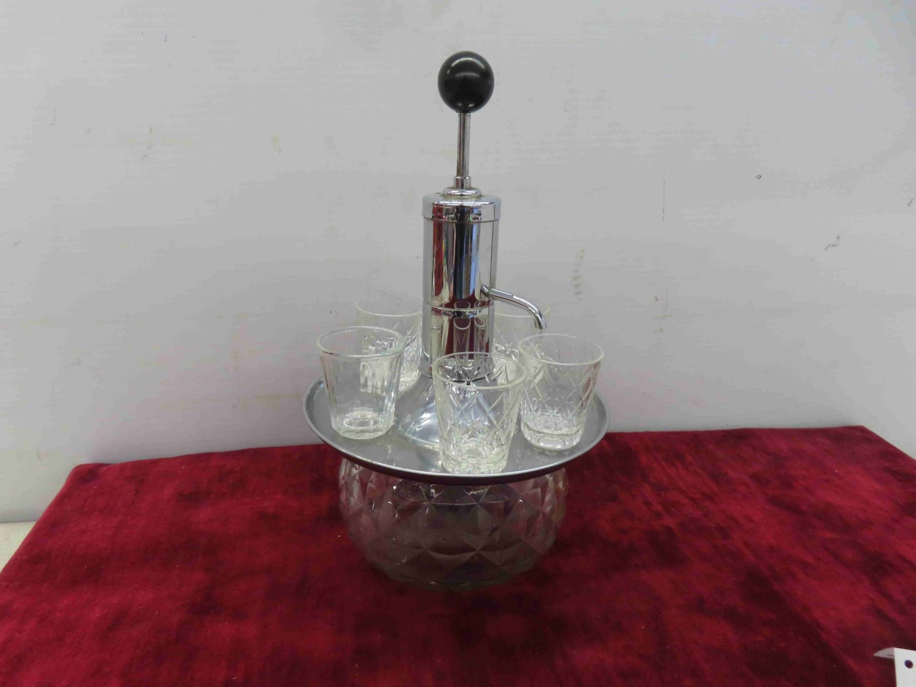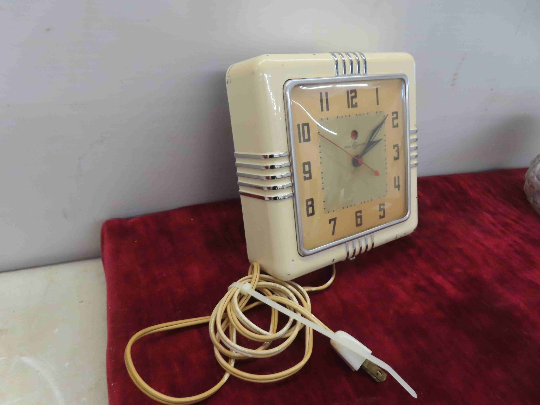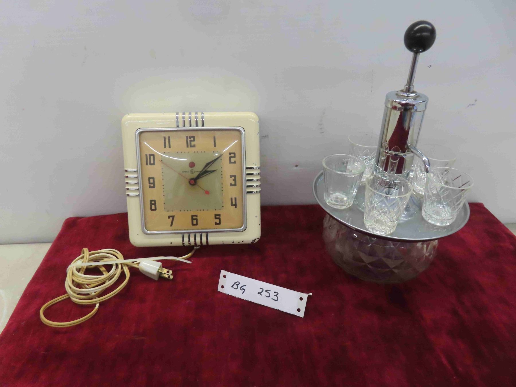 Vintage General Electric Clock, Liquor Dispenser with 5 Shot Glasses