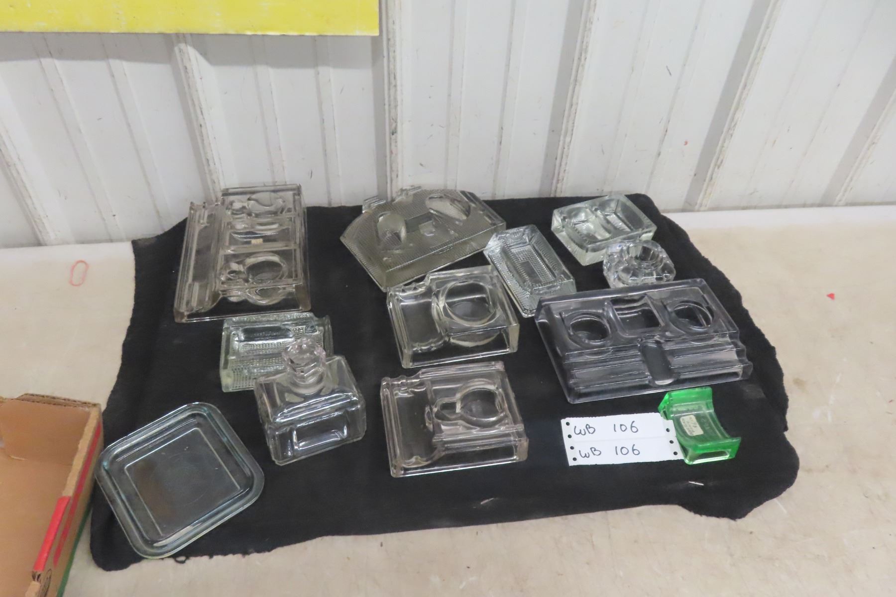 Vintage Glass Ink Wells & 1 Uranium Glass