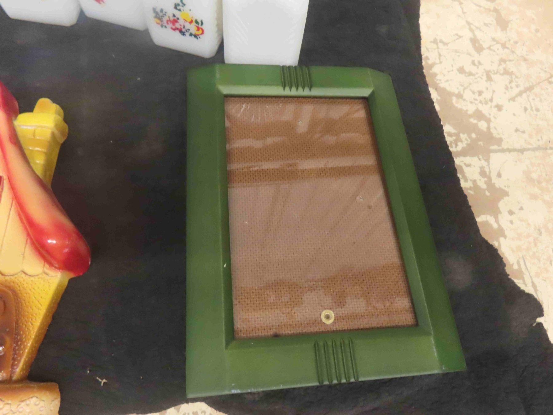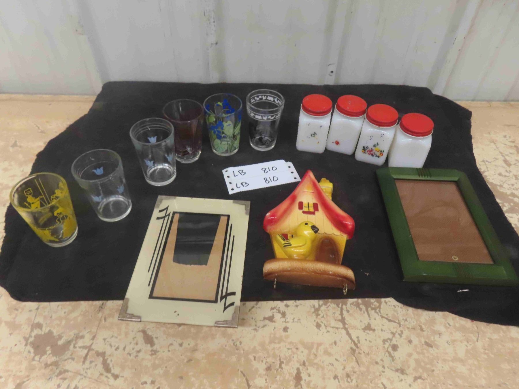 Vintage Glasses, Spice Shakers, Chalkware Key Holder, Art Deco Picture Frame