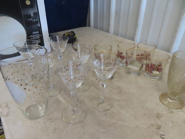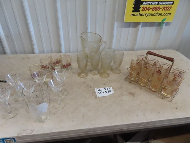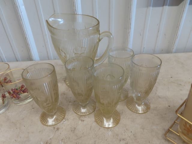 Vintage Glassware & Irish Herringbone Pitcher & Glasses