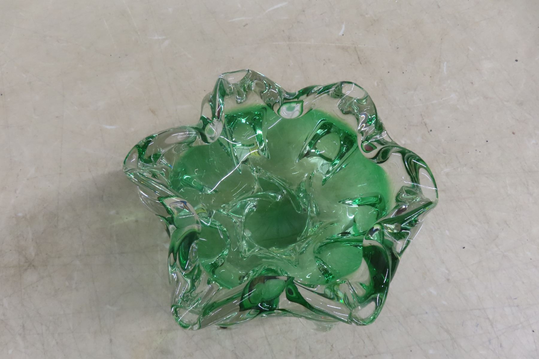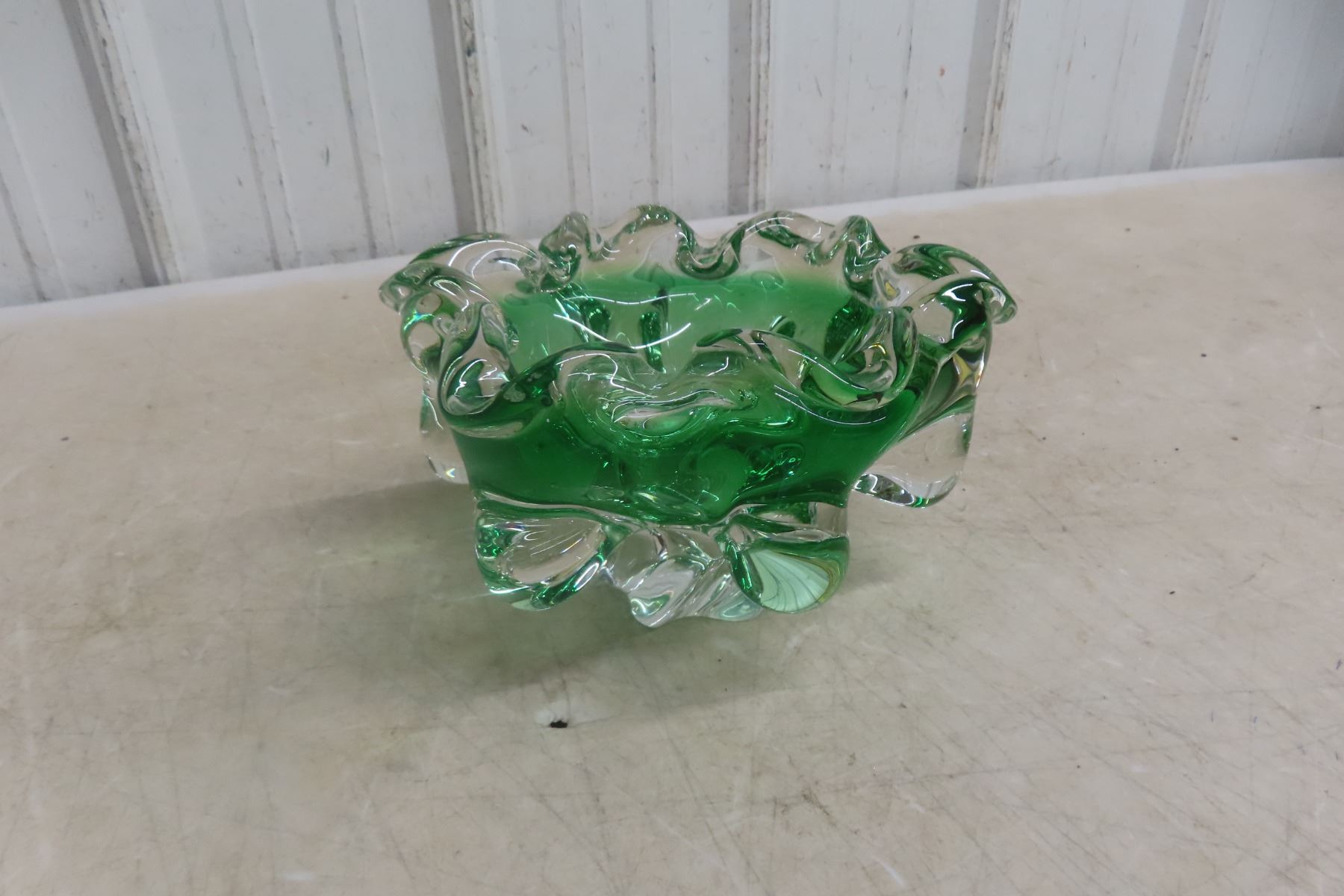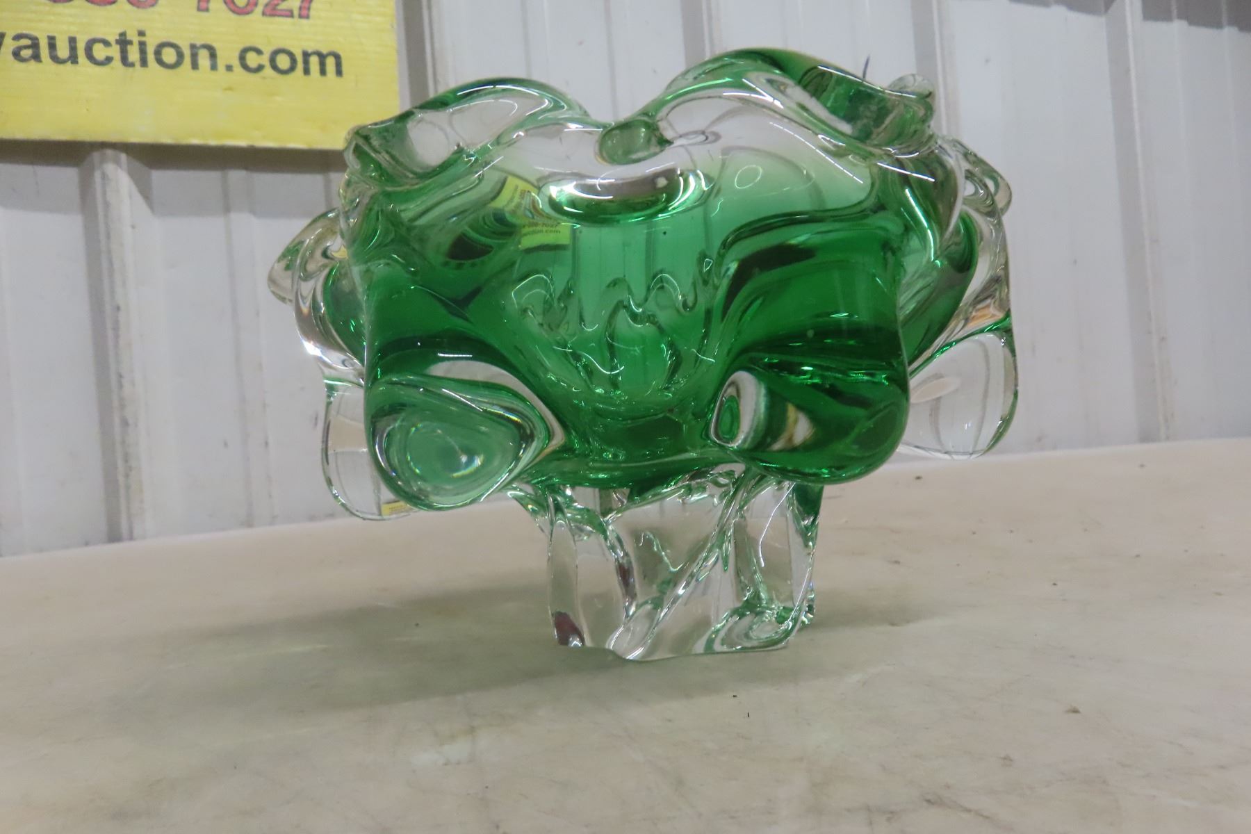 Vintage Green and Clear Crystal Bowl (Art Glass)