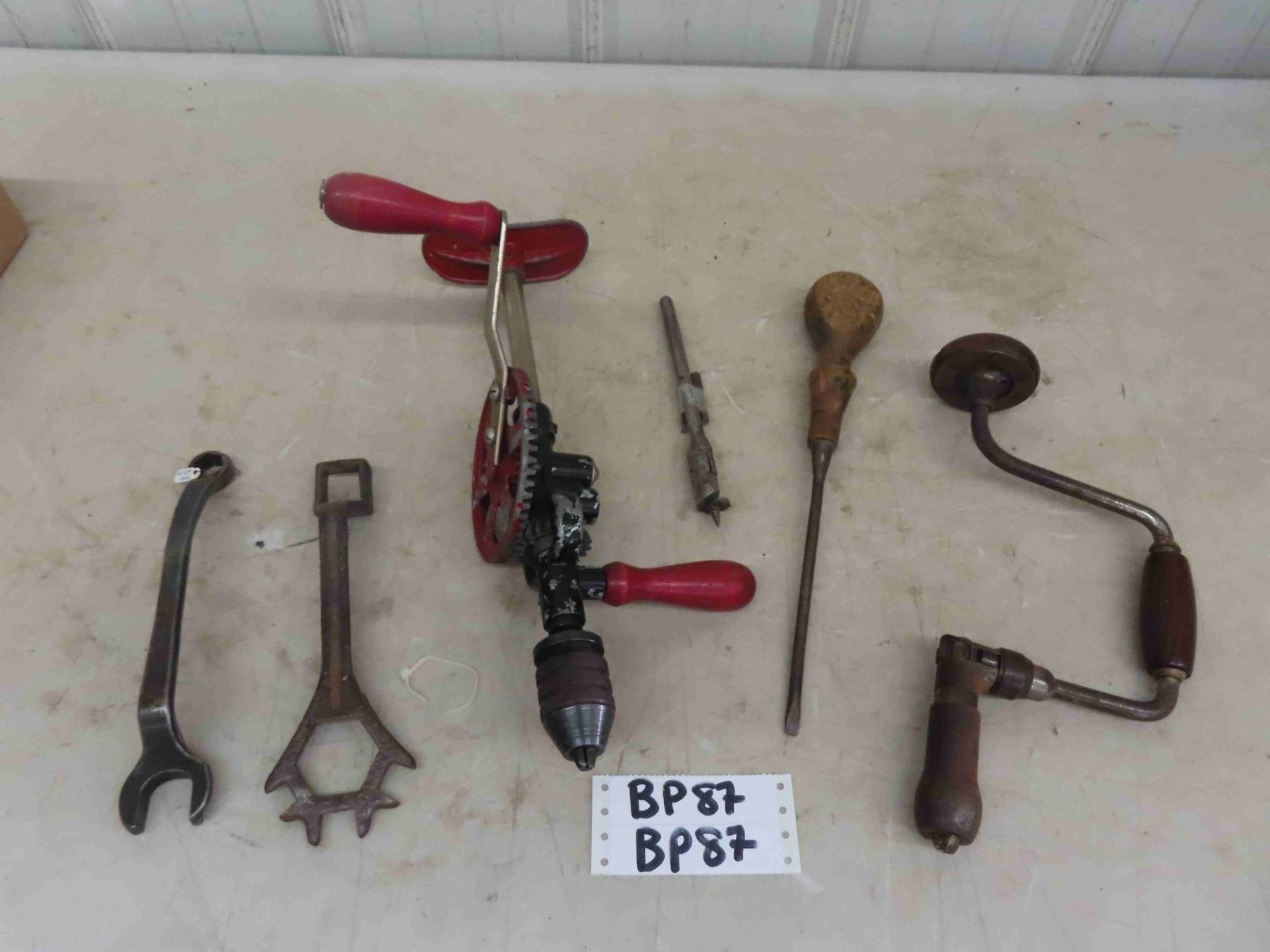 Vintage Hand Drill, Bit Brace, Old Wrenches, plus more