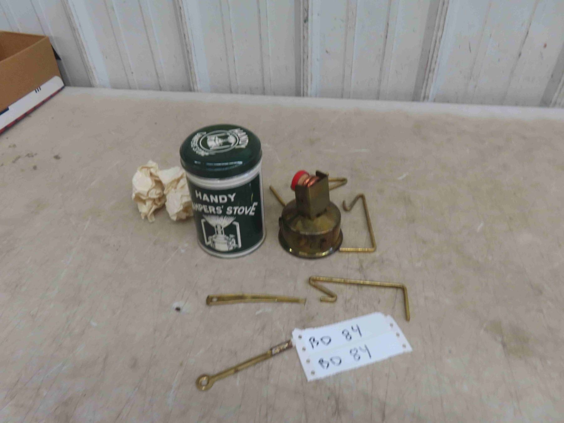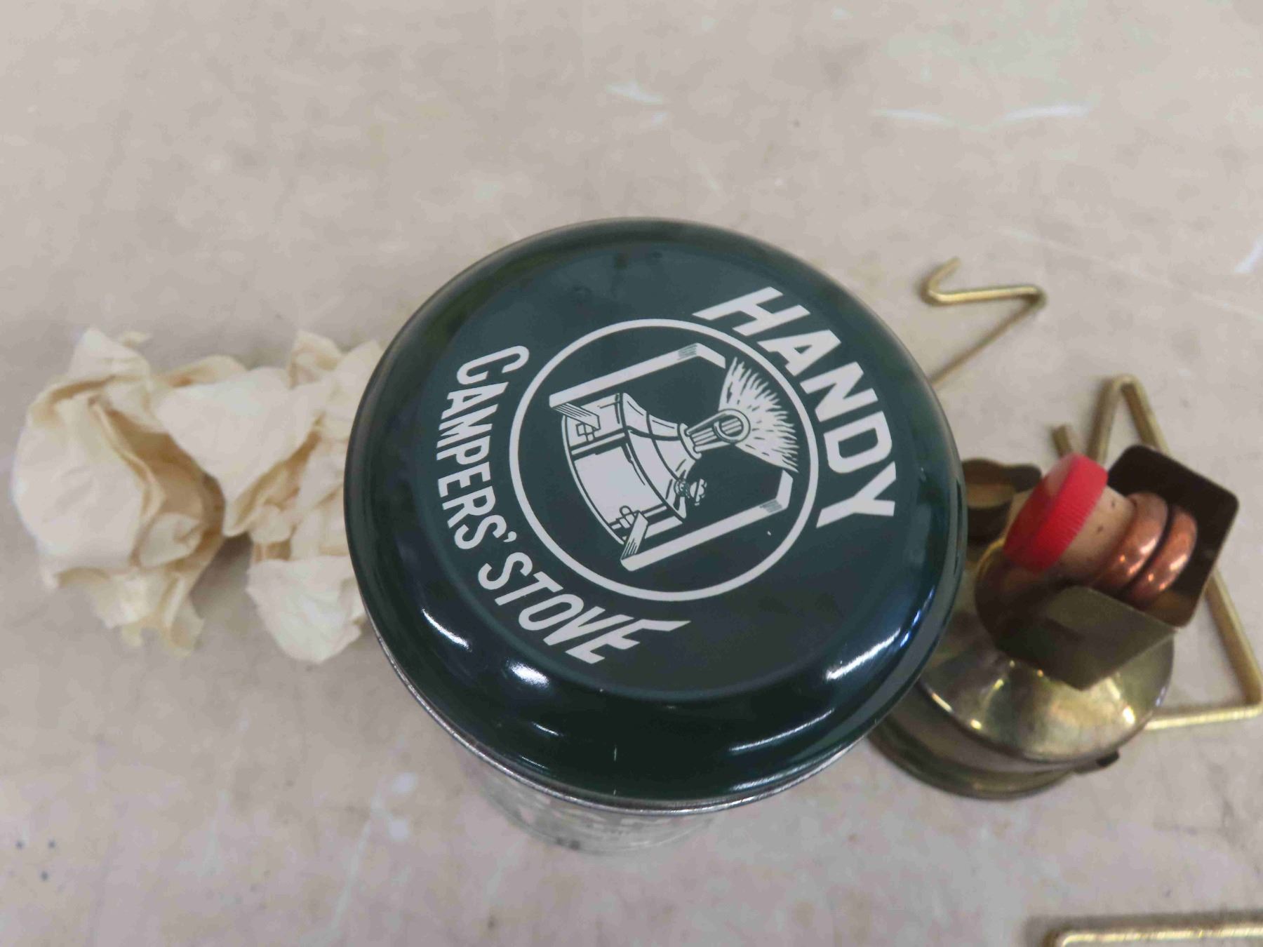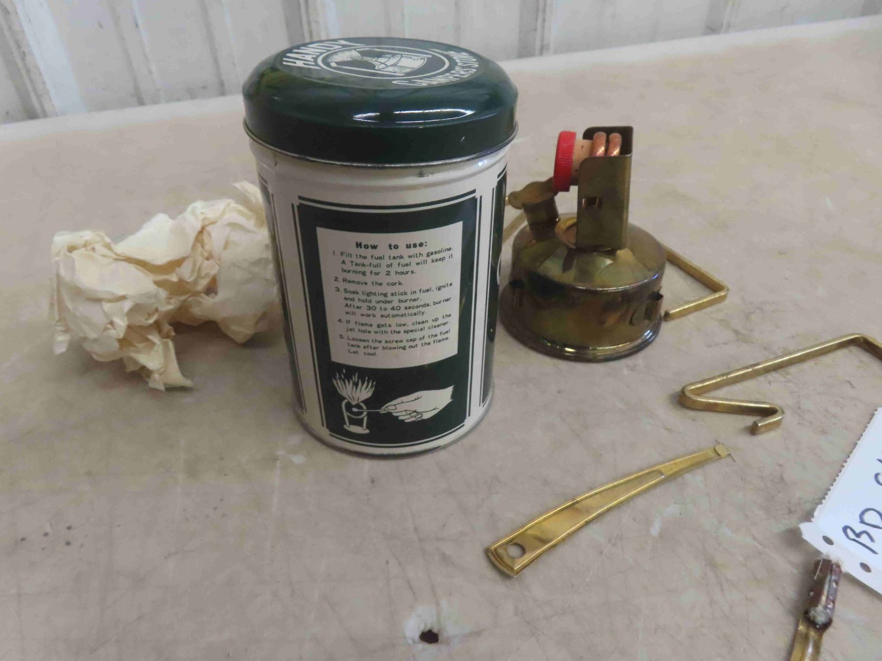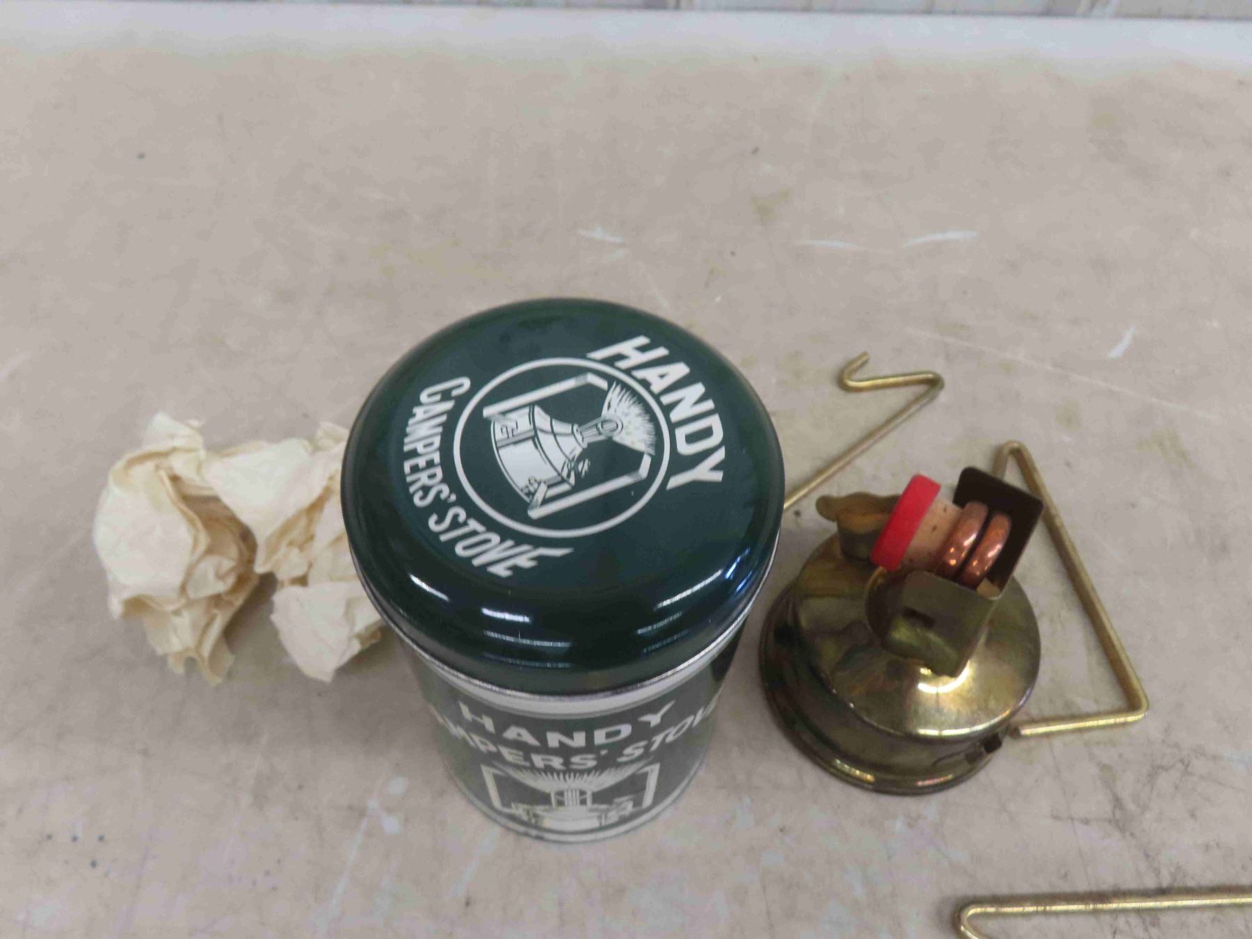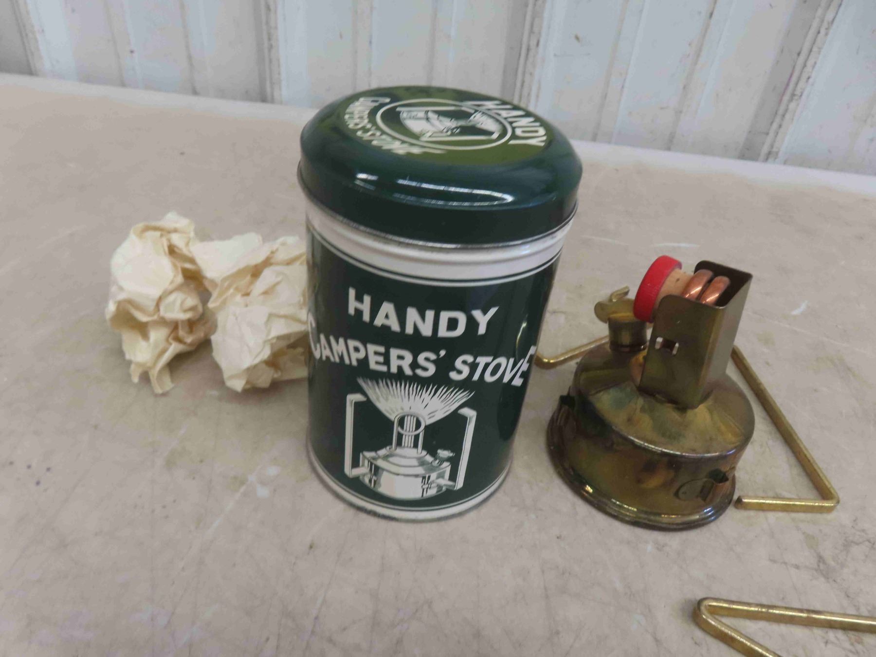 Vintage Handy Campers Stove in Tin Can. Complete, Excellent Condition.