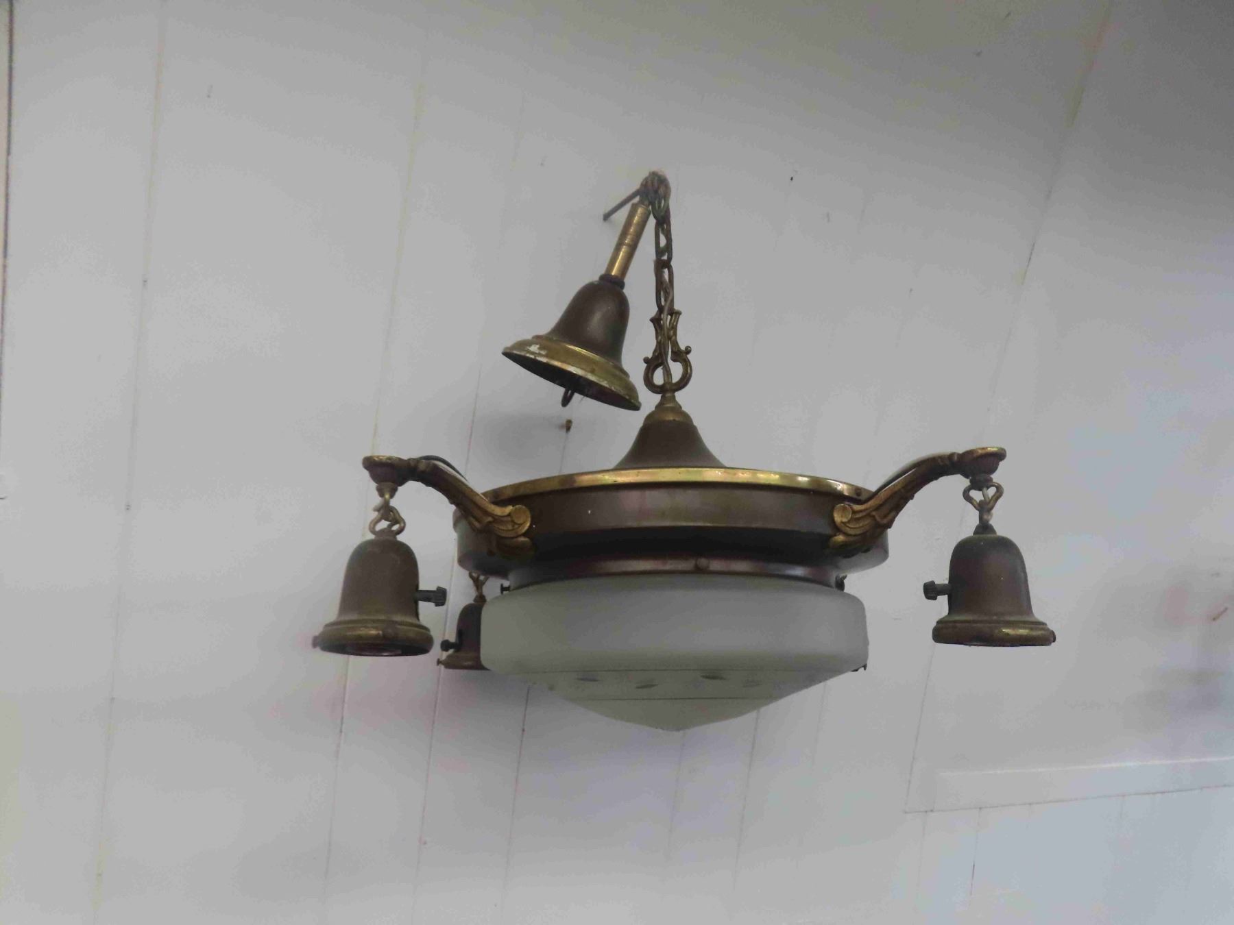 Vintage Hanging Light Fixture with Hand Painted Shade