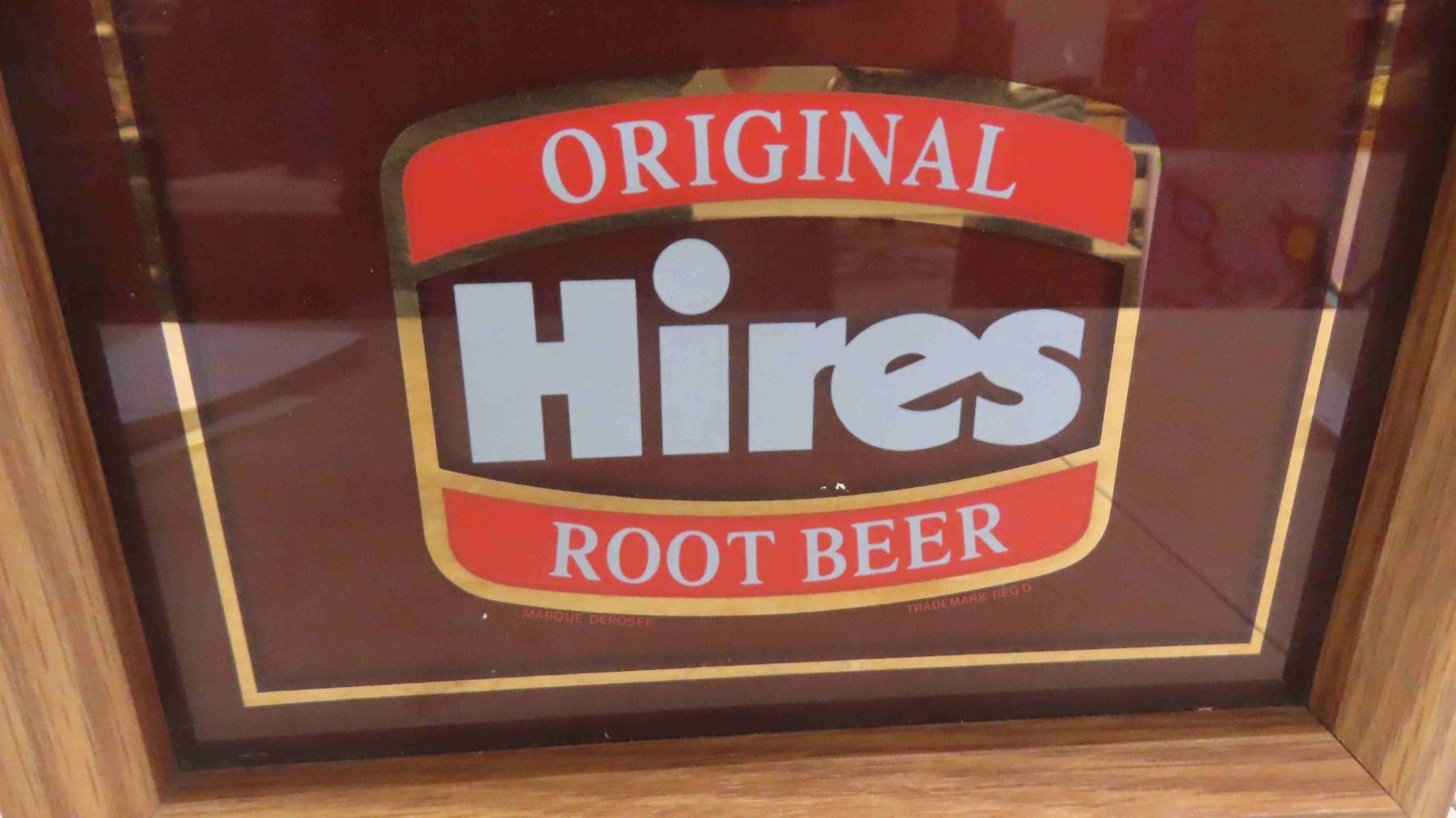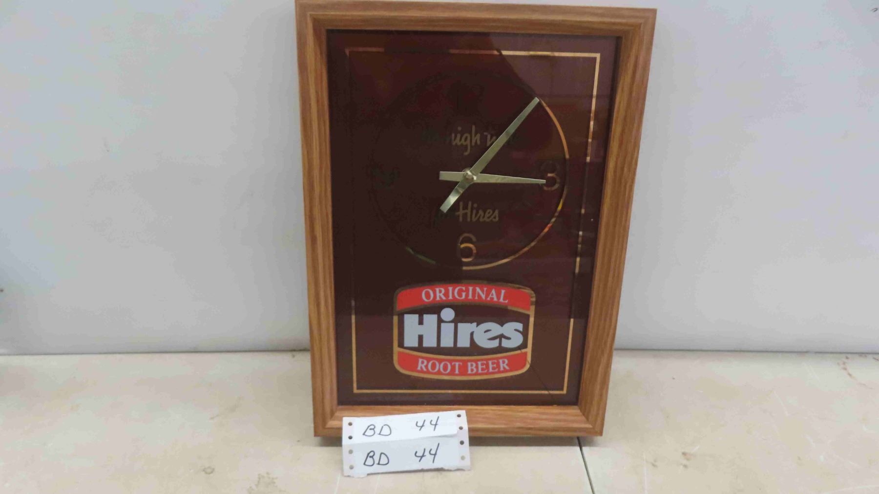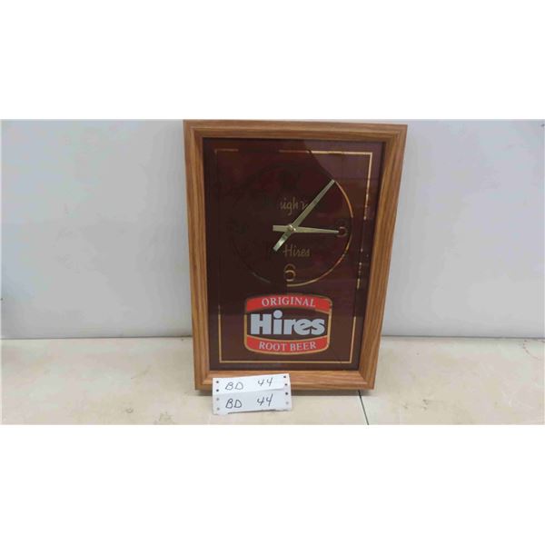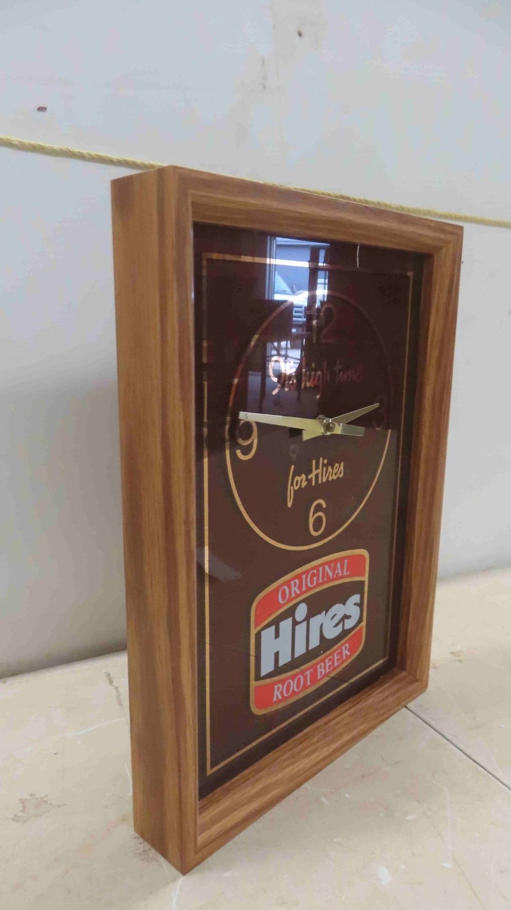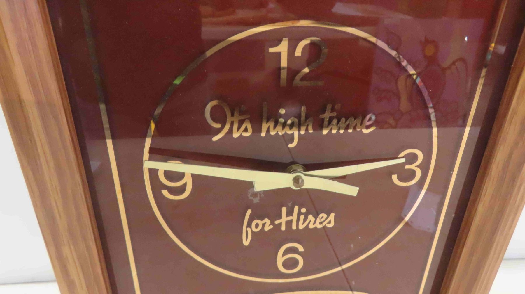 Vintage Hires Root Beer Wood Framed Glass Clock 10'' x 14''