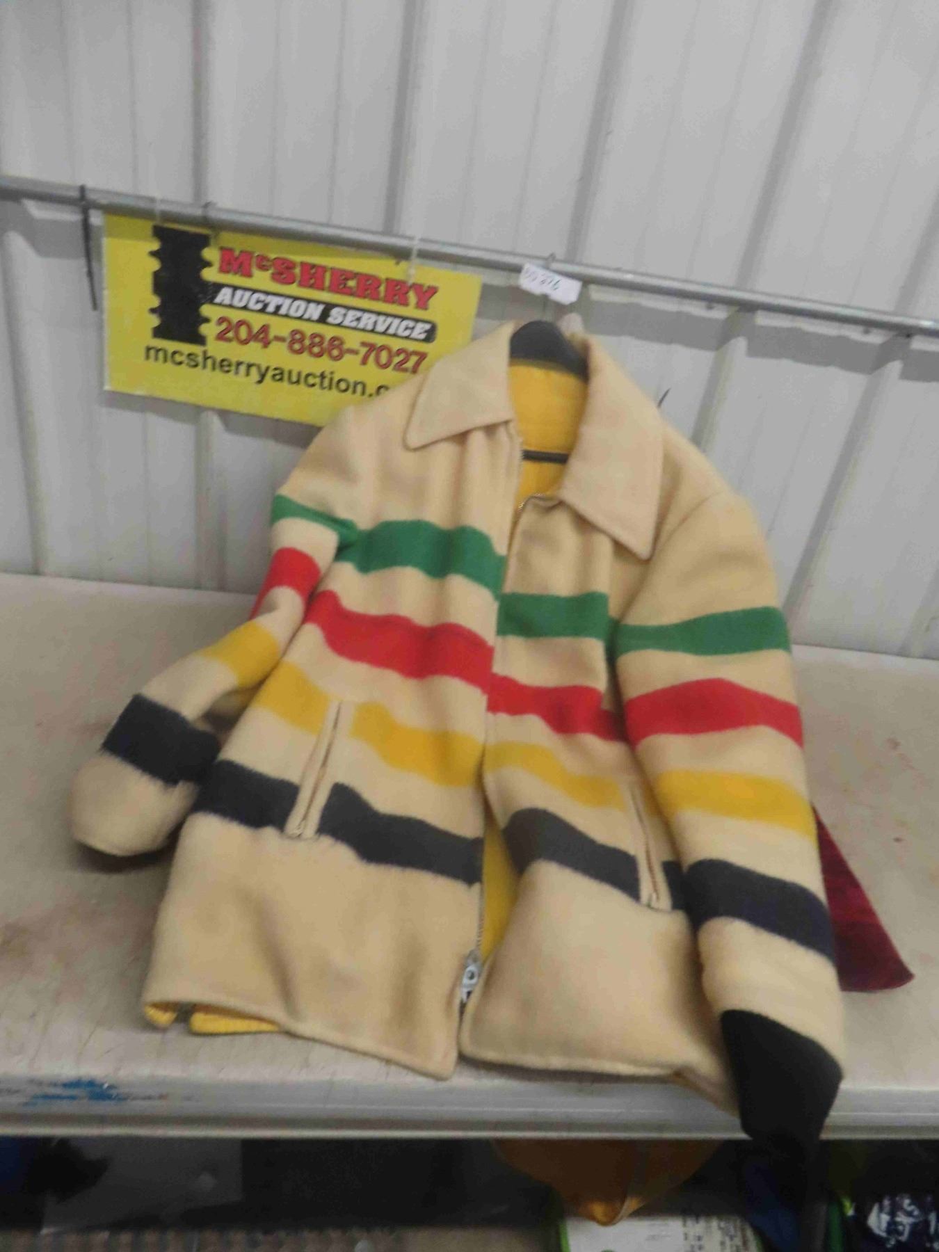 Vintage Hudsons Bay Company Wool Winter Jacket Mens L-XL. Reversible.