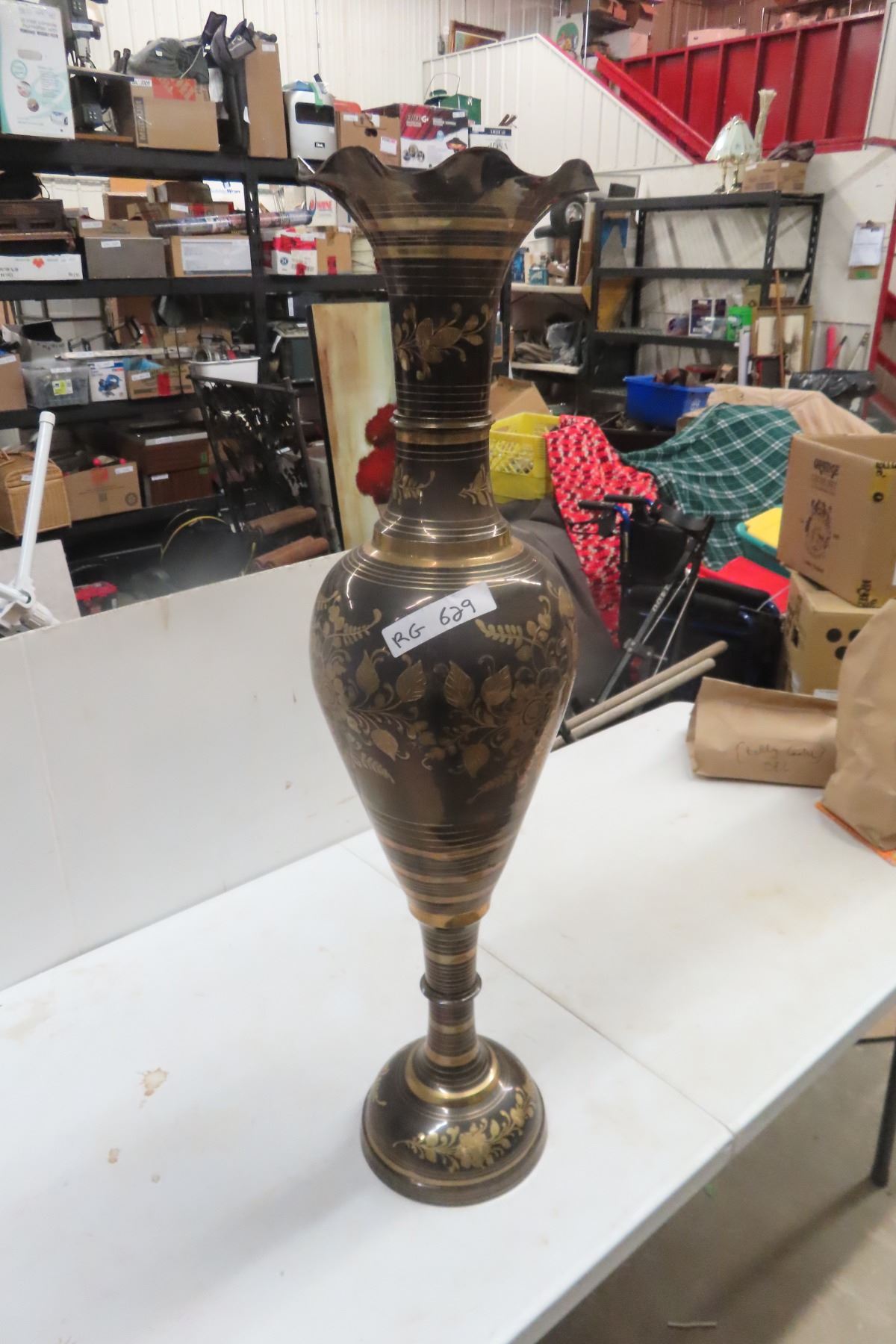 Vintage Indian Etched Brass Vase. 37 Inches Tall and 9 Inches Wide