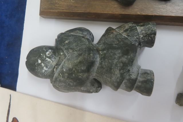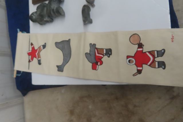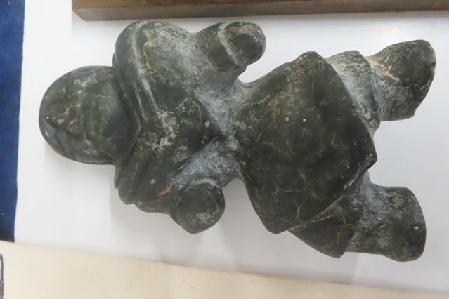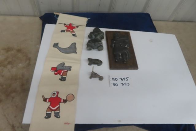 Vintage Indigenous Soapstones: Primitive Carving of Woman 6.5" - Signed, 2 Smaller Soapstones of Narwhal + Walrus, Wall Hanging & Wall Plaque