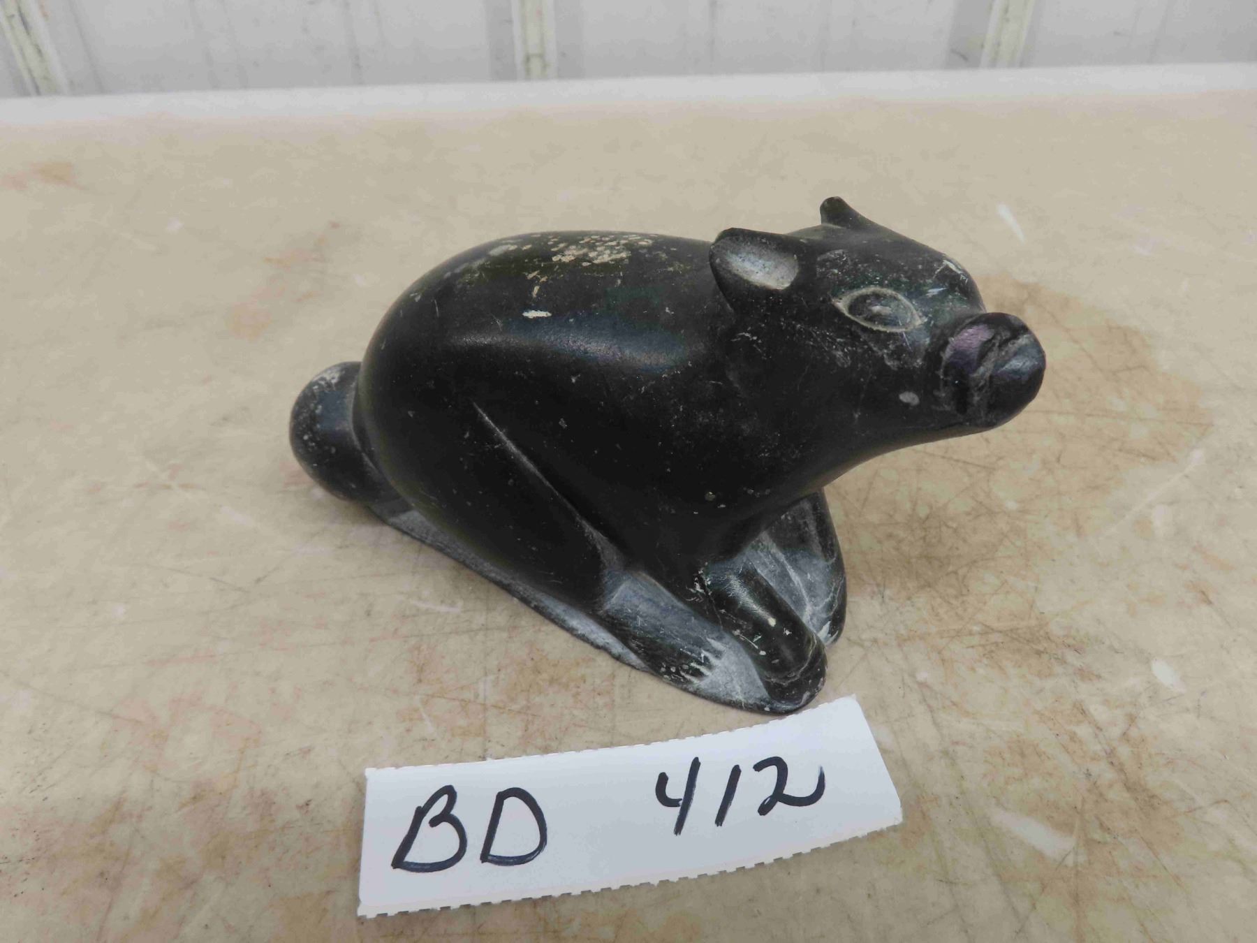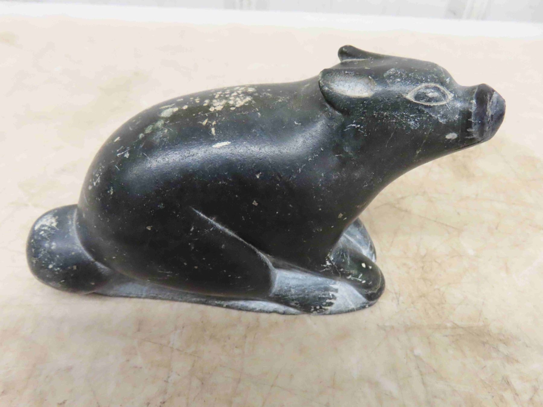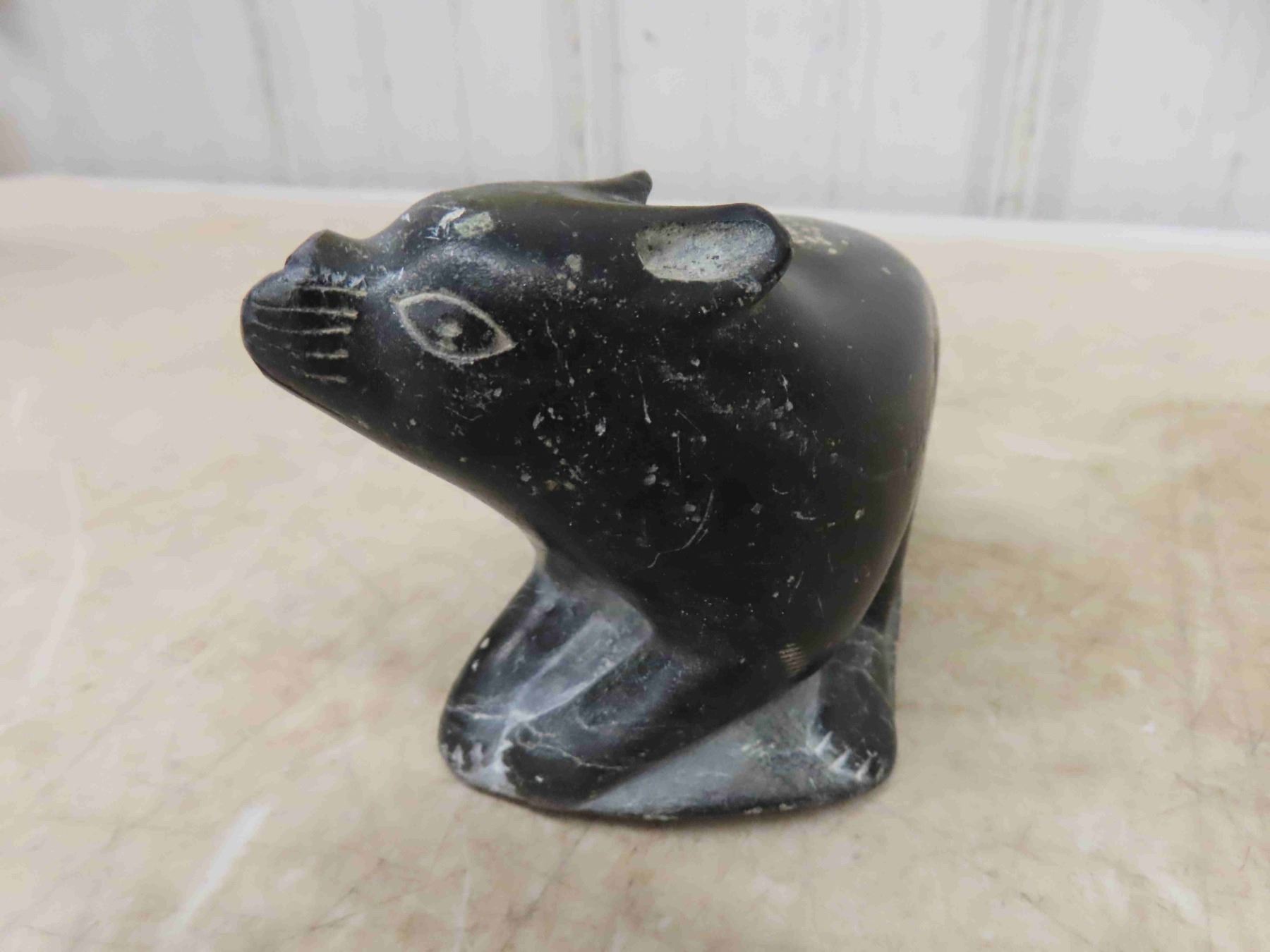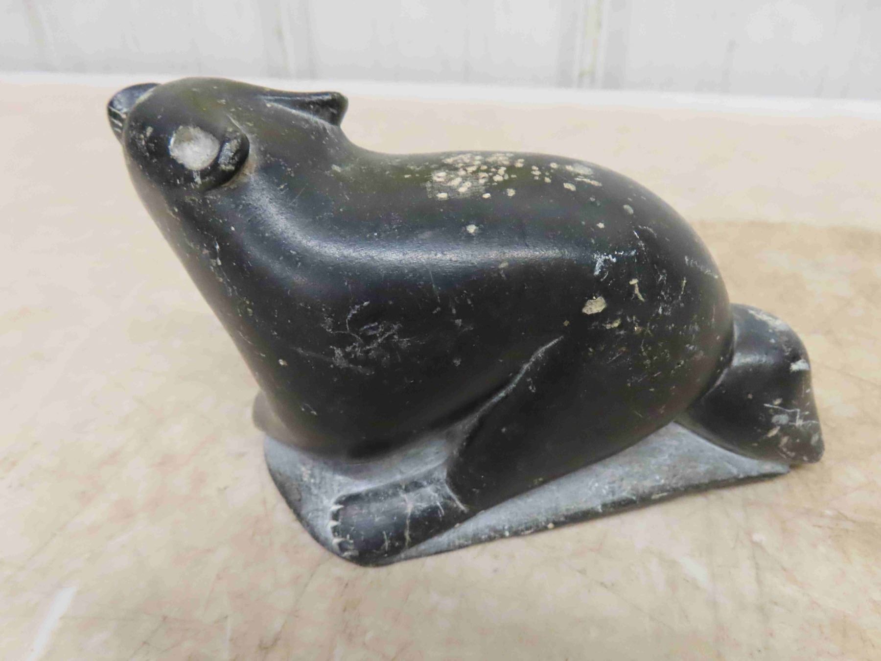 Vintage Inuit Soapstone Carving of Artic Fox 6'' x 4'' - Has Carving Number on Underside