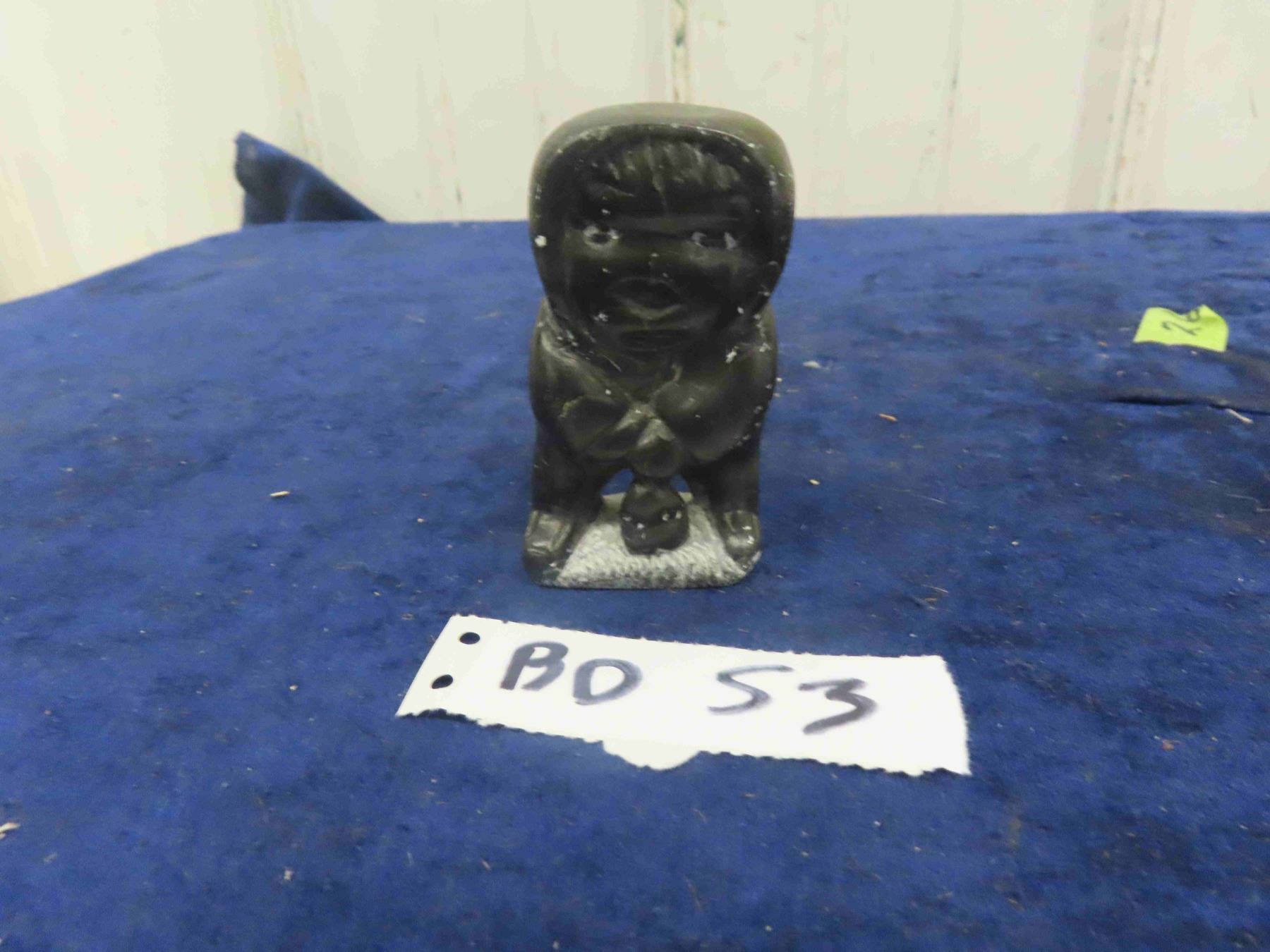 Vintage Inuit Soapstone Carving of Hunter Pulling Seal from Ice 3.5" Tall - Signed + Stickered with Inuit Canvas Bag