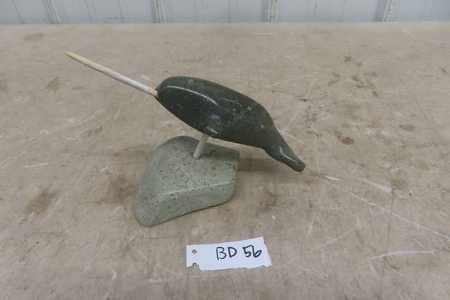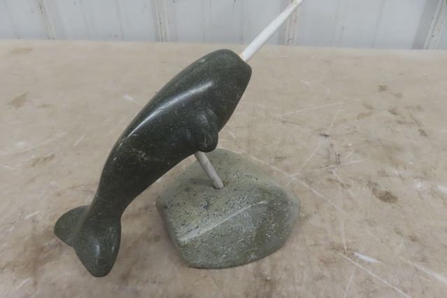 Vintage Inuit Soapstone Carving of Narwal on Base - 5" x 8.5" Tall - Unsigned - Really Nice